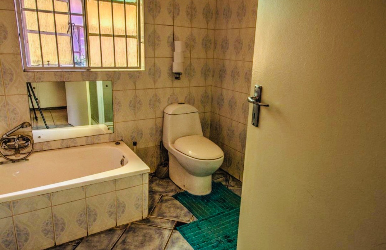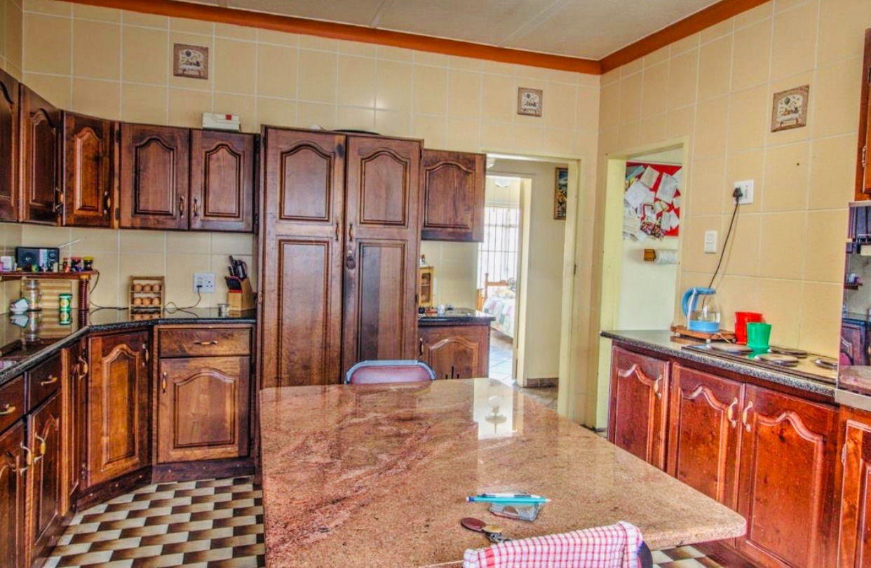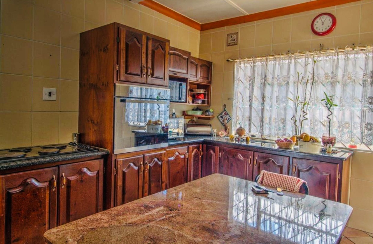 Step outside to a meticulously maintained garden and expansive paved areas, providing ample space for outdoor activities. The property boasts a large paved driveway leading to a covered carport and two garages, ensuring abundant parking for residents and guests. A distinctive thatched lapa and bachelor cottage.