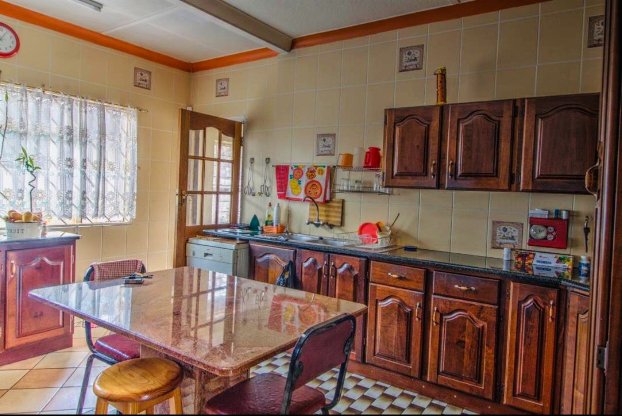 Discover this inviting 3-bedroom, 2-bathroom family home situated on a generous 1110 sqm erf in the established suburb of Kempton Park Ext 1. Designed for comfortable living, the residence features an open-plan layout that seamlessly connects the living spaces. The spacious lounge, complete with a characterful wood-paneled ceiling, offers ample room for relaxation and entertainment. Adjacent to this, a dedicated dining area provides a perfect setting for family meals. The functional kitchen is ready to cater to your culinary needs.