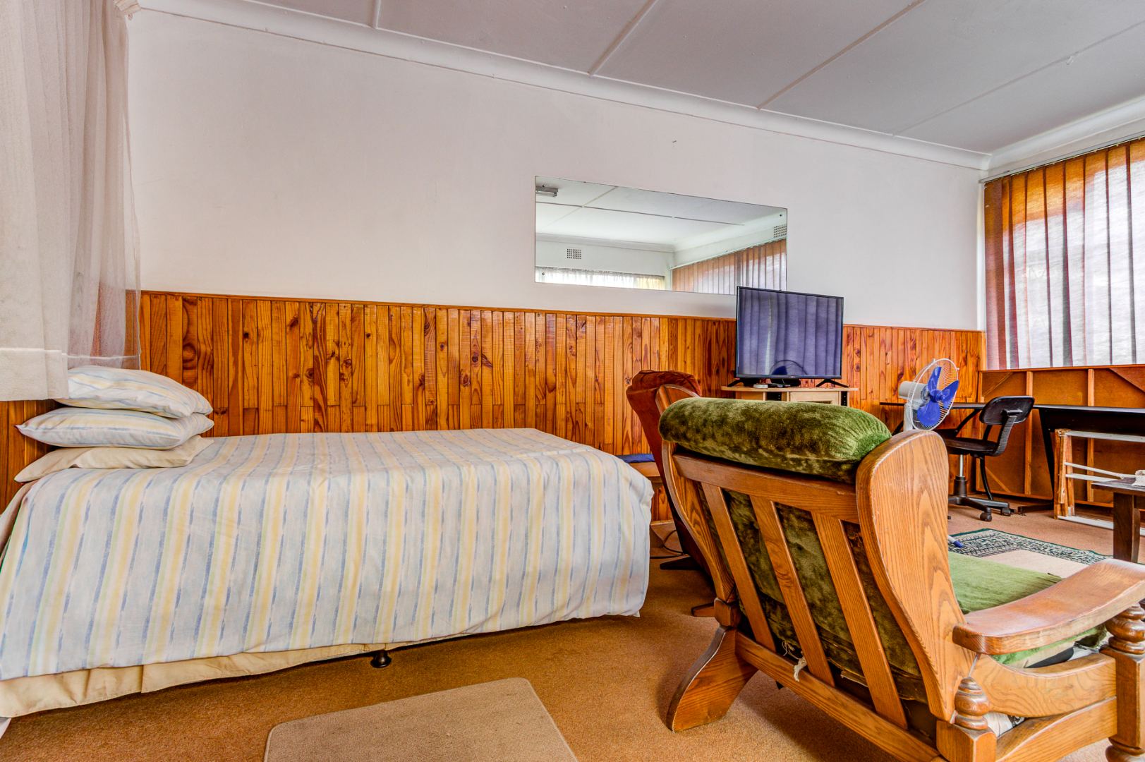 The home features 3-well-sized bedrooms with built-in cupboards, serviced by a full bathroom and a separate toilet for added convenience.