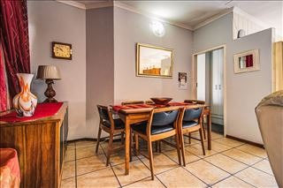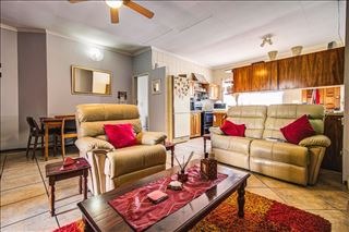 Discover this charming 2-bedroom, 2-bathroom home located within a secure complex in Norkem Park, Kempton Park, South Africa. Boasting a comfortable floor size of 132 square meters, this property offers a practical and inviting living environment. The exterior features a well-maintained private lawn enclosed by a rendered wall, a durable tiled roof, and paved access to the entrance, enhancing its kerb appeal. Security is a priority, with sliding glass doors and windows equipped with security bars, complemented by a security post and access gate within the complex. The interior presents an open-plan layout, seamlessly connecting the spacious lounge and dining areas, both featuring easy-to-maintain tiled flooring. The living room is designed for comfort, accommodating multiple sofas and an entertainment unit. The functional kitchen, also with tiled floors, offers extensive wooden cabinetry for ample storage and includes an integrated dining space, benefiting from natural light through a large window. A convenient guest toilet is also available. This home provides two well-proportioned bedrooms and two bathrooms, ensuring comfortable accommodation. The property further benefits from a double garage, providing secure parking and additional storage. The private garden offers a tranquil outdoor space for relaxation or entertaining. This residence is ideal for those seeking a secure and manageable home in a well-established community. Key Features: * 2 Bedrooms, 2 Bathrooms * 132 sqm Floor Size * Open-plan Lounge and Dining Area * Functional Kitchen with Ample Storage * Double Garage * Private Walled Garden * Security Bars and Security Gate * Located in a Secure Complex * Guest Toilet