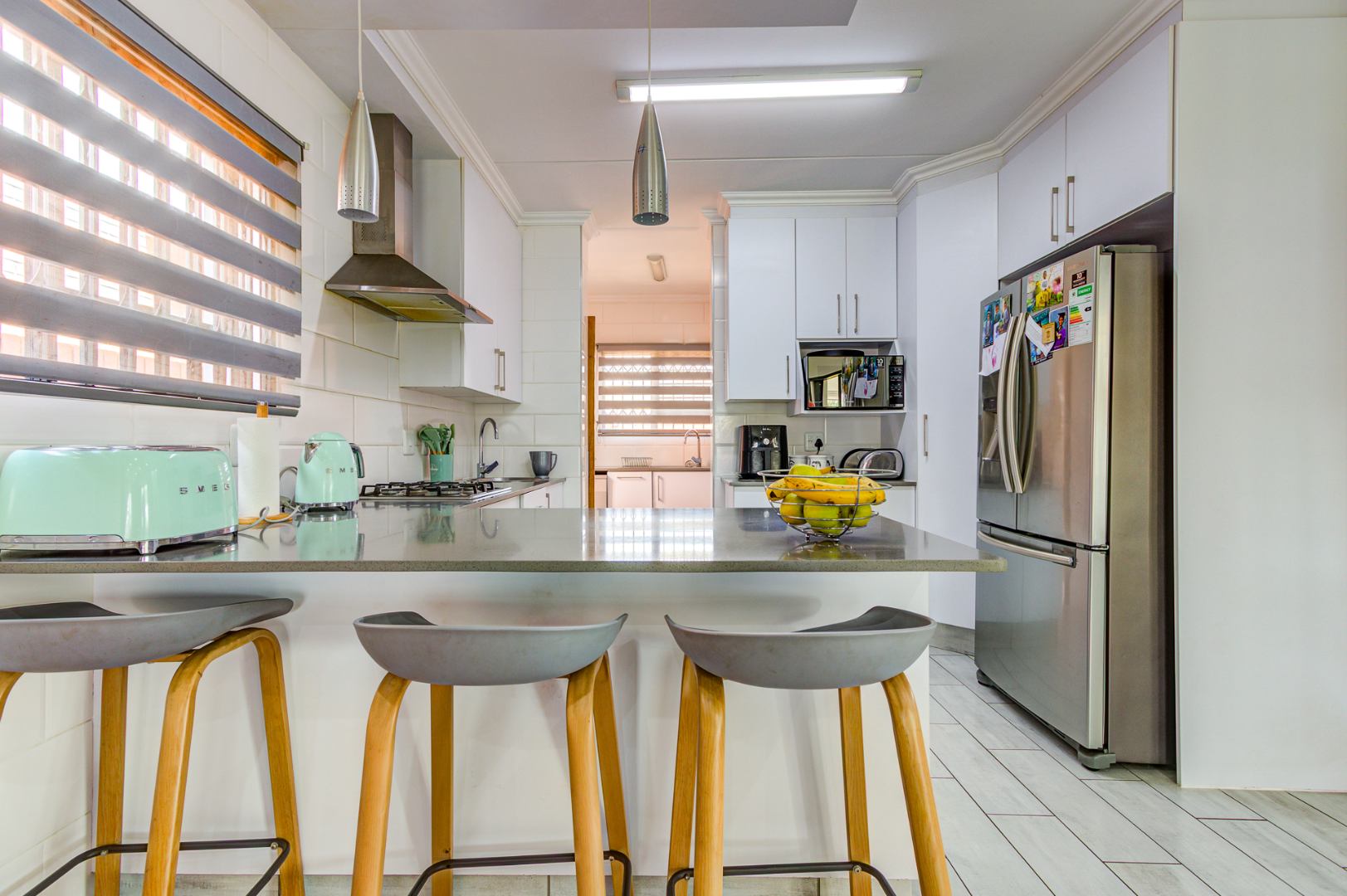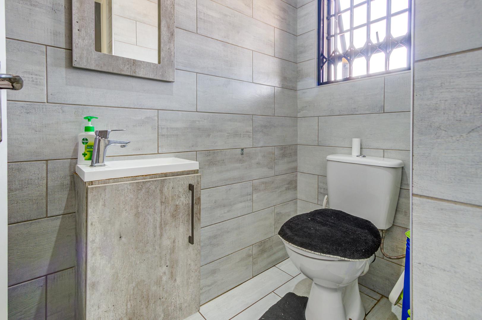 Nestled in the heart of Pomona, Kempton Park AH, this beautiful 3-bedroom, 2.5-bathroom home offers an exceptional standard of modern living within a secure estate. Upon entering, an inviting open-plan layout seamlessly connects the living spaces. The contemporary kitchen, thoughtfully designed with a separate scullery and pantry, provides ample space for two appliances. All rooms throughout the home are meticulously maintained and fully tiled, ensuring a neat and cohesive aesthetic.