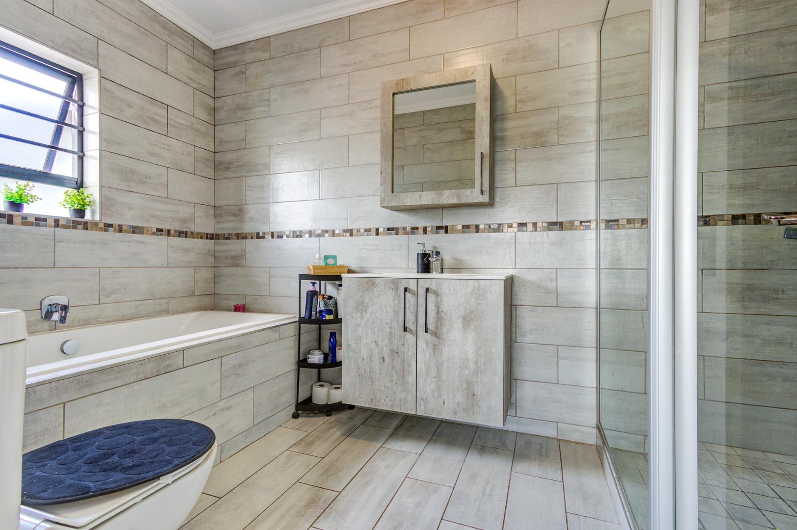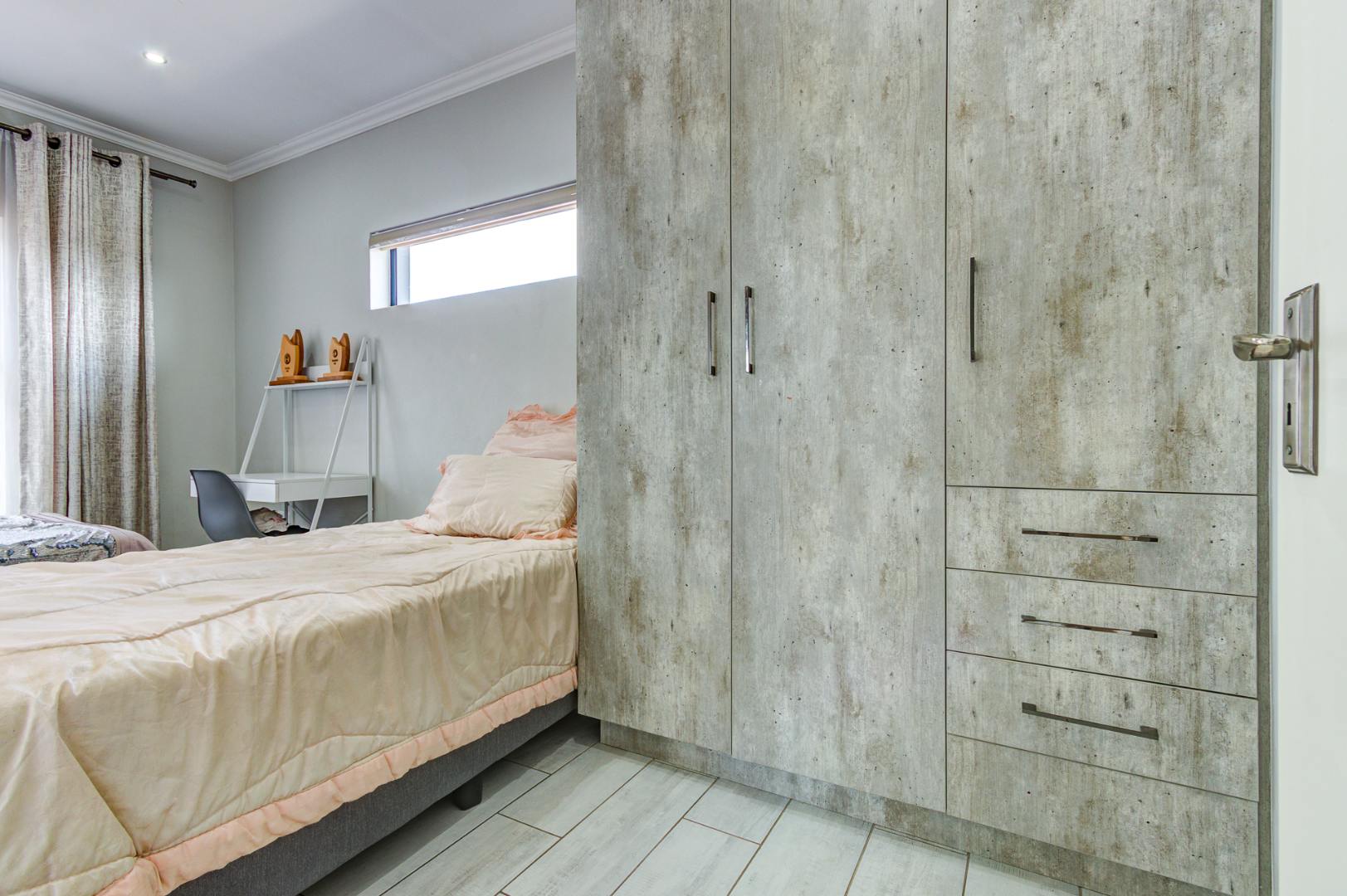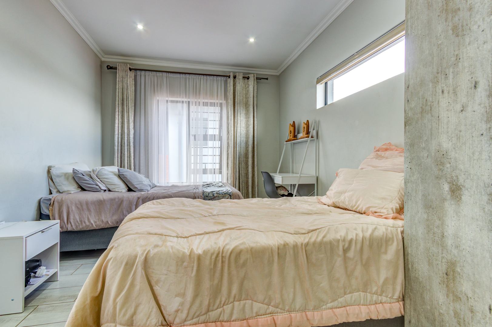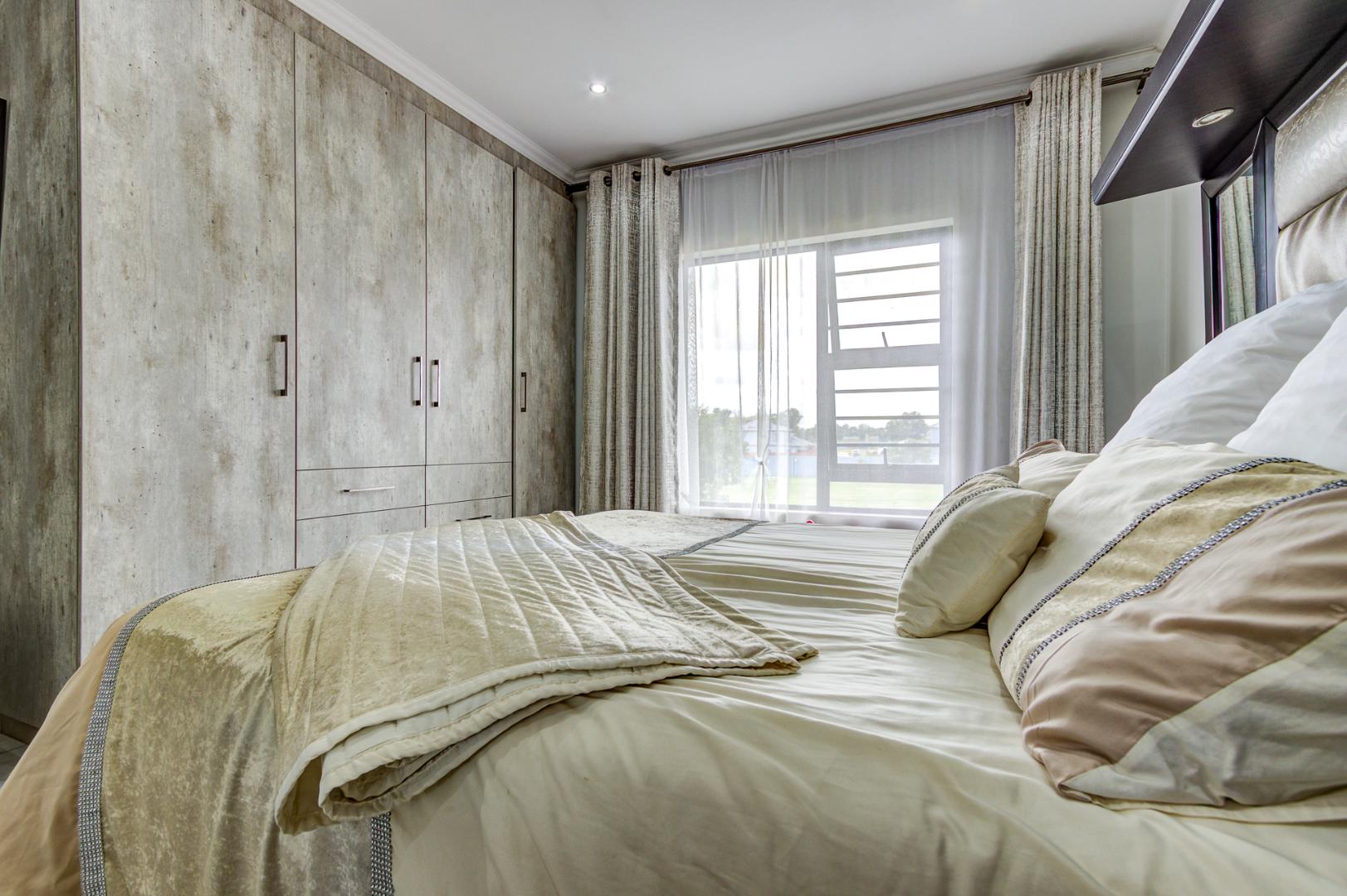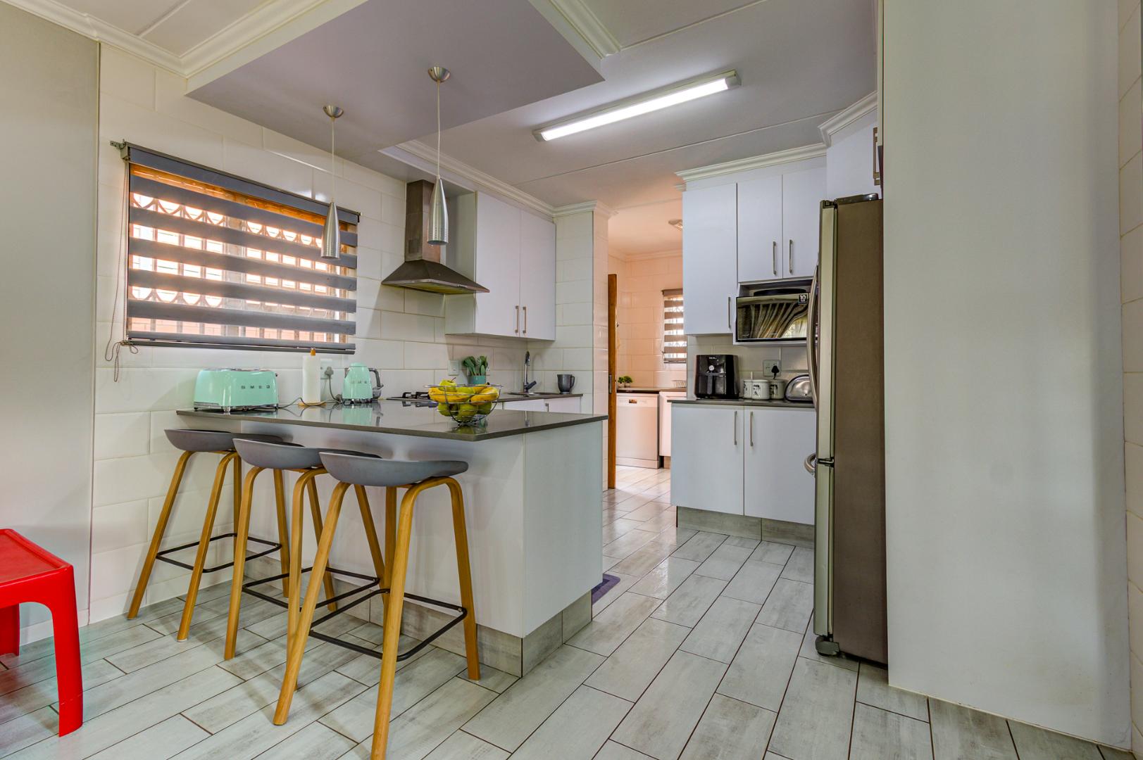 Step outside to discover a spacious and well-maintained garden, providing an excellent environment for family activities or for pets to roam freely. The property also benefits from a double garage and additional paved parking. Residing within a secure, gated community, this home offers peace of mind with 24-hour security, access control, and intercom systems. Enjoy modern amenities such as fibre connectivity, enhancing your lifestyle in this desirable Kempton Park location.
