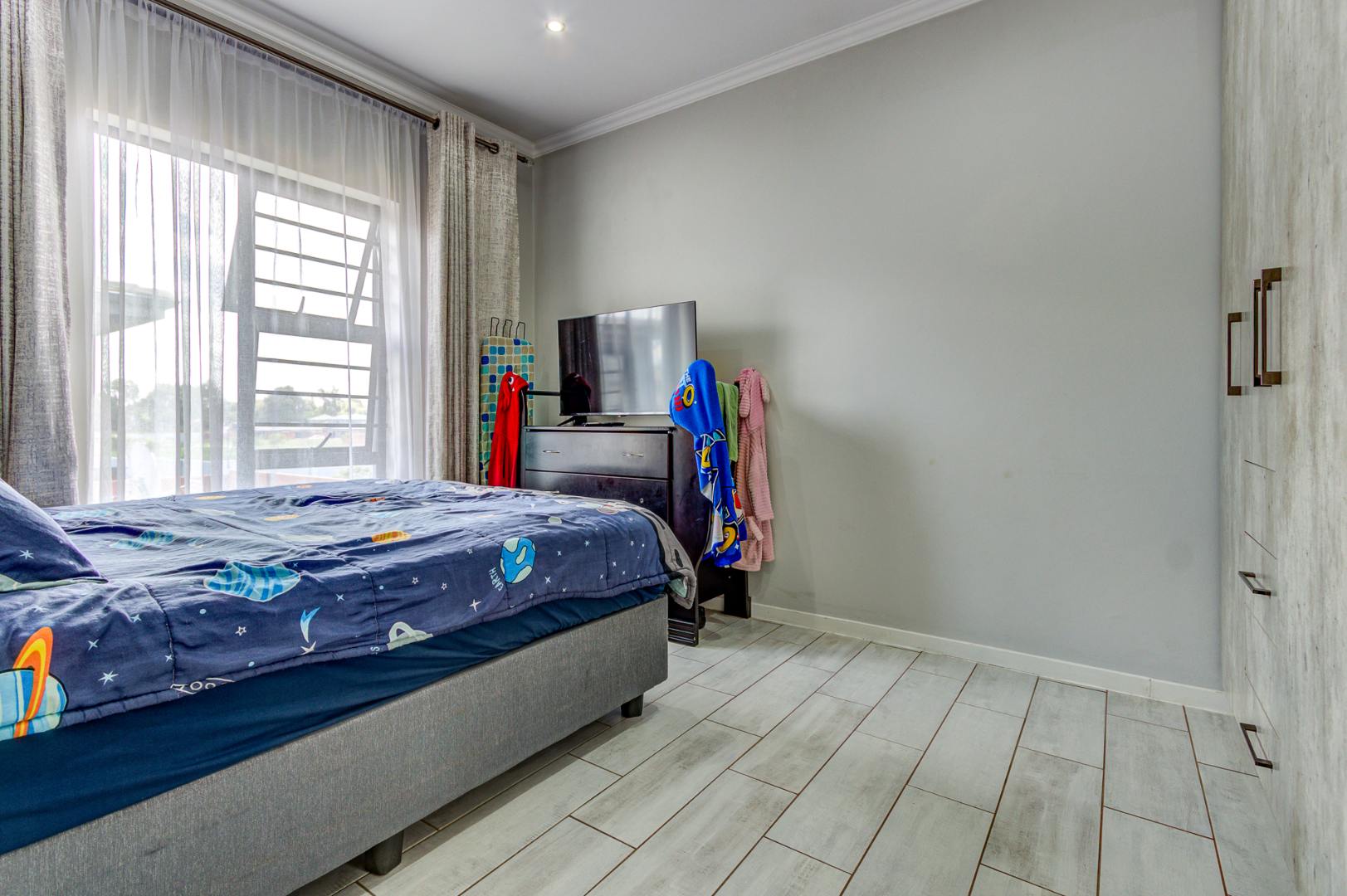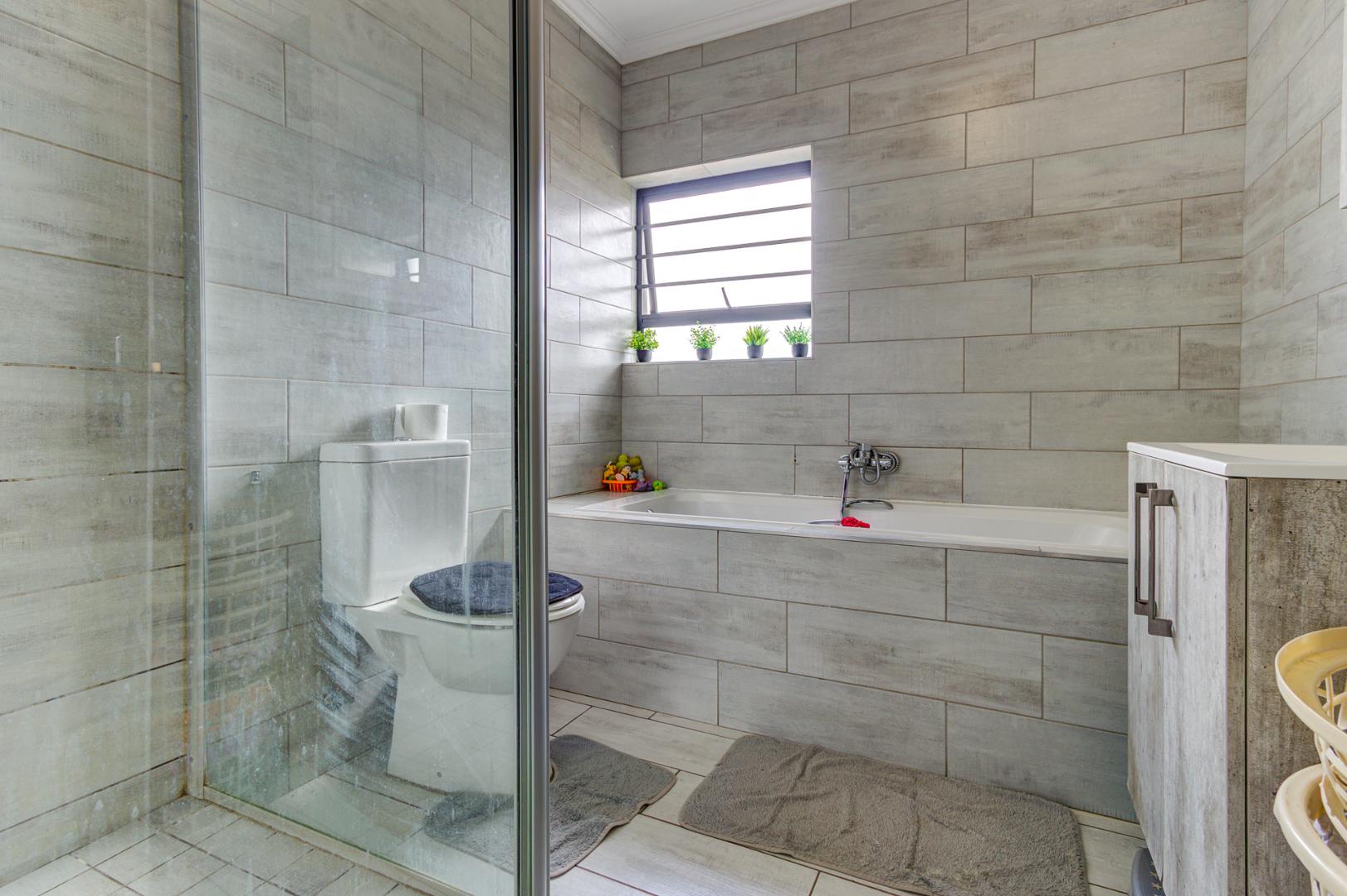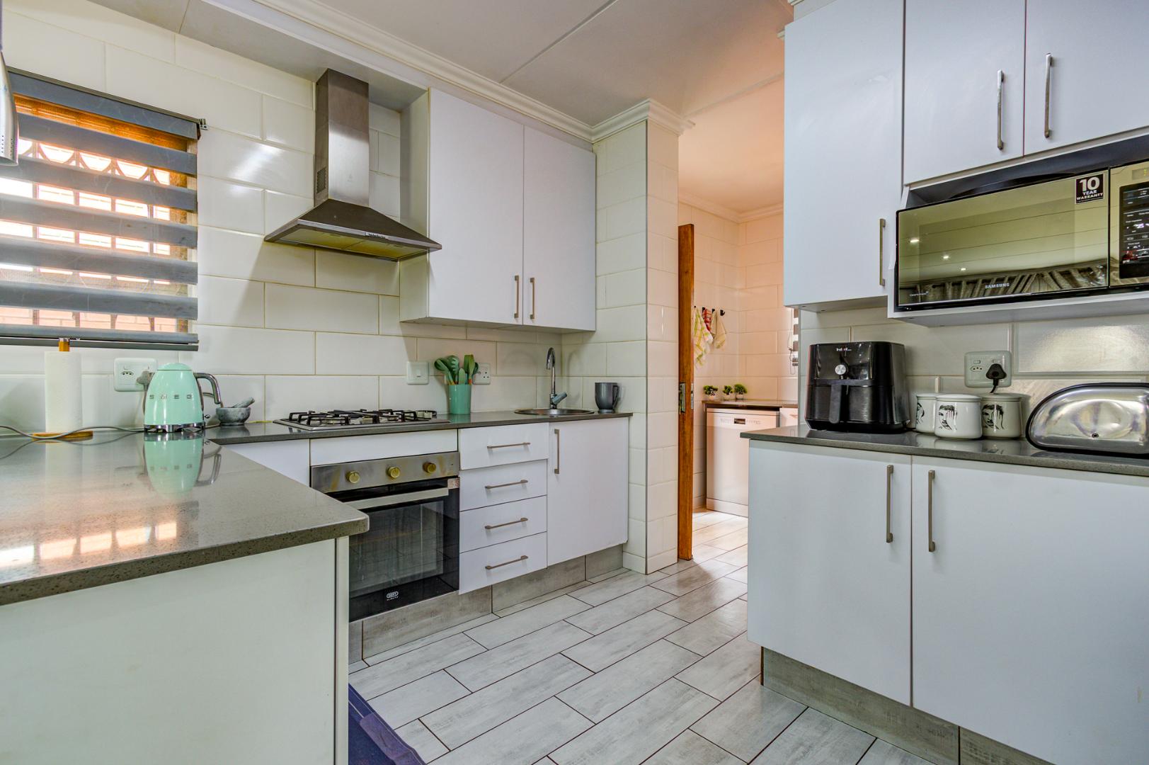 Step outside to discover a spacious and well-maintained garden, providing an excellent environment for family activities or for pets to roam freely. The property also benefits from a double garage and additional paved parking. Residing within a secure, gated community, this home offers peace of mind with 24-hour security, access control, and intercom systems. Enjoy modern amenities such as fibre connectivity, enhancing your lifestyle in this desirable Kempton Park location.