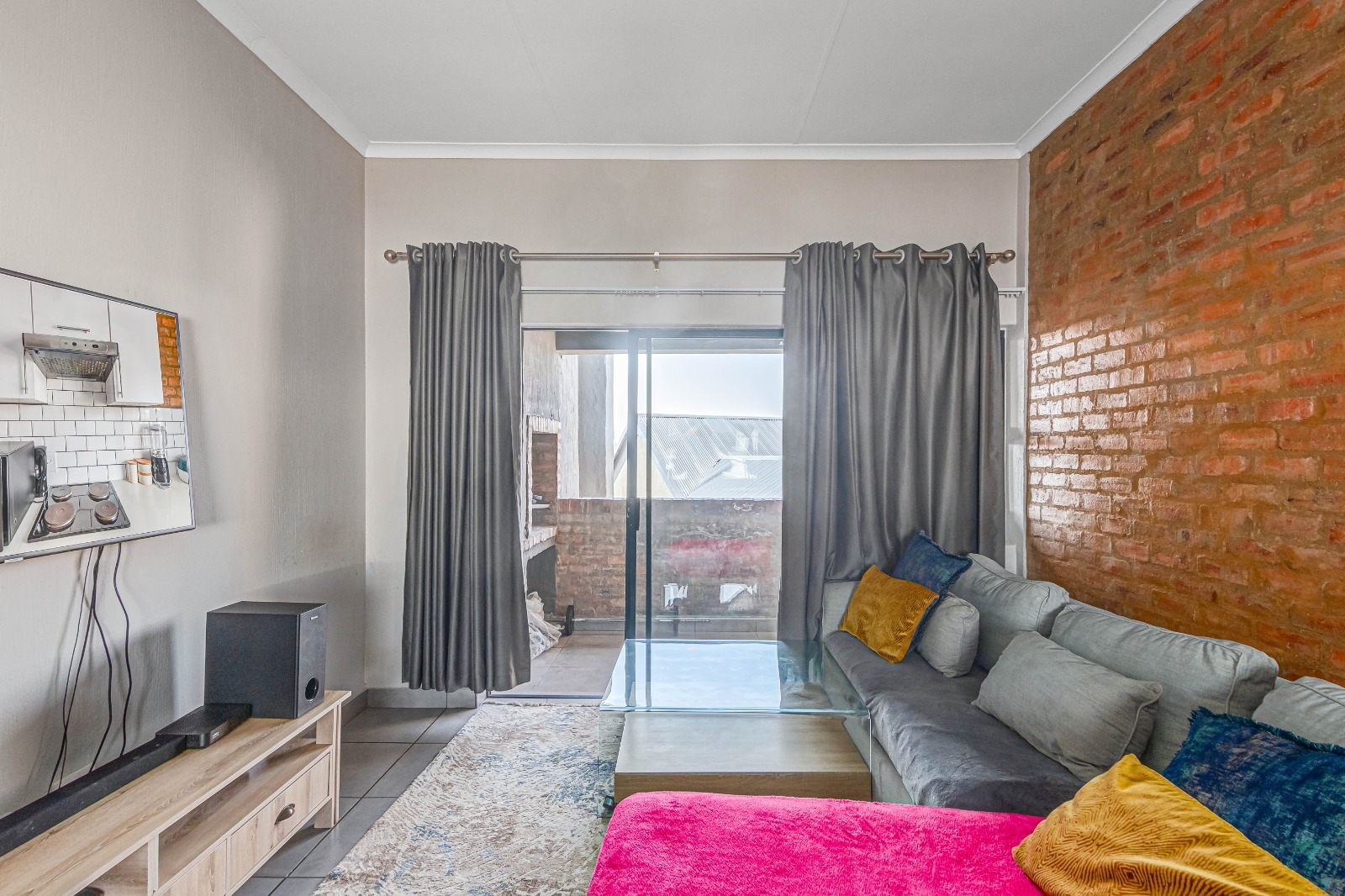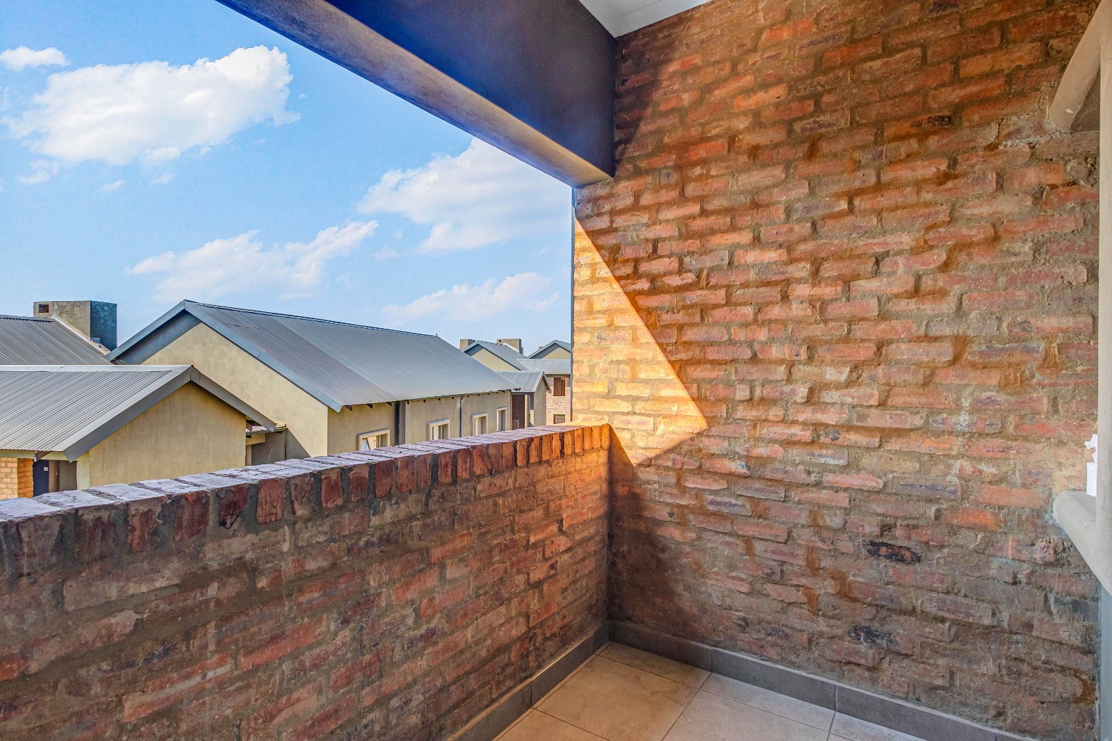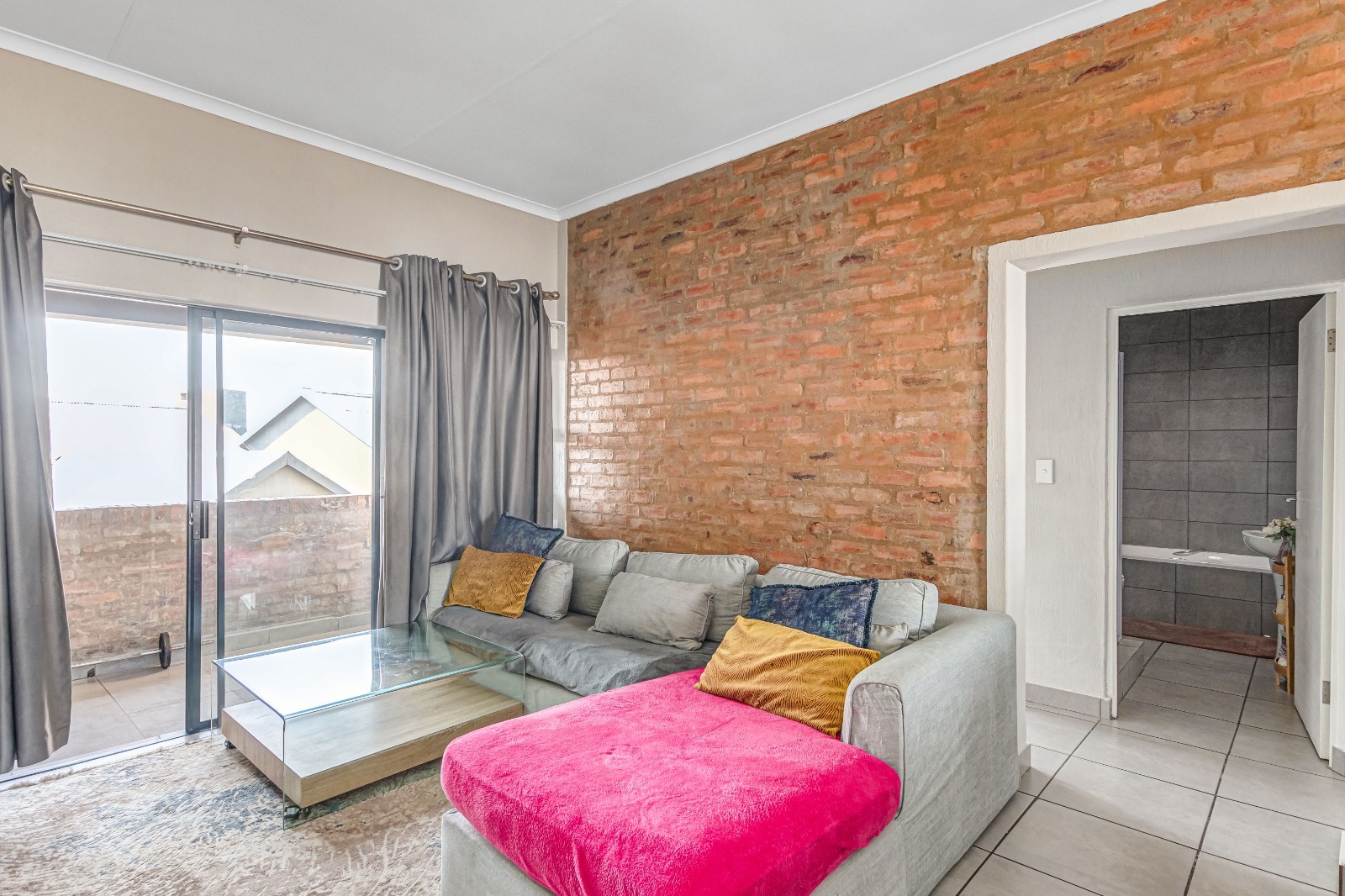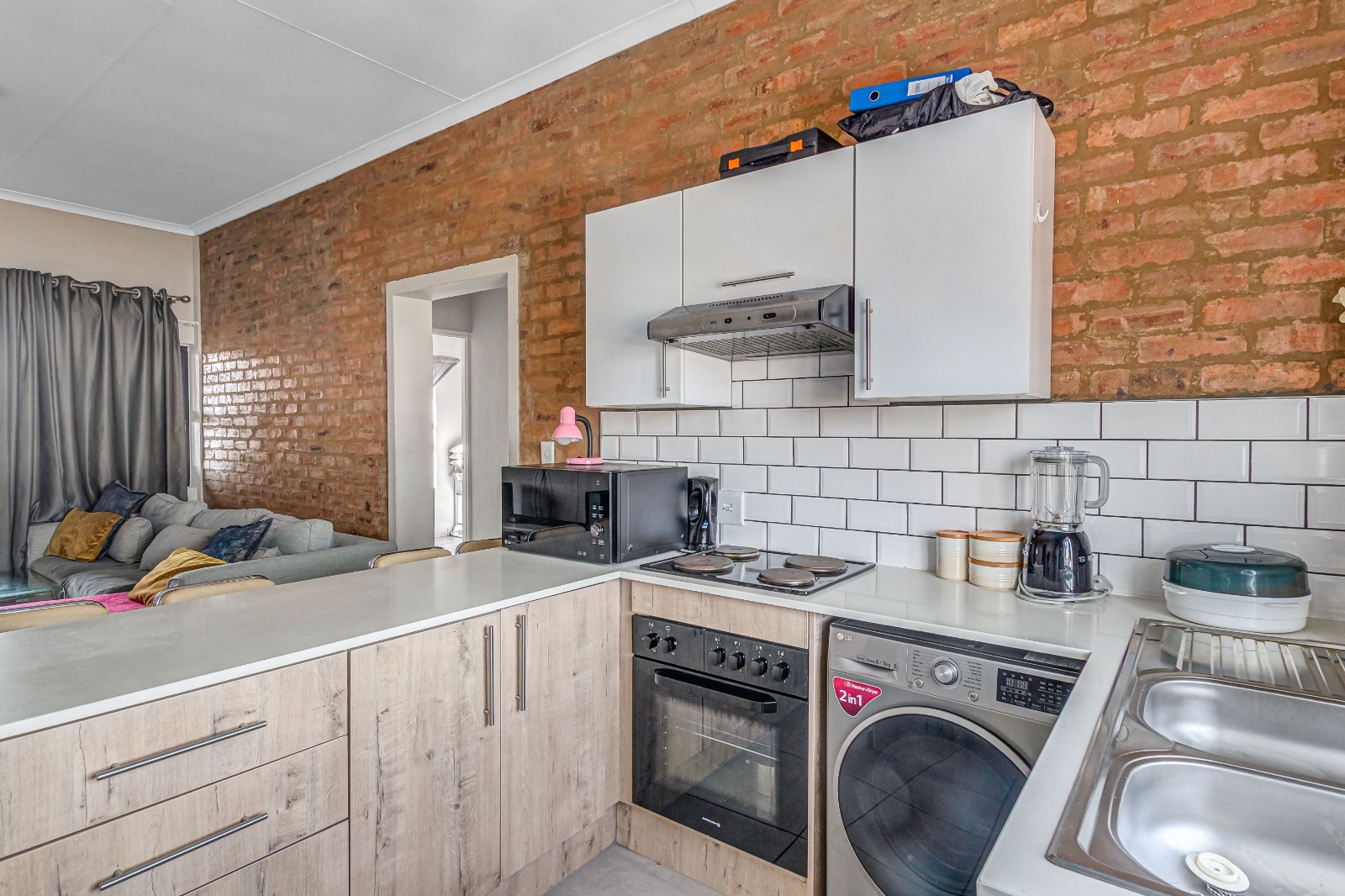 Discover this contemporary 70 sqm apartment in Pomona, Kempton Park, offering a stylish and functional living experience. The open plan layout seamlessly connects the living area with the modern kitchen, creating an inviting atmosphere. Exposed brick accent walls throughout the main living spaces add character, complemented by durable tiled flooring.