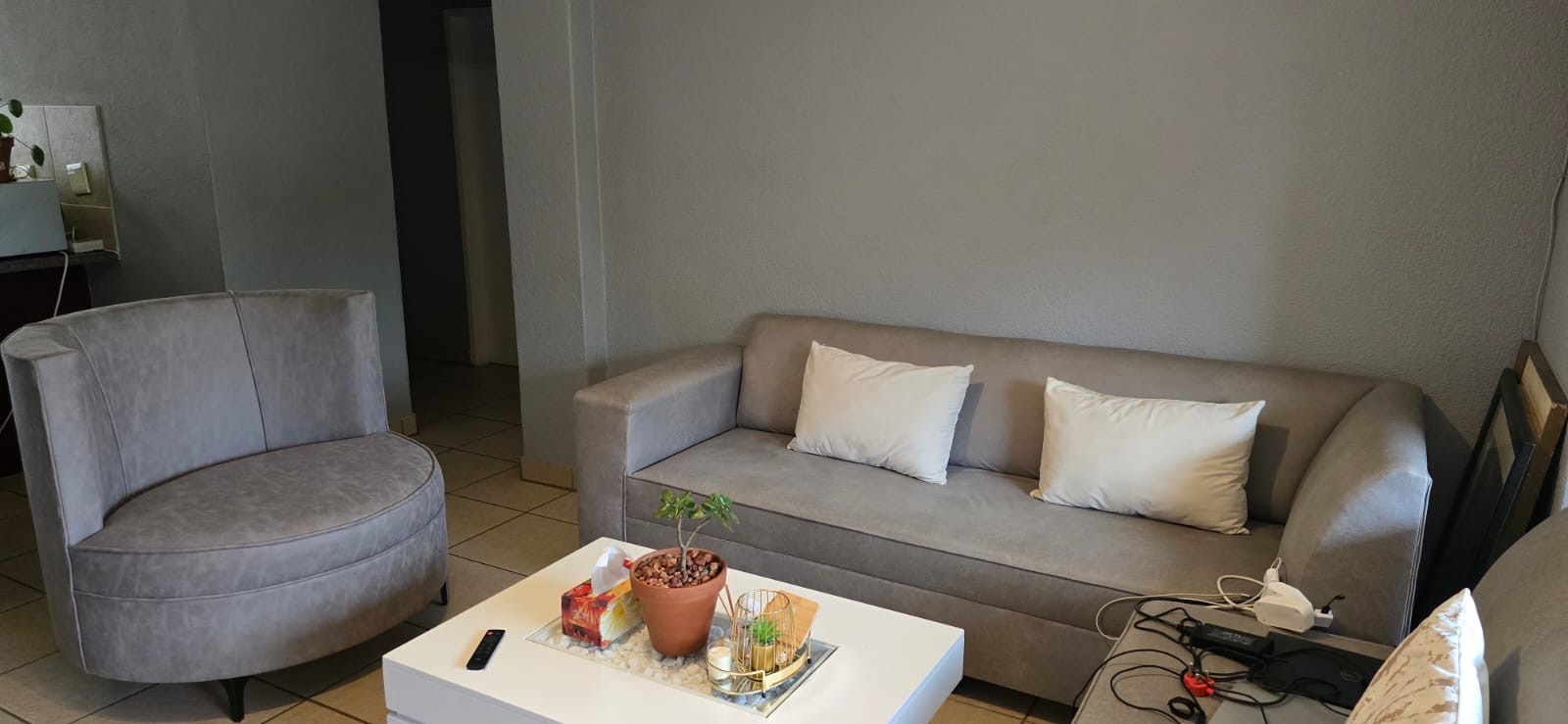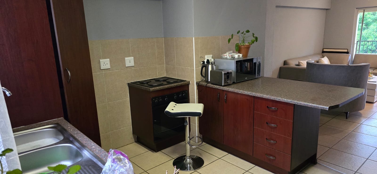 Discover this inviting 81 sqm apartment located within a secure complex in Pomona, Kempton Park. Upon entering, you are greeted by an open-plan living space that seamlessly integrates the lounge and kitchen areas, featuring durable tiled flooring throughout. The functional kitchen is equipped with dark wood-look cabinetry, a double sink, and a freestanding stove, complemented by a convenient breakfast bar for casual dining. The living area benefits from natural light, offering a comfortable space for relaxation and entertainment, with sliding doors leading to a private balcony. This apartment offers two well-proportioned bedrooms, each designed for comfort and practicality, featuring built-in wardrobes for ample storage. A single, neatly appointed bathroom serves both bedrooms. The balcony provides a pleasant outdoor retreat with green views, perfect for enjoying the South African climate. Residents of this complex benefit from a range of lifestyle amenities, including a communal swimming pool, ideal for recreation and leisure. The property includes one dedicated parking space. Security is a priority, with features such as an access gate, security gate, and 24-hour security, ensuring peace of mind for all residents. The complex also boasts river frontage, adding to its appeal. Pomona, situated in Kempton Park, is a well-established suburb known for its accessibility and convenience. It offers a balanced lifestyle with proximity to essential amenities, major transport routes, and local facilities, making it a desirable location for homeowners. Key Features: * 81 sqm apartment * 2 Bedrooms, 1 Bathroom * Open-plan living area * Functional kitchen with breakfast bar * Private balcony with green views * Communal swimming pool * 1 Parking space * Secure complex with 24-hour security * River frontage