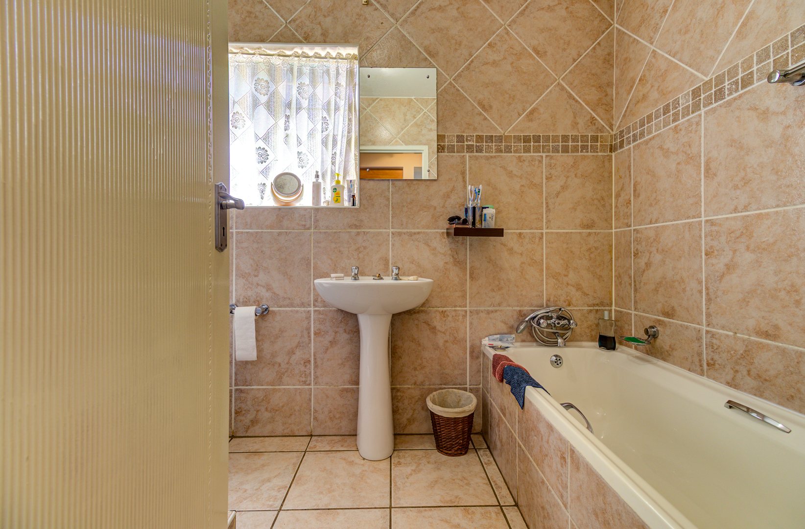 The sunny, tiled lounge flows seamlessly to a covered patio that overlooks a lovely, private garden, ideal for morning coffee, weekend braais, or simply unwinding after a long day.