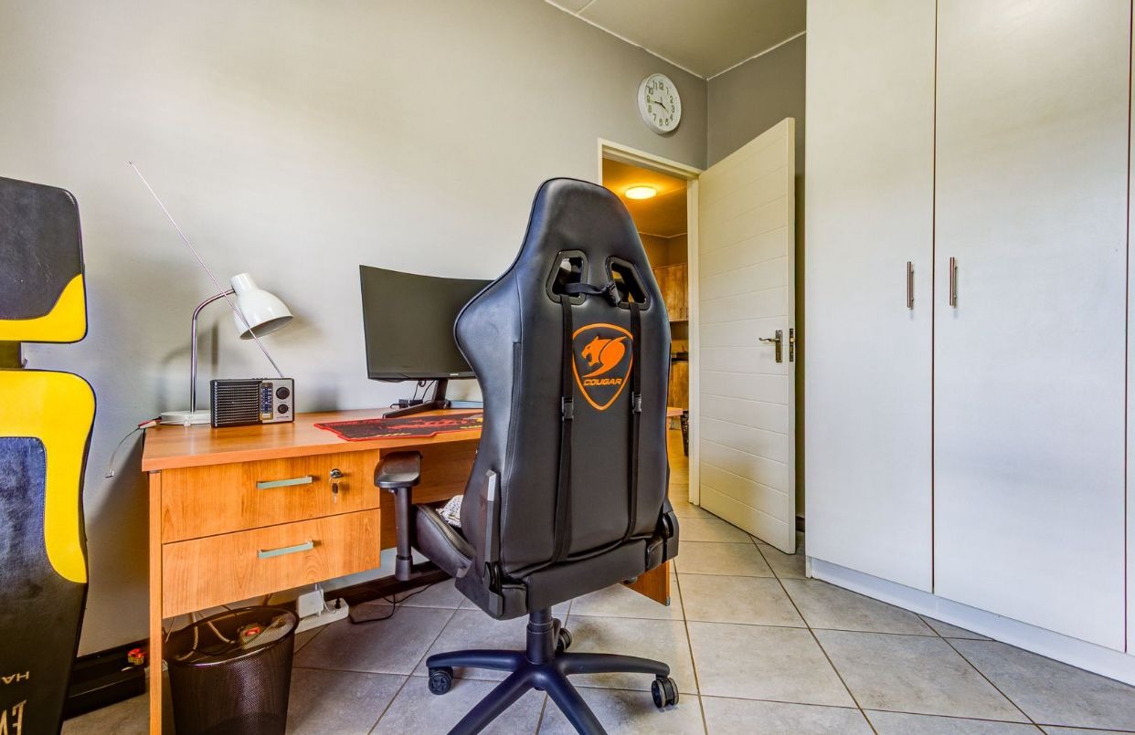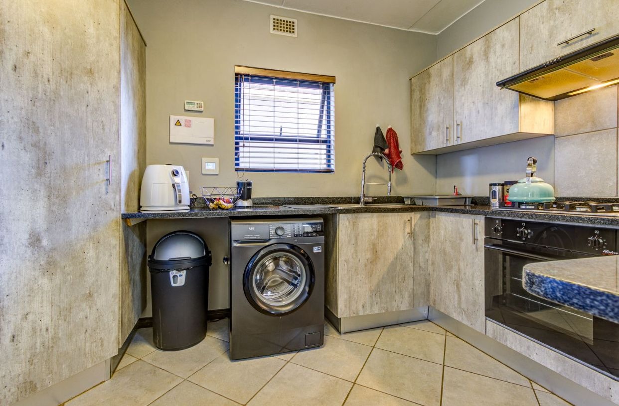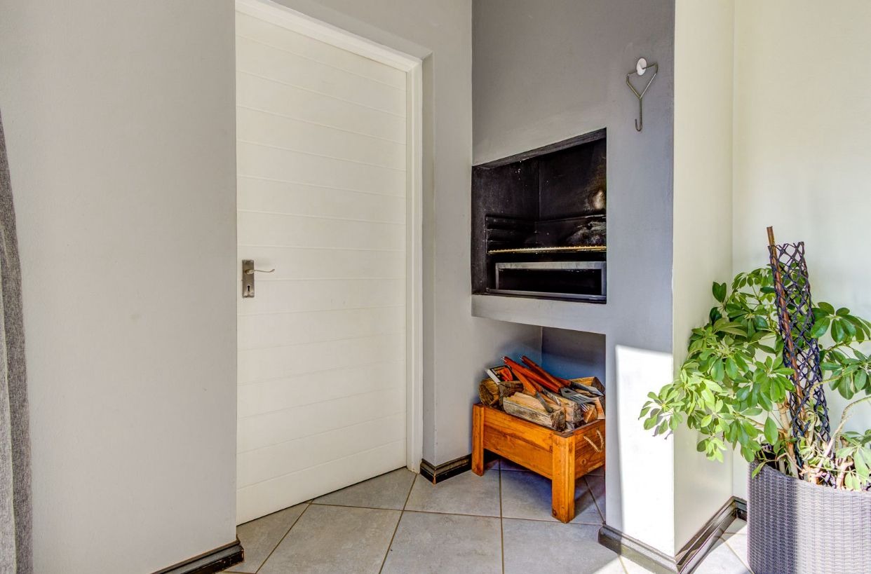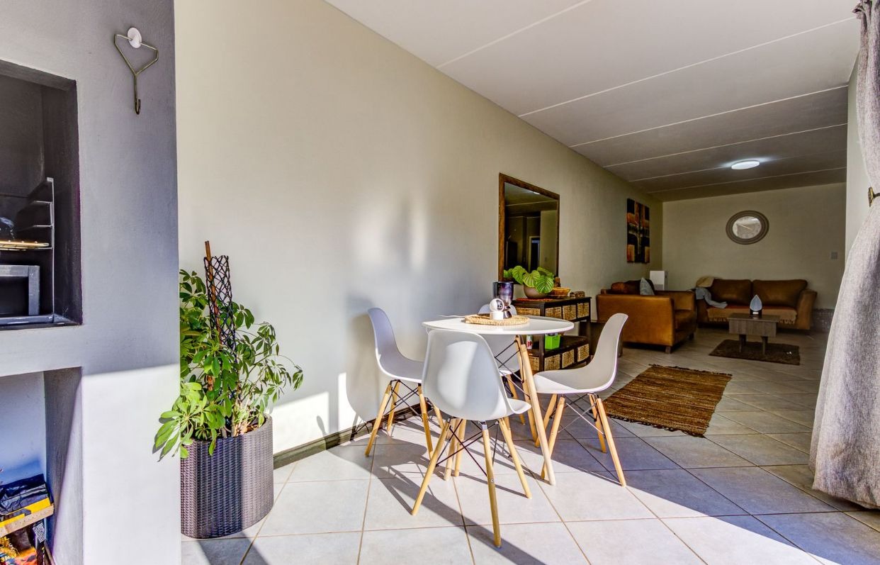 The modern kitchen features granite countertops, a gas hob, and ample cupboard space—perfect for the home chef. The dining area opens onto a private braai area, ideal for entertaining family and friends.