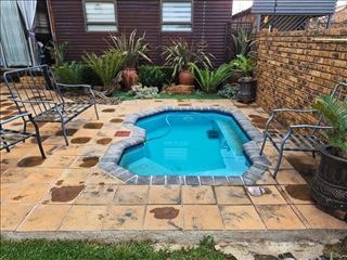 This lovely 2-bedroom home in Kempton Park's desirable Pomona suburb is just waiting for you to move in and make it your own! Right from the get-go, you'll notice its durable face-brick exterior and a unique slanted roof, giving it a modern touch. The property feels secure with visible security gates and burglar bars, plus a solid wooden front door that even includes a handy pet flap. You'll also find a paved patio area, perfect for enjoying the outdoors. Step inside and discover a wonderfully open and flowing living and dining area. It’s super bright thanks to large windows and a sliding door, making it feel airy and welcoming. You’ll stay comfy all year round with both a ceiling fan and air conditioning. The practical tiled floors throughout mean less fuss and more relaxation. The kitchen is a real highlight, boasting modern wooden cabinetry, dark countertops, and stainless steel appliances like a built-in oven, gas hob, and even an integrated dishwasher. There’s plenty of storage and counter space, plus a double sink under a window for natural light. With two cozy bedrooms and a well-appointed bathroom, this home is perfect for a small family or couple. Outside, the 486 sqm erf offers a lovely garden space, complete with paving and a refreshing pool – ideal for those sunny South African days. You’ll also appreciate the convenience of two garages and an additional parking spot. Thinking about sustainability? This home has you covered with solar panels and water tanks, helping you save on utilities. Plus, with a fence, security gate, and burglar bars, you can feel safe and sound. Pets are welcome too! Pomona is a fantastic, well-established suburb in Kempton Park, offering a great community feel and easy access to amenities. Key Features: * 2 Bedrooms, 1 Bathroom * Open-plan Living & Dining * Modern Kitchen with Appliances * Air Conditioning & Ceiling Fan * Private Pool & Garden * 2 Garages + 1 Parking * Solar Panels & Water Tanks * Pet-Friendly * Secure with Gates & Burglar Bars