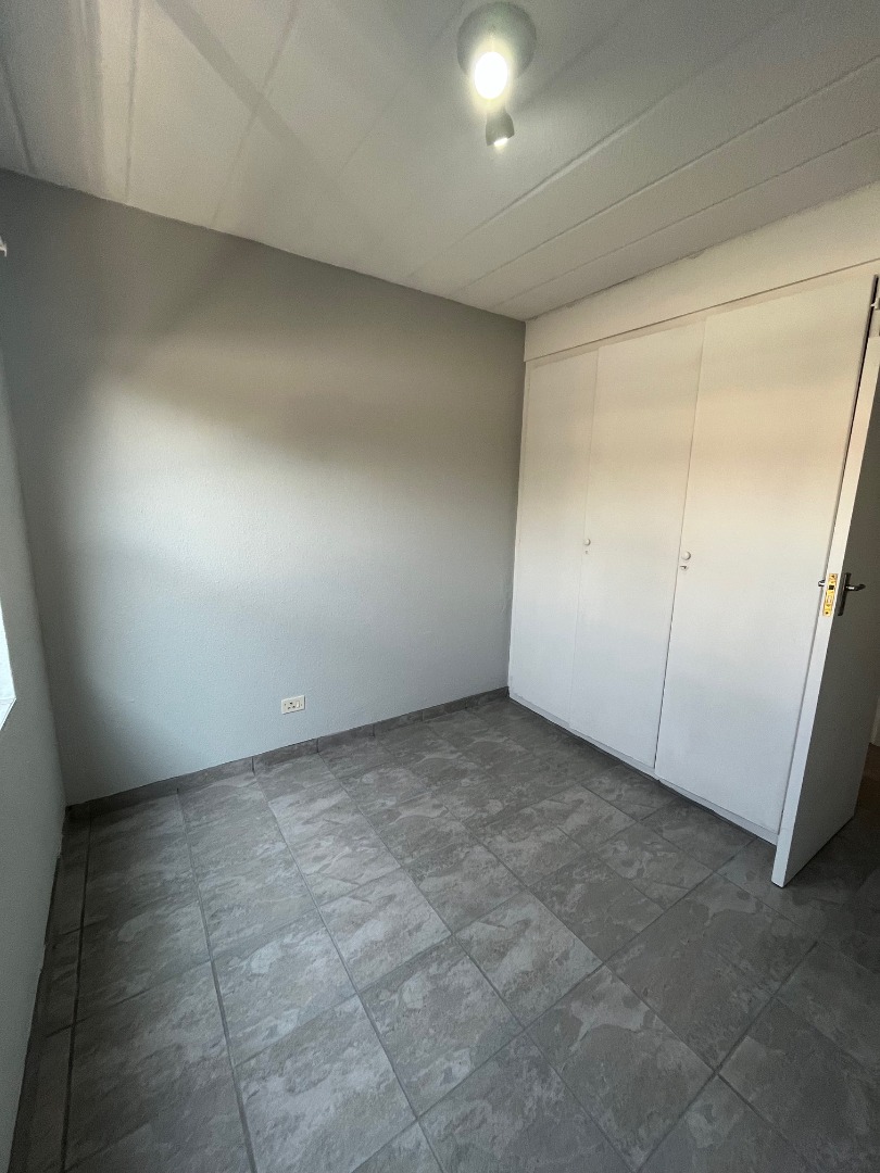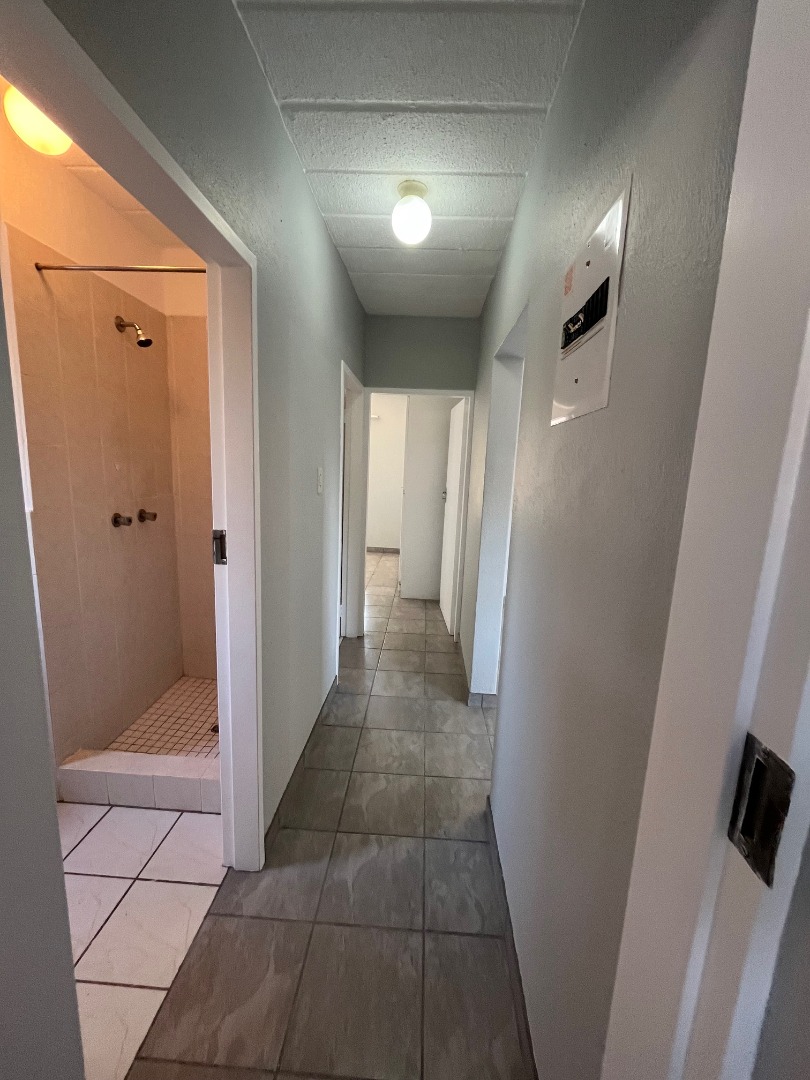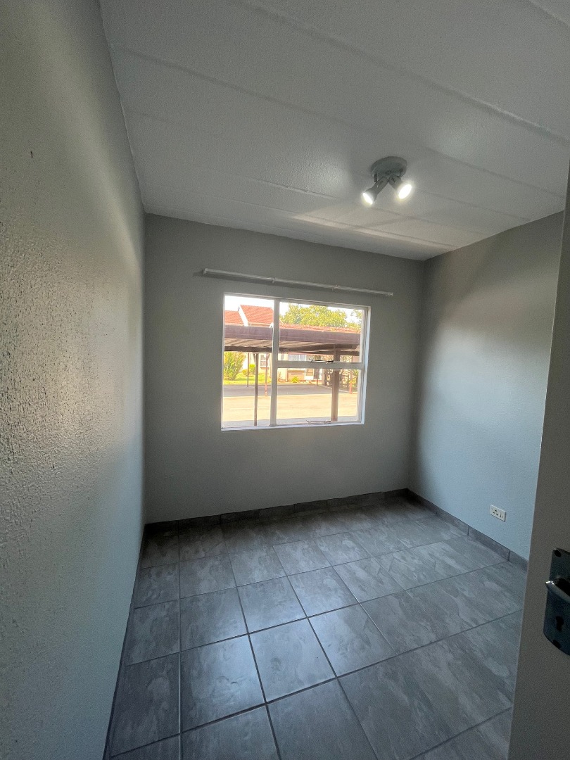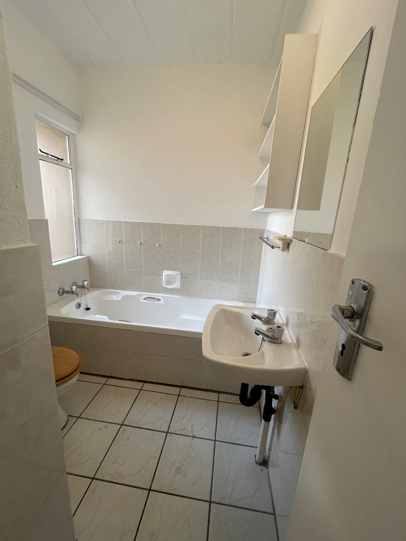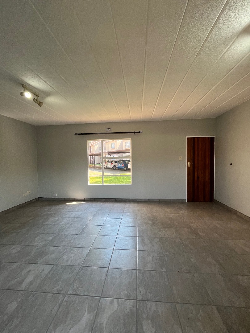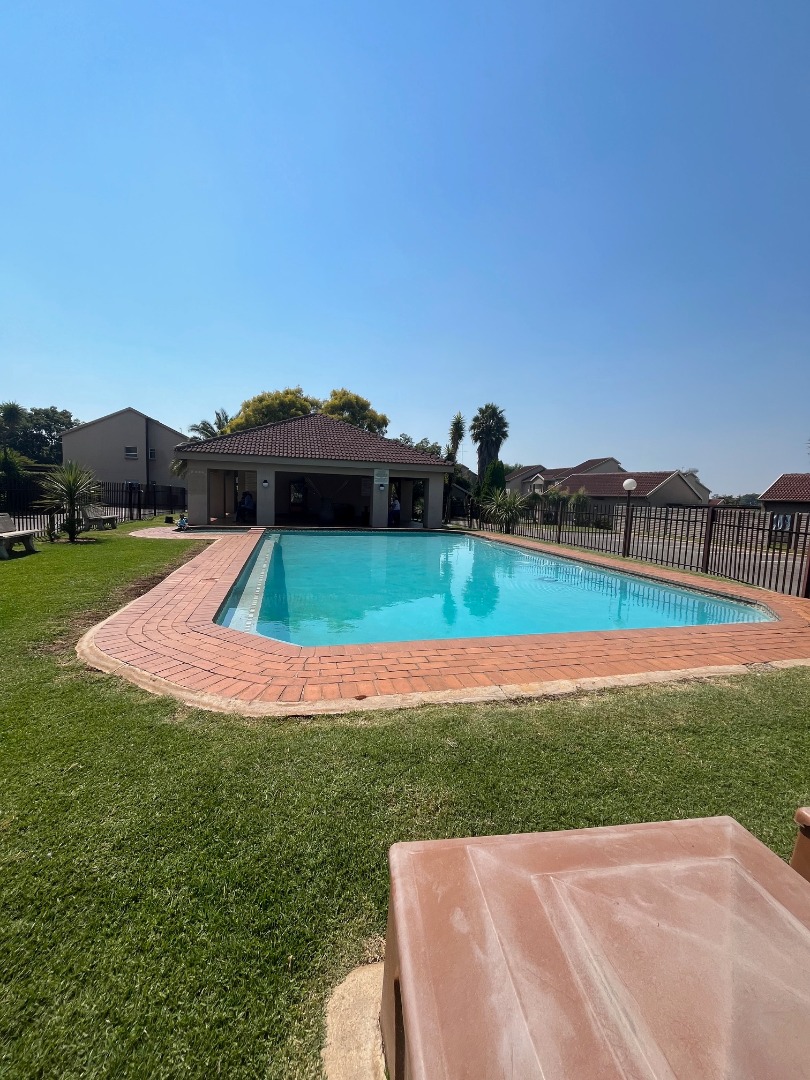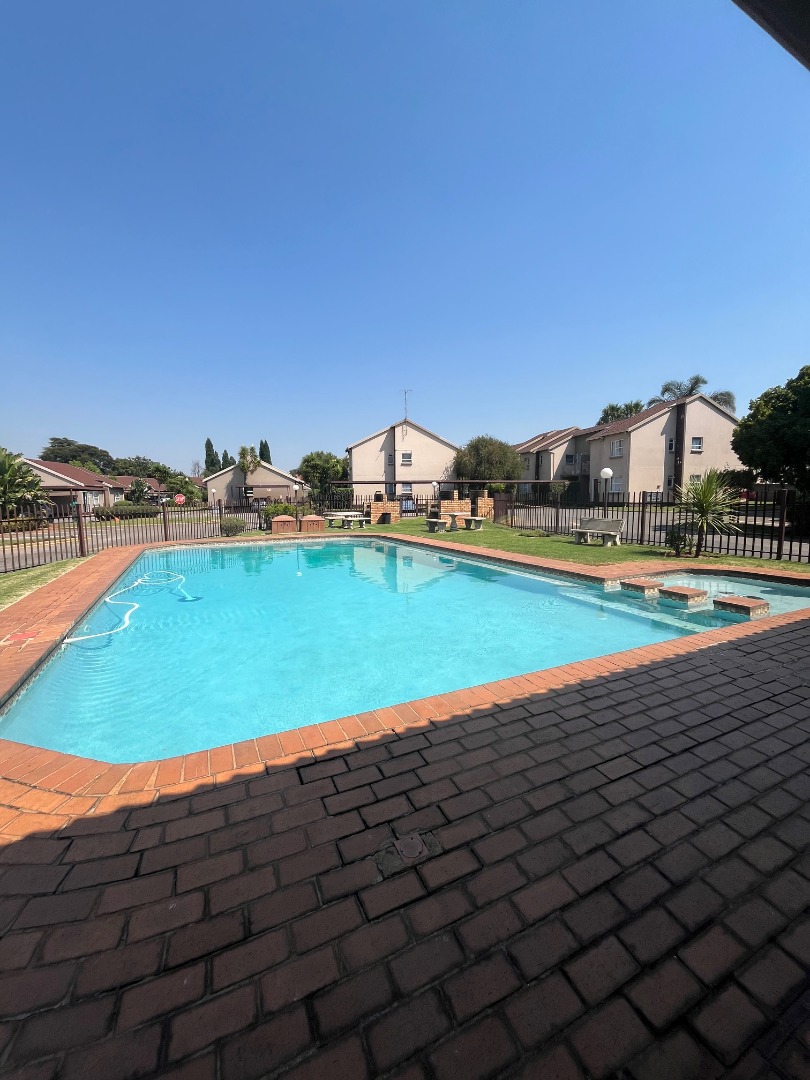 This inviting 2-bedroom, 2-bathroom residence offers comfortable and secure complex living in the desirable suburb of Pomona, Kempton Park. The property presents a well-maintained environment, featuring a lush common lawn area and dedicated outdoor entertainment space, complete with a built-in brick braai, stone table, and benches, perfect for social gatherings. A large palm tree adds to the aesthetic appeal, creating a welcoming atmosphere. Step inside to discover a bright and airy open-plan living area, comprising a spacious lounge and a dedicated dining room. The living space benefits from ample natural light, complemented by track lighting, and features a modern aesthetic with light grey walls and tiled flooring, partially covered by a large area rug. The compact yet functional kitchen boasts modern white cabinetry, essential appliances, and a convenient breakfast bar, making meal preparation and casual dining effortless. The two bedrooms are designed for comfort, each offering good natural light and a neutral colour palette. The main bedroom accommodates a queen-sized bed with nightstands and a dresser, while the second bedroom provides a cozy ambiance with built-in storage. Both bathrooms are functional, featuring tiled floors and walls; one includes a bathtub, and another offers a walk-in shower, catering to diverse preferences. Residents of this complex enjoy access to a refreshing communal swimming pool and a clubhouse, enhancing the lifestyle offerings. The property includes one dedicated parking bay. Security is paramount, with 24-hour security, a security post, and a security gate ensuring peace of mind. A communal braai area further extends the outdoor living options. Pomona, situated in Kempton Park, is a vibrant area known for its accessibility and convenience, offering a blend of residential tranquility and urban amenities. Key Features: * 2 Bedrooms, 2 Bathrooms * Open-plan Lounge and Dining Room * Modern Kitchen with Breakfast Bar * Communal Swimming Pool * Communal Braai Area * Clubhouse Access * 1 Dedicated Parking Bay * 24-Hour Security