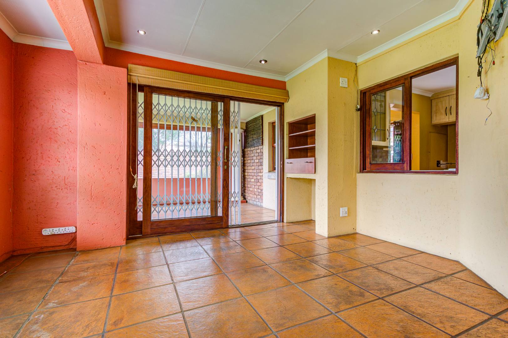 The exterior of the property includes double automated wooden garage doors with built-in shelving, a double shade-cloth carport and a beautifully maintained garden. The home features a tiled roof, wooden window frames and a fully plastered exterior, along with an inverter and solar battery system to ease the impact of load-shedding.