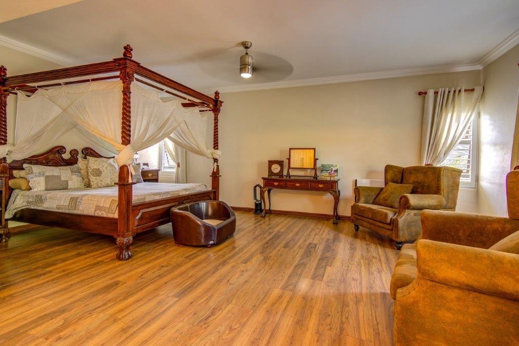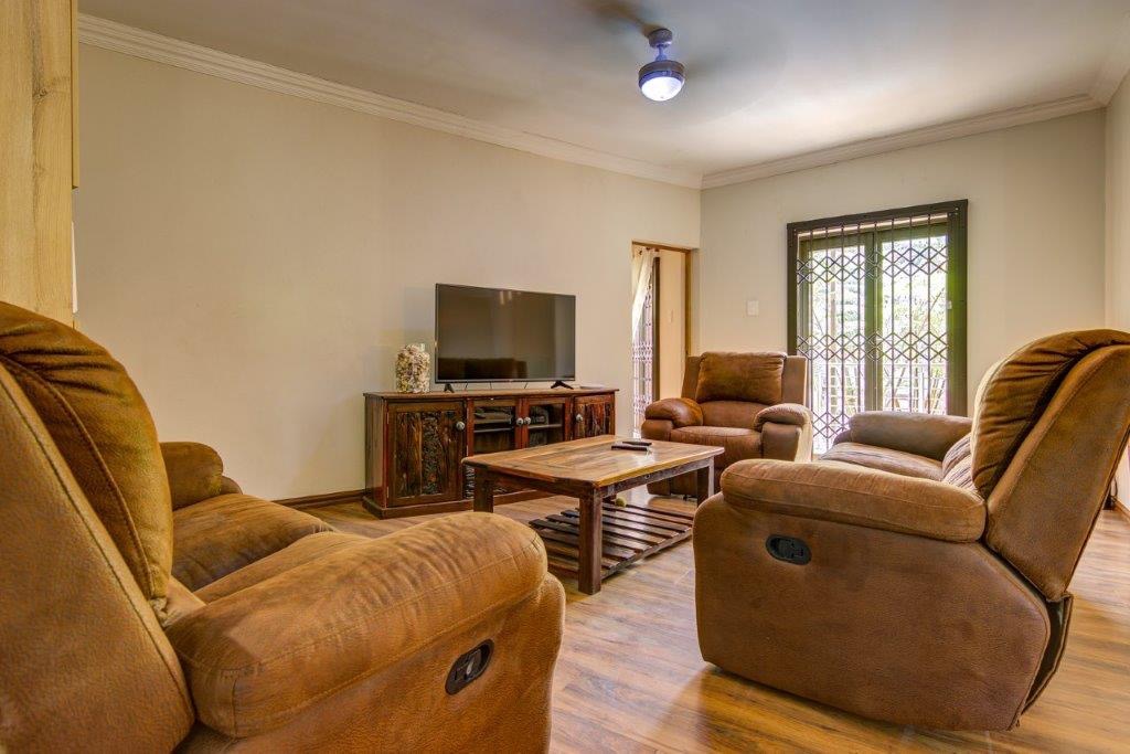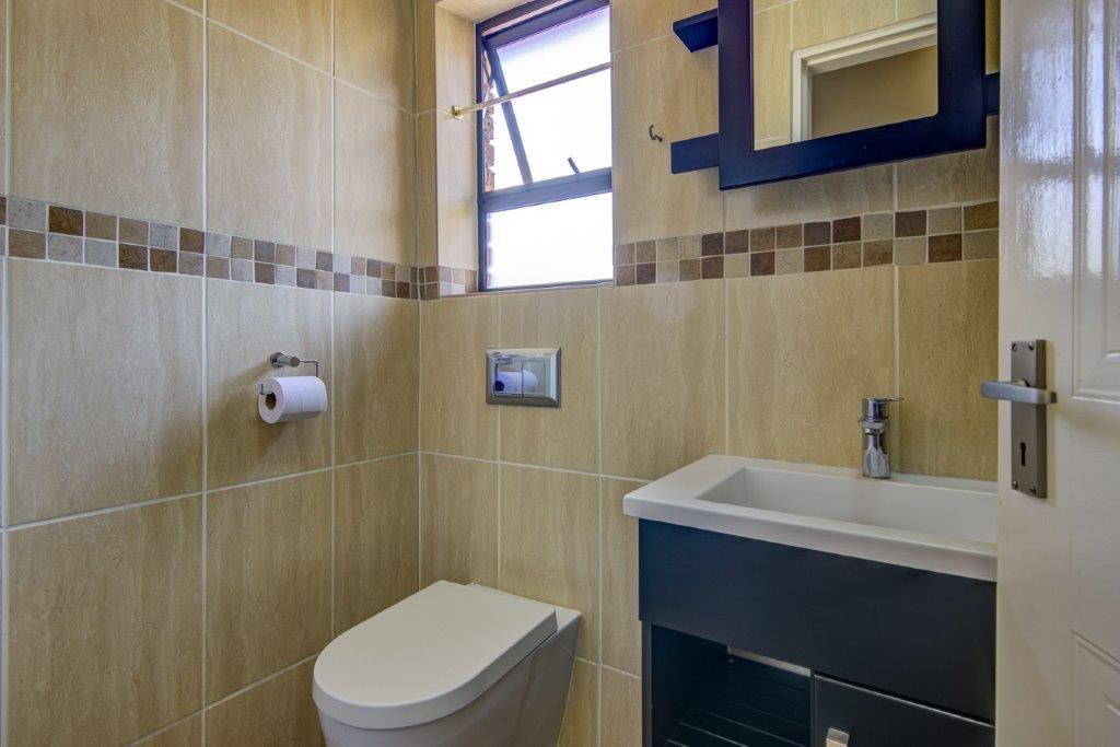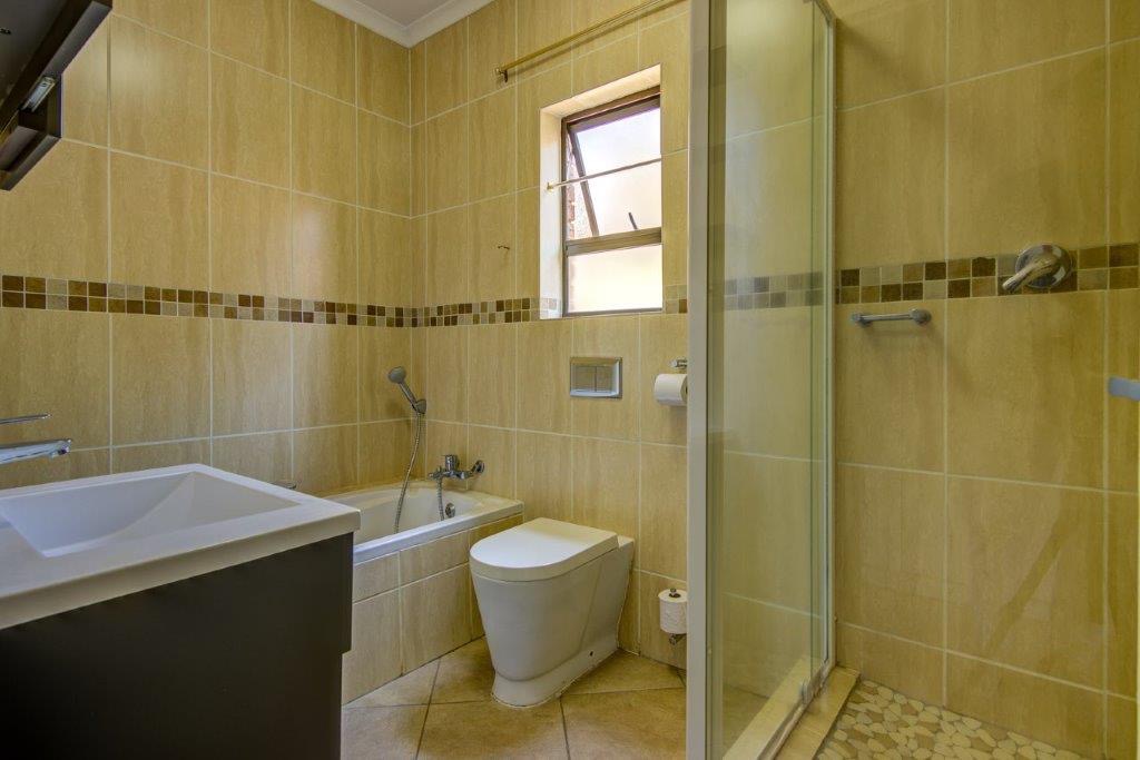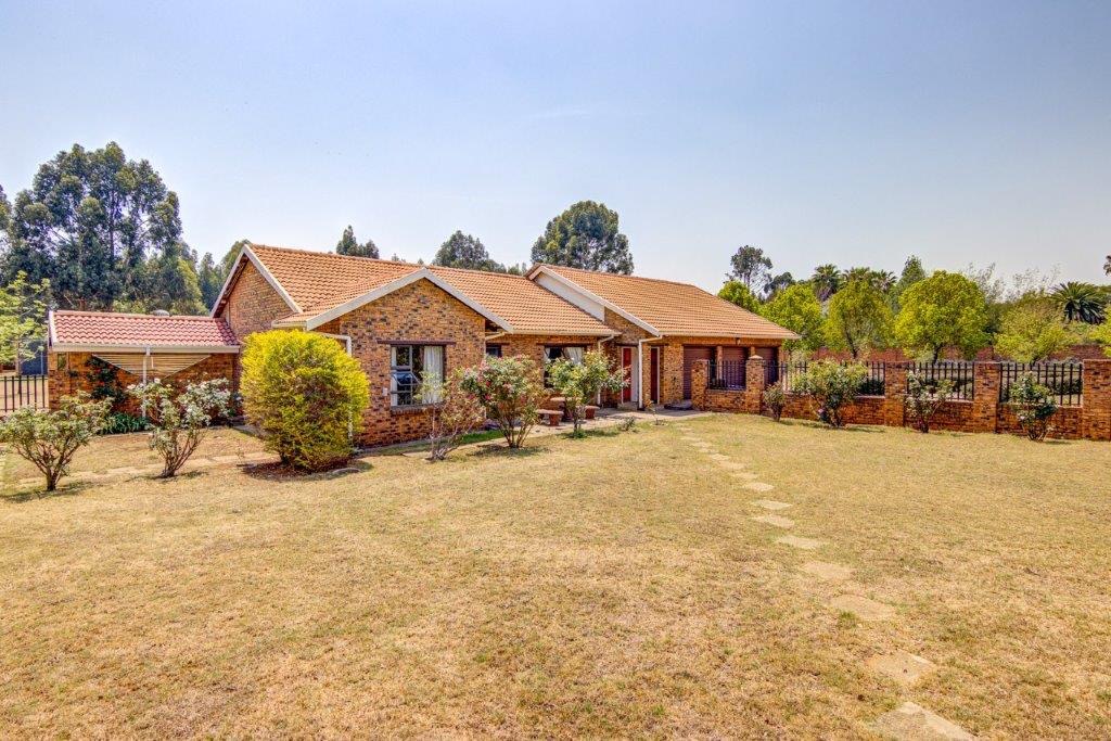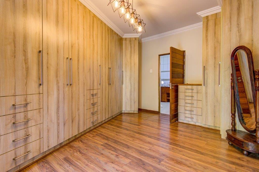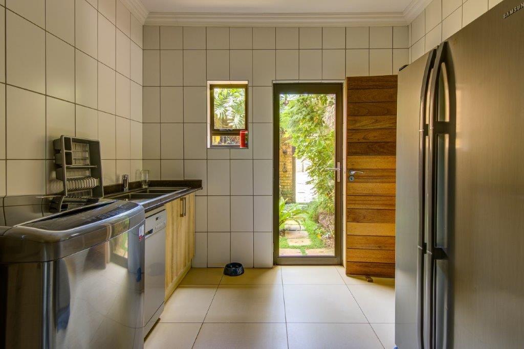 Main house: As you enter the double storey house, you are overwhelmed by the finest and modern finishes. An impressive cladded wall stretching up to the double volume ceiling, greets you! The Architectural design with the high ceiling, natural light and open plan areas is absolutely stunning. A large tiled open plan lounge and dining area with a shared Hergom fireplace perfectly placed. Stacker doors opens up to the covered patio and access to the sauna room, pool and braai patio area. Adjoining is an impressive open plan gourmet chef kitchen with top of the range appliances. A private wine cellar, scullery with indoor garden and water feature is just some of the unexpected extras to be found leading off the kitchen. Further on the ground floor, you will find a well placed library, tiled study room, tiled guest bathroom, walk -in linen cupboard, a large tiled bedroom which opens to the garden, an en-suite with oval bath and shower. Stylish wooden stairs (with roller shutter security gate) leads you to the top floor with a left and right wing! At the left wing you will find a spacious open plan lounge overlooking the impressive lounge and dining room with the impressive view of the fireplace, cladded wall towering to the ceiling. Fitted with a small kitchenette and bar fridge. A double volume bedroom with a door leading to a balcony, fitted with American shutter blinds, large dressing room, en-suite with large oval bathtub, shower and a his-and-hers vanity. Another bedroom, a large study room with own balcony and en-suite bathroom. On the right wing you will find 2 large bedrooms with access to the balcony and en-suite. The house is almost entirely off the grid with it's 60 solar panels, invertor and Lithium battery system. Extras such as borehole, Jojo water tank, store room, servants room with bathroom and pool.