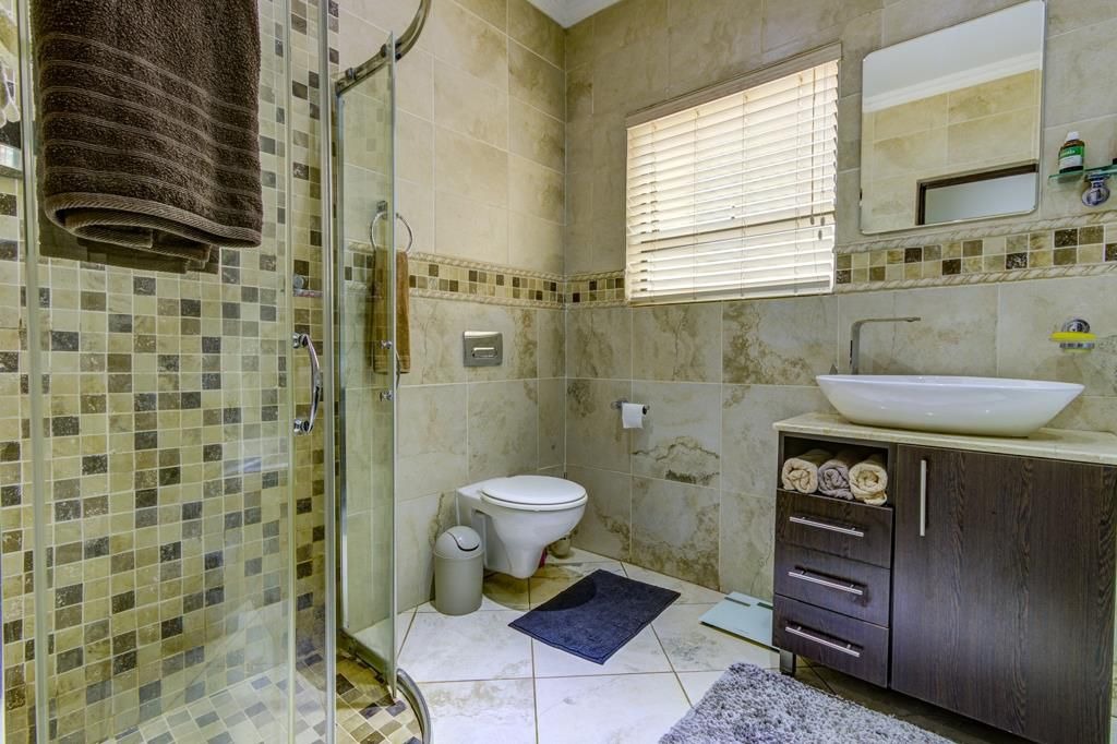 3 Bedrooms, that all open up onto the garden. Main bedroom that is worthy of its name with lots of cupboards, a stunning en-suite bathroom that offers a his and her basin, champagne bathtub to unwind in after a long day, large shower and toilet.