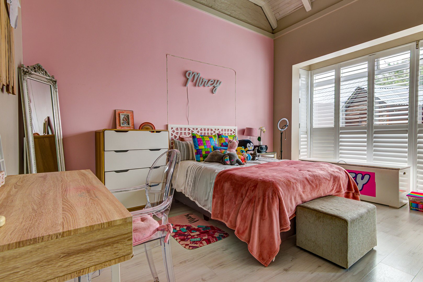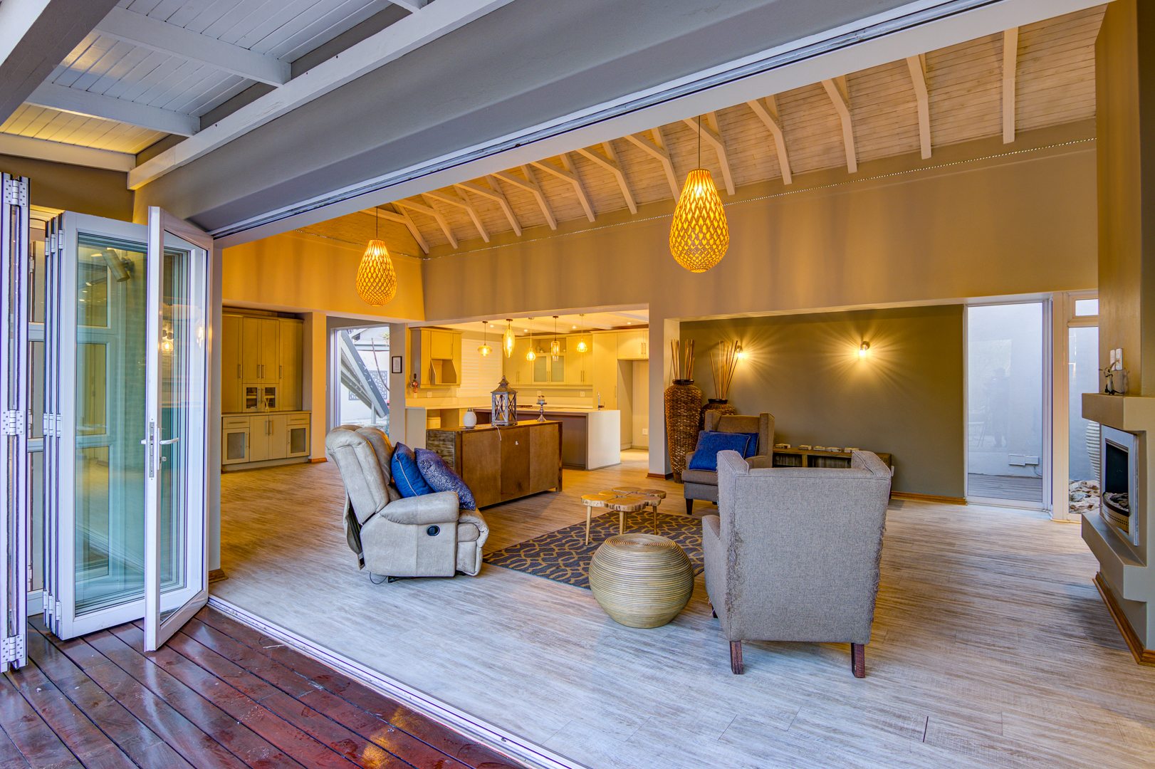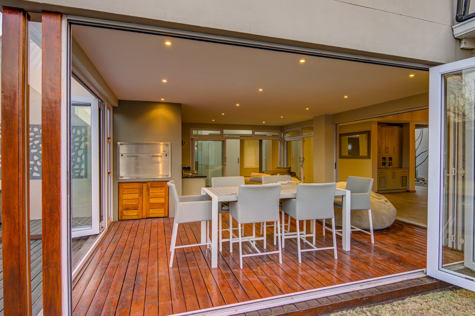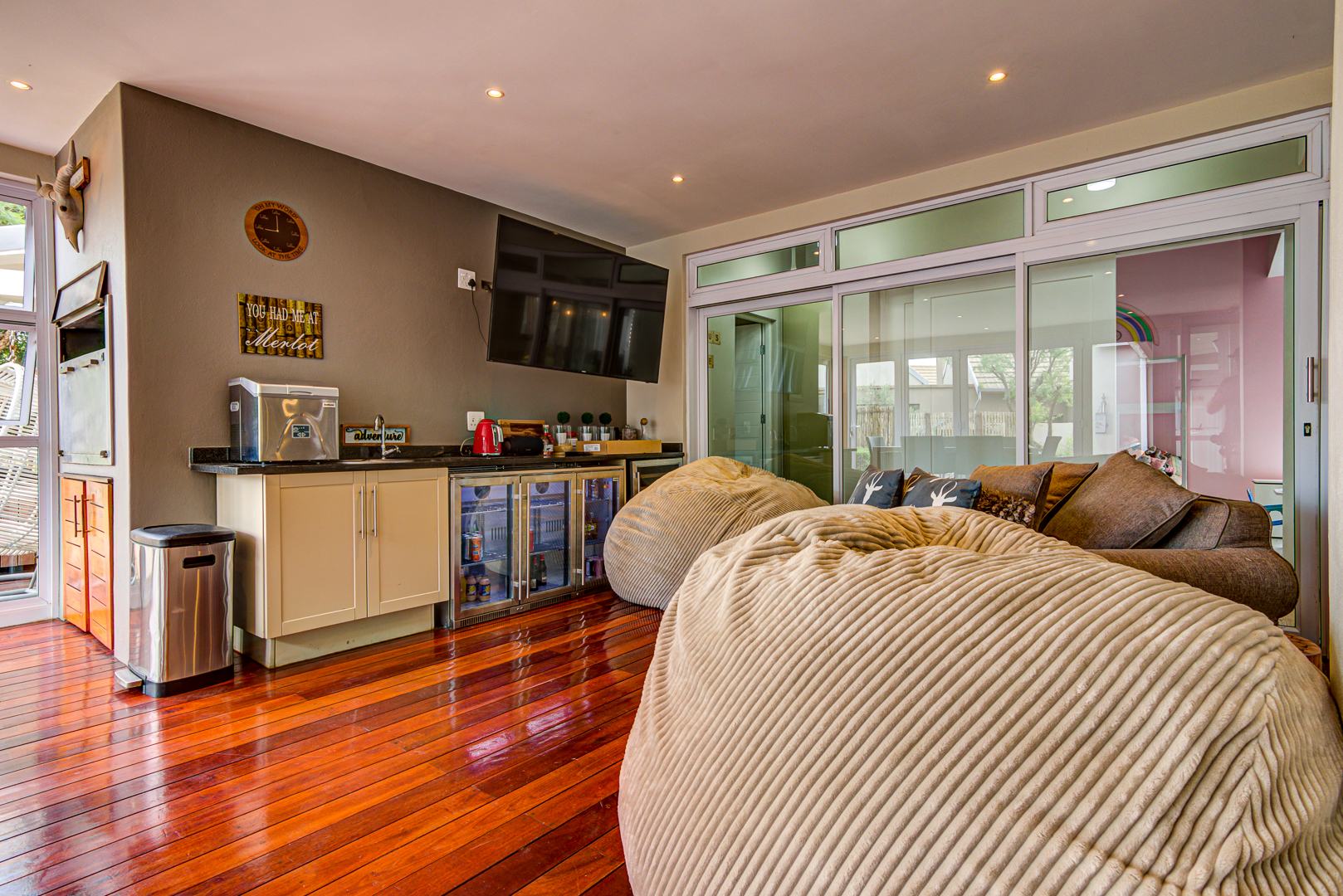 - Enclosed Patio with deck flooring, built in braai, prep bowl and counter, opening up to garden & pool