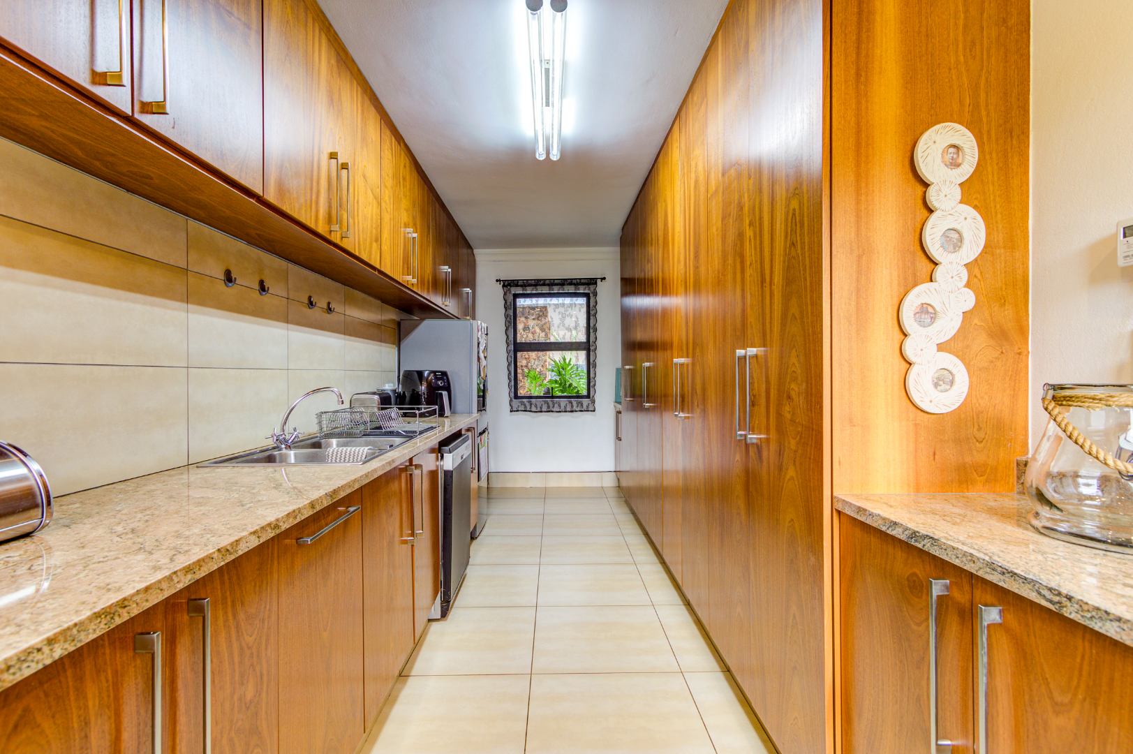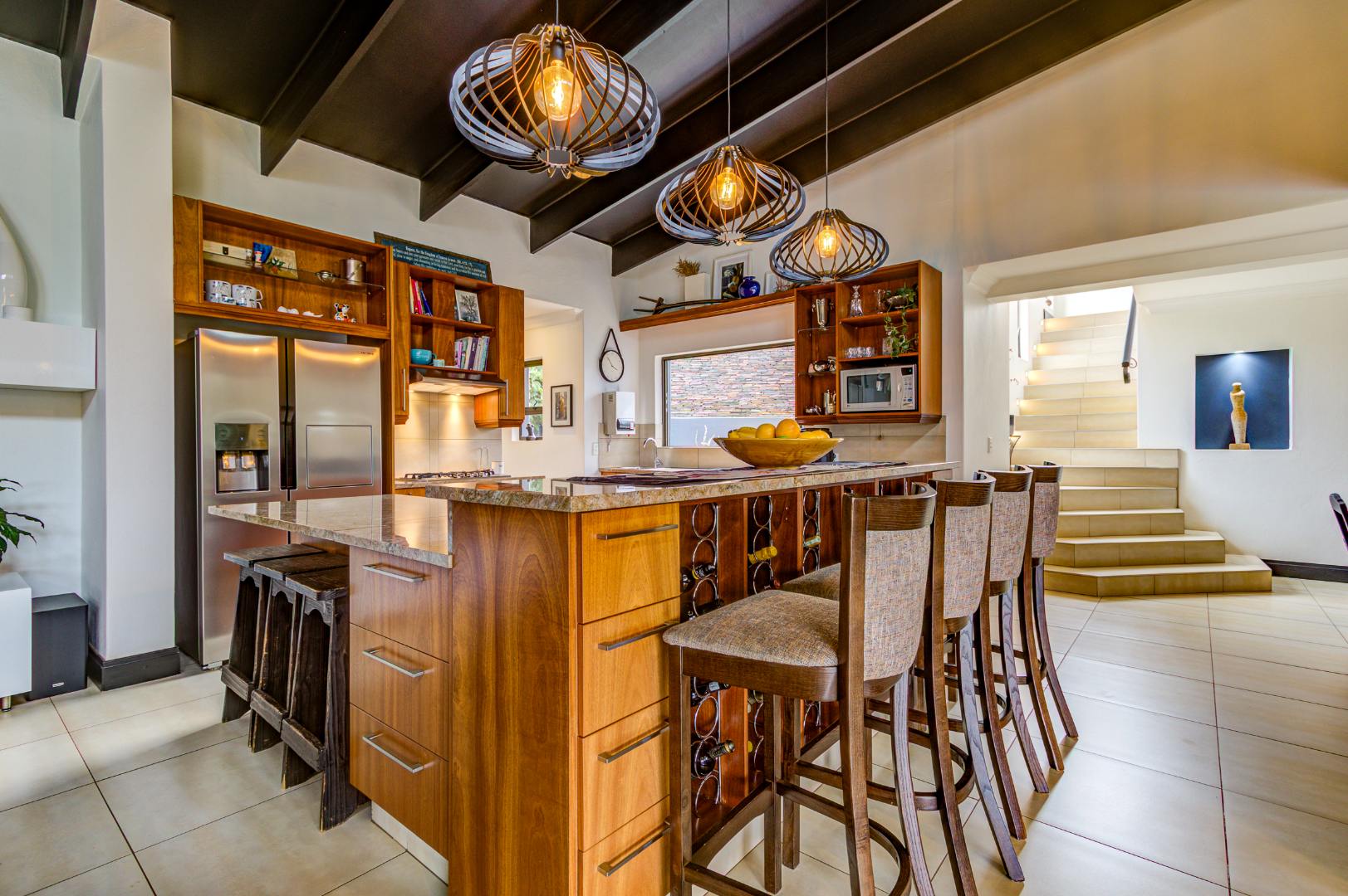 - The open-plan kitchen, dining, and lounge area is designed for seamless family living and effortless entertaining. All doors open onto a covered patio with built-in braai, overlooking the solar-heated pool, perfect for relaxed weekends and sunset gatherings. The large scullery offers ample space and includes a Hydroboil hot water system and a 10L Kwikhot undercounter geyser.