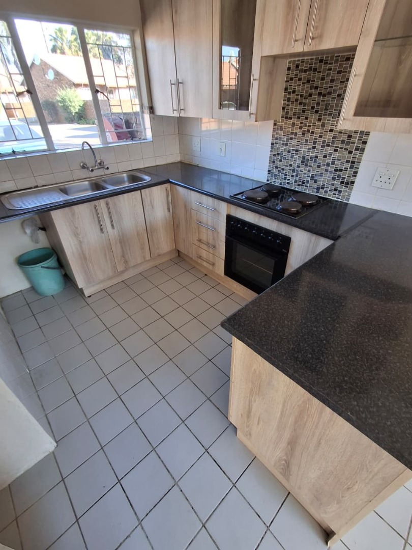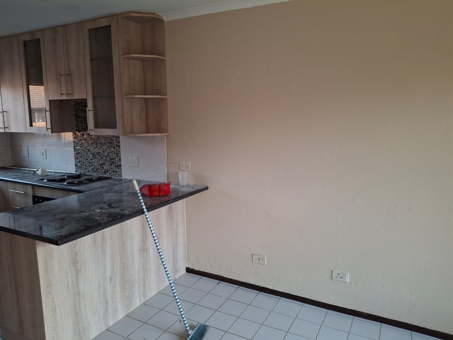Discover comfortable living in this secure 2-bedroom townhouse, ideally situated within a well-maintained complex in Terenure, Kempton Park. This charming brick-fronted home offers a practical layout across its 61 square metres, designed for ease and security. The exterior presents a neat appearance with a tiled roof, complemented by security bars on windows and a robust security gate at the entrance, ensuring peace of mind for residents. Step inside to a functional interior featuring a well-appointed kitchen. This space boasts modern light wood-grain cabinetry, sleek black granite countertops, and a tiled backsplash, complete with a convenient breakfast bar. Tiled flooring extends through the kitchen and into the lounge, creating a cohesive and easy-to-maintain living area. The neutral wall colours throughout provide a versatile canvas for personal touches. The residence offers two comfortable bedrooms, each providing natural light through windows fitted with security bars. These rooms, though compact, offer private retreats. The single bathroom is equipped with a toilet and bathtub, featuring tiled lower walls and a window for ventilation, ensuring all essential amenities are met for daily living. Outdoor living is a highlight, with private, enclosed spaces perfect for relaxation and entertaining. Enjoy a built-in brick braai, ideal for South African outdoor cooking, complemented by a small, manageable lawn and established plant beds. The property includes a single garage and an additional parking space, adding to its convenience. Kempton Park offers a suburban lifestyle with access to local amenities and transport routes. This established area provides a convenient setting for residents seeking a balanced community environment. Key Features: * 2 Bedrooms, 1 Bathroom * 61 sqm Floor Size * Secure Complex Living * Modern Kitchen with Granite Countertops * Built-in Braai Area * Single Garage & Additional Parking * Security Gates & Window Bars * Manageable Private Garden