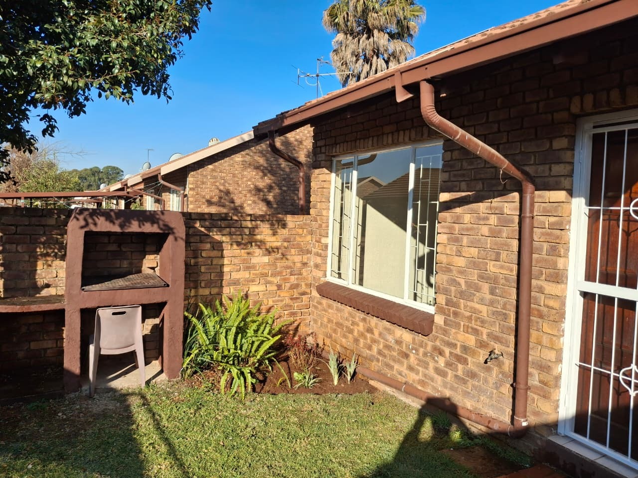 Discover comfortable living in this secure 2-bedroom townhouse, ideally situated within a well-maintained complex in Terenure, Kempton Park. This charming brick-fronted home offers a practical layout across its 61 square metres, designed for ease and security. The exterior presents a neat appearance with a tiled roof, complemented by security bars on windows and a robust security gate at the entrance, ensuring peace of mind for residents. Step inside to a functional interior featuring a well-appointed kitchen. This space boasts modern light wood-grain cabinetry, sleek black granite countertops, and a tiled backsplash, complete with a convenient breakfast bar. Tiled flooring extends through the kitchen and into the lounge, creating a cohesive and easy-to-maintain living area. The neutral wall colours throughout provide a versatile canvas for personal touches. The residence offers two comfortable bedrooms, each providing natural light through windows fitted with security bars. These rooms, though compact, offer private retreats. The single bathroom is equipped with a toilet and bathtub, featuring tiled lower walls and a window for ventilation, ensuring all essential amenities are met for daily living. Outdoor living is a highlight, with private, enclosed spaces perfect for relaxation and entertaining. Enjoy a built-in brick braai, ideal for South African outdoor cooking, complemented by a small, manageable lawn and established plant beds. The property includes a single garage and an additional parking space, adding to its convenience. Kempton Park offers a suburban lifestyle with access to local amenities and transport routes. This established area provides a convenient setting for residents seeking a balanced community environment. Key Features: * 2 Bedrooms, 1 Bathroom * 61 sqm Floor Size * Secure Complex Living * Modern Kitchen with Granite Countertops * Built-in Braai Area * Single Garage & Additional Parking * Security Gates & Window Bars * Manageable Private Garden