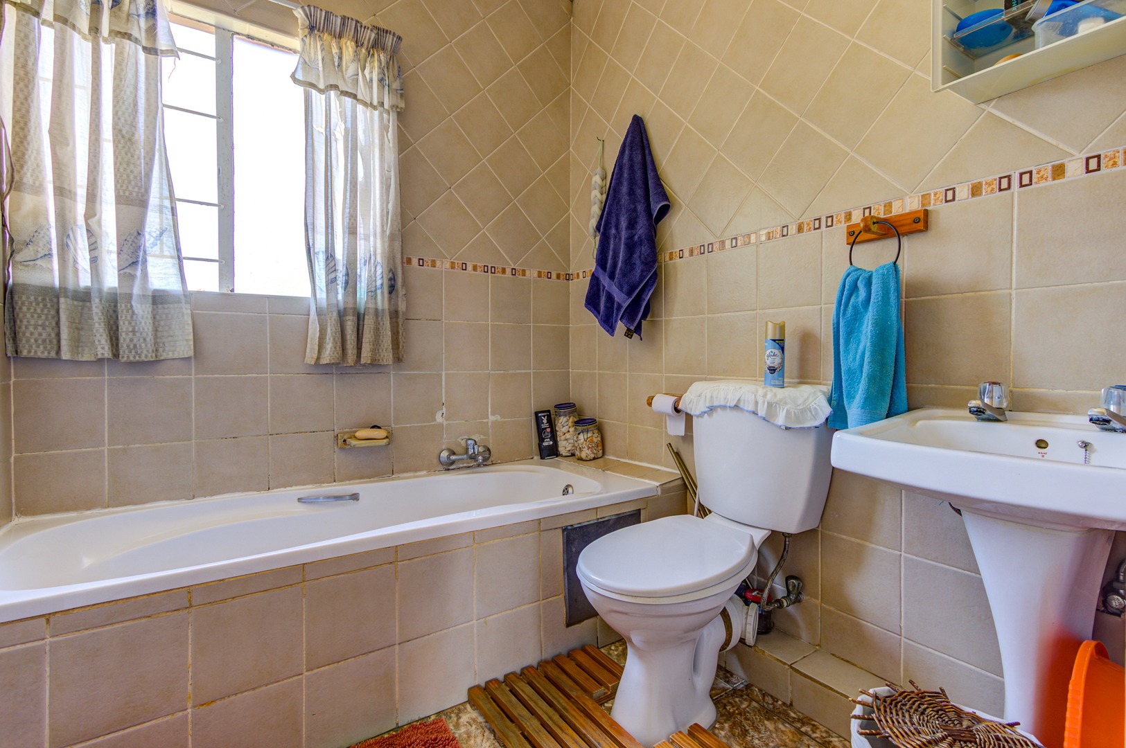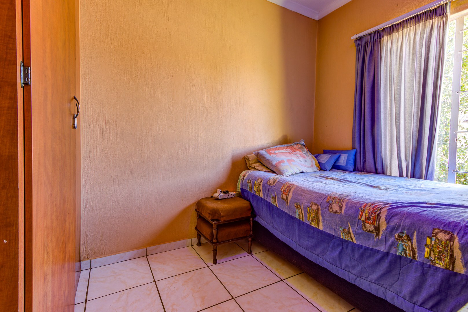 The townhouse comprises two comfortable bedrooms. A single well-appointed bathroom serves both bedrooms, ensuring convenience. The layout is designed for practicality, making it suitable for individuals, couples, or small families seeking an accessible entry into the property market or a sound investment. Security gates and burglar bars provide peace of mind within the unit.
