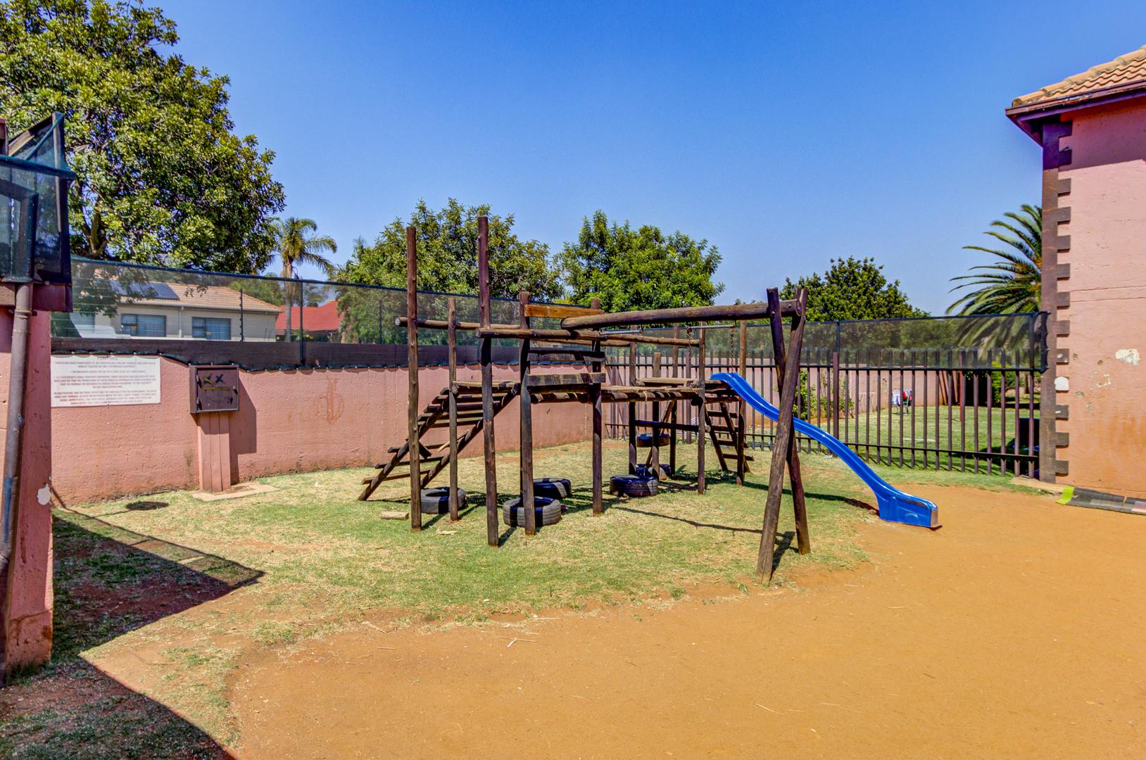 Residents of this complex enjoy access to a refreshing communal swimming pool, perfect for cooling off on warm days. Dedicated covered and open braai/BBQ areas provide ideal settings for social gatherings and outdoor dining. Families will appreciate the children's play area, complete with a jungle gym, while the spacious communal gardens with mature trees offer serene green spaces. Ample covered parking is available for residents.
