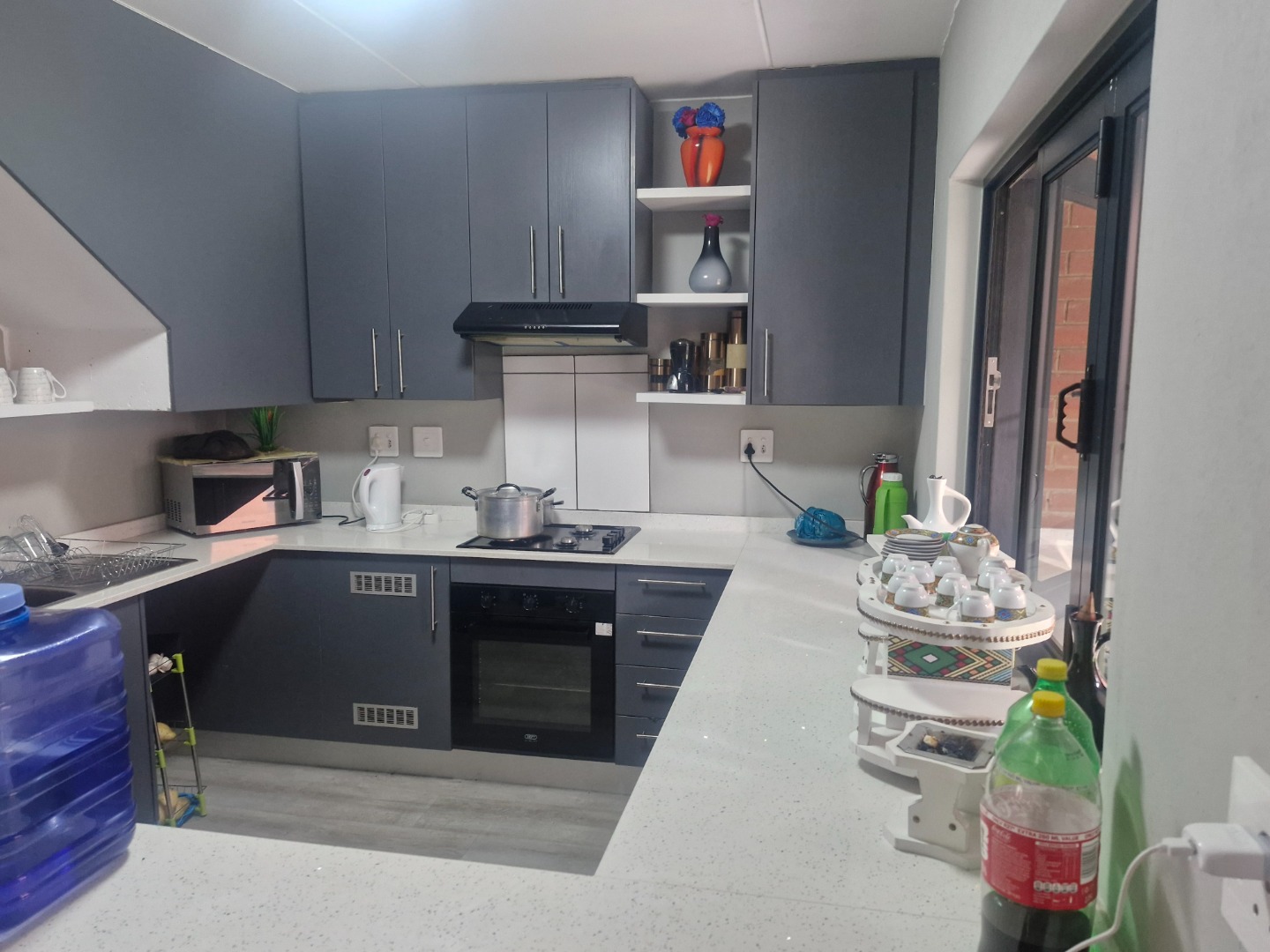 THIS SPACIOUS VERY NEAT AND MORDERN FAMILY HOME IN HIGHLY SOUGHT SURBUB OF TERENURE CONSIST OF THREE SPACIOUS BEDROOMS ALL FITTED, MAIN WITH ENSUITE, OPEN PLAN OF LOUNGE ,DININING ROOM AND FITTED MORDERN KITCHEN, SECOND FULL BATH AND A GUEST TOILET PLUS TWO CARPORTS.OUTDOOR HAS A COVERED PATIO WITH BUILT IN BRAAI AND WELL KEPT PRIVATE GARDERN WHICH IS PET FRIENDLY. THE PROPERTY HAS 24HR SECURITY ,CCTV SURVEILLANCEFOR COMFORT AND PEACE ALSO THE COMPLEX ALSO OFFERS ACCESS TO CLUBHOUSE, COMMUNAL POOL AND TWO CHILDREN PLAYING AREAS.THE PROPERTY IS A DUPLEX WITH SITING ROOM ,KITCHEN AND ALL THREE BEDROOMS UPSTAIRS LOCATED IN A VERY GOOD PART OF TERENURE NEXT TO UPMARKET PROPERTIES AND CLOSE TO SHOPS, SCHOOLS AND JUST 10 MINUTES AWAY FROM KEMPTON PARK CBD AND OR TAMBO AIRPORT