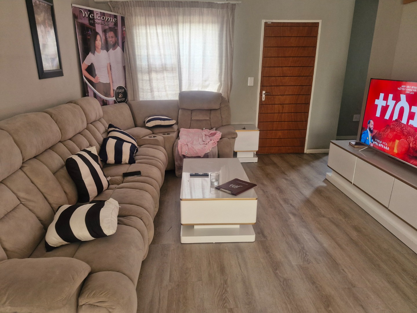 THIS SPACIOUS VERY NEAT AND MORDERN FAMILY HOME IN HIGHLY SOUGHT SURBUB OF TERENURE CONSIST OF THREE SPACIOUS BEDROOMS ALL FITTED, MAIN WITH ENSUITE, OPEN PLAN OF LOUNGE ,DININING ROOM AND FITTED MORDERN KITCHEN, SECOND FULL BATH AND A GUEST TOILET PLUS TWO CARPORTS.OUTDOOR HAS A COVERED PATIO WITH BUILT IN BRAAI AND WELL KEPT PRIVATE GARDERN WHICH IS PET FRIENDLY. THE PROPERTY HAS 24HR SECURITY ,CCTV SURVEILLANCEFOR COMFORT AND PEACE ALSO THE COMPLEX ALSO OFFERS ACCESS TO CLUBHOUSE, COMMUNAL POOL AND TWO CHILDREN PLAYING AREAS.THE PROPERTY IS A DUPLEX WITH SITING ROOM ,KITCHEN AND ALL THREE BEDROOMS UPSTAIRS LOCATED IN A VERY GOOD PART OF TERENURE NEXT TO UPMARKET PROPERTIES AND CLOSE TO SHOPS, SCHOOLS AND JUST 10 MINUTES AWAY FROM KEMPTON PARK CBD AND OR TAMBO AIRPORT
