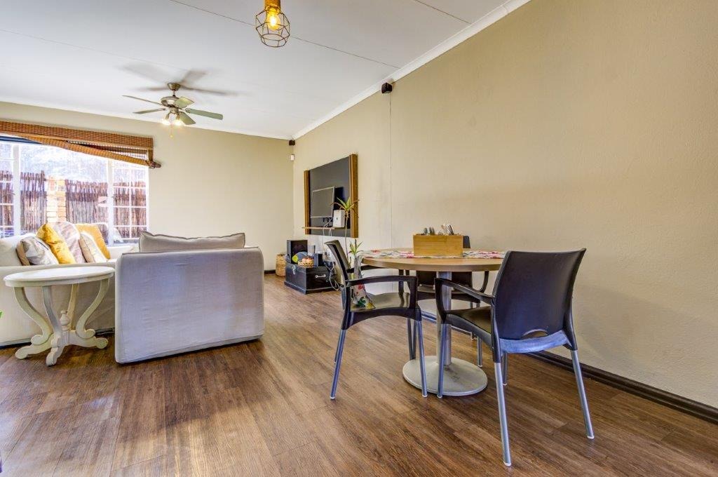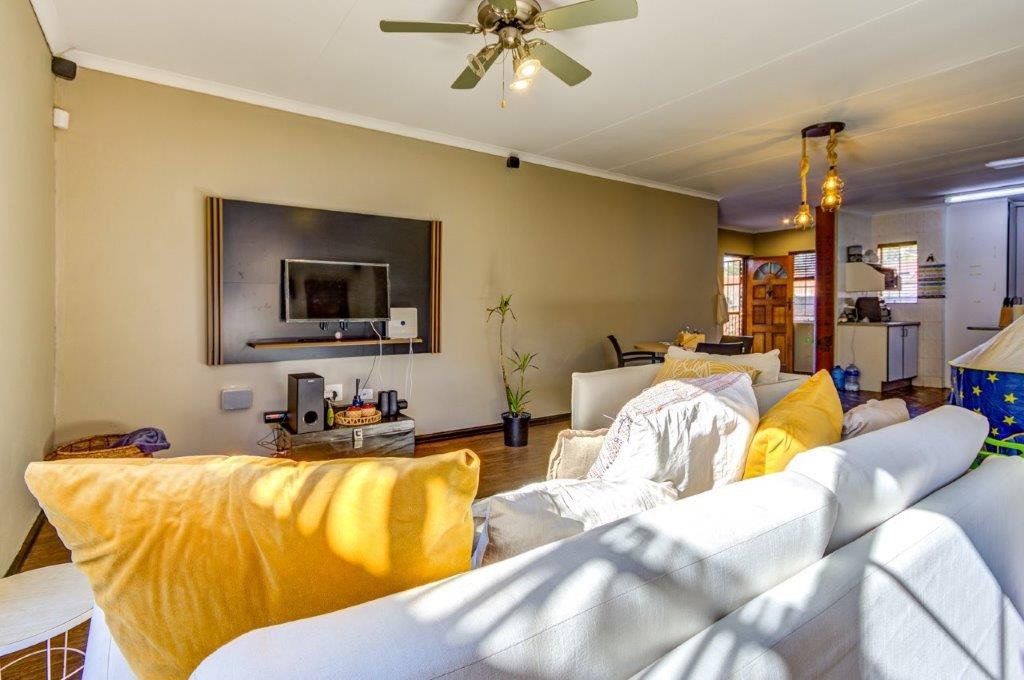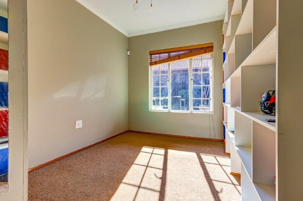 and ceiling fan in the lounge and dining area with a sliding door leading tothe outside. Tiled kitchen with island stove, double eye level oven, pantry, lots of built-in cupboards and under counter space for your electrical appliances. 3 Carpeted bedrooms with built-in cupboards. Large main bedroom with ceiling fan. 2 Tiled bathrooms (1 with shower, other with bath and shower