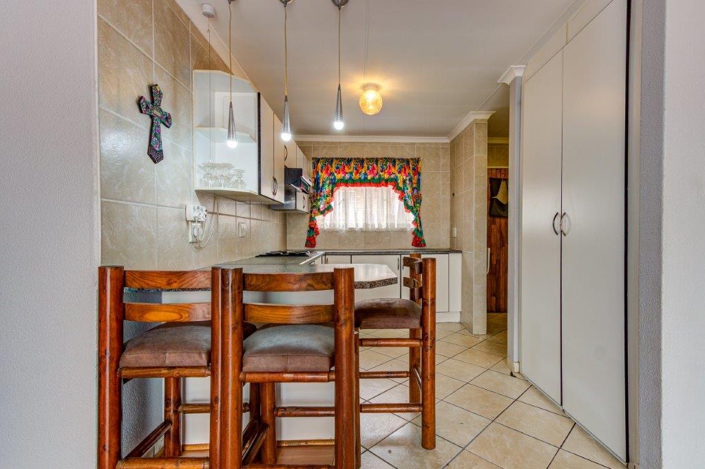 Discover this inviting 3-bedroom, 2-bathroom residence located in the established suburb of Terenure, Kempton Park. This property, spanning 143 sqm, offers a blend of practical living spaces and unique architectural features, making it an ideal family home. The exterior boasts durable brick construction complemented by distinctive thatched elements, including a charming lapa and a portion of the roof, adding character and curb appeal. Step inside to find a well-appointed interior featuring an open-plan layout that seamlessly connects the living areas. The home is fitted with clean laminate wood flooring throughout, providing a modern and low-maintenance foundation. Neutral light grey walls offer a versatile canvas for personal decor, while large windows and sliding doors ensure ample natural light fills each room. Ceiling fans are installed for comfort and air circulation. The functional kitchen is equipped with tiled floors and a matching backsplash, white cabinetry, and includes a convenient breakfast bar with seating. Adjacent to the kitchen are the dedicated dining room and a comfortable lounge, perfect for family gatherings and relaxation. The three bedrooms are designed for comfort, and the two bathrooms cater to the household's needs. Outdoor living is enhanced by a paved patio area and a unique thatched lapa, ideal for entertaining or enjoying the South African climate. The property benefits from a double garage, providing secure parking and additional storage. Security is a priority, with features such as burglar bars, security gates, and a totally walled perimeter ensuring peace of mind. The property also includes a neat, low-maintenance garden and a paved driveway. Situated in Kempton Park, Terenure offers a convenient suburban lifestyle with access to local amenities and transport routes. Key Features: * 3 Bedrooms, 2 Bathrooms * 1 Lounge, 1 Dining Room, 1 Kitchen * 143 sqm Floor Size * Double Garage * Unique Thatched Lapa * Paved Driveway and Patio * Laminate Wood Flooring * Burglar Bars and Security Gates * Totally Walled Property * Pet-Friendly