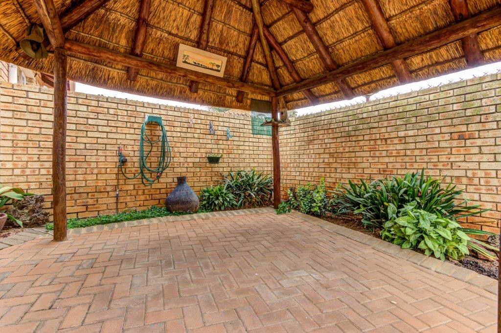 Discover this inviting 3-bedroom, 2-bathroom residence located in the established suburb of Terenure, Kempton Park. This property, spanning 143 sqm, offers a blend of practical living spaces and unique architectural features, making it an ideal family home. The exterior boasts durable brick construction complemented by distinctive thatched elements, including a charming lapa and a portion of the roof, adding character and curb appeal. Step inside to find a well-appointed interior featuring an open-plan layout that seamlessly connects the living areas. The home is fitted with clean laminate wood flooring throughout, providing a modern and low-maintenance foundation. Neutral light grey walls offer a versatile canvas for personal decor, while large windows and sliding doors ensure ample natural light fills each room. Ceiling fans are installed for comfort and air circulation. The functional kitchen is equipped with tiled floors and a matching backsplash, white cabinetry, and includes a convenient breakfast bar with seating. Adjacent to the kitchen are the dedicated dining room and a comfortable lounge, perfect for family gatherings and relaxation. The three bedrooms are designed for comfort, and the two bathrooms cater to the household's needs. Outdoor living is enhanced by a paved patio area and a unique thatched lapa, ideal for entertaining or enjoying the South African climate. The property benefits from a double garage, providing secure parking and additional storage. Security is a priority, with features such as burglar bars, security gates, and a totally walled perimeter ensuring peace of mind. The property also includes a neat, low-maintenance garden and a paved driveway. Situated in Kempton Park, Terenure offers a convenient suburban lifestyle with access to local amenities and transport routes. Key Features: * 3 Bedrooms, 2 Bathrooms * 1 Lounge, 1 Dining Room, 1 Kitchen * 143 sqm Floor Size * Double Garage * Unique Thatched Lapa * Paved Driveway and Patio * Laminate Wood Flooring * Burglar Bars and Security Gates * Totally Walled Property * Pet-Friendly