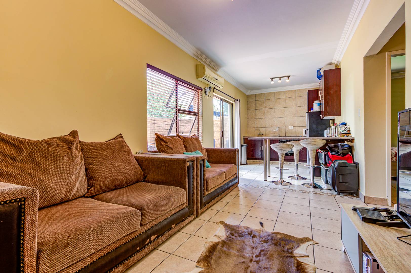 - Elegant tiled lounge with doors opening onto the patio and indoor pool area