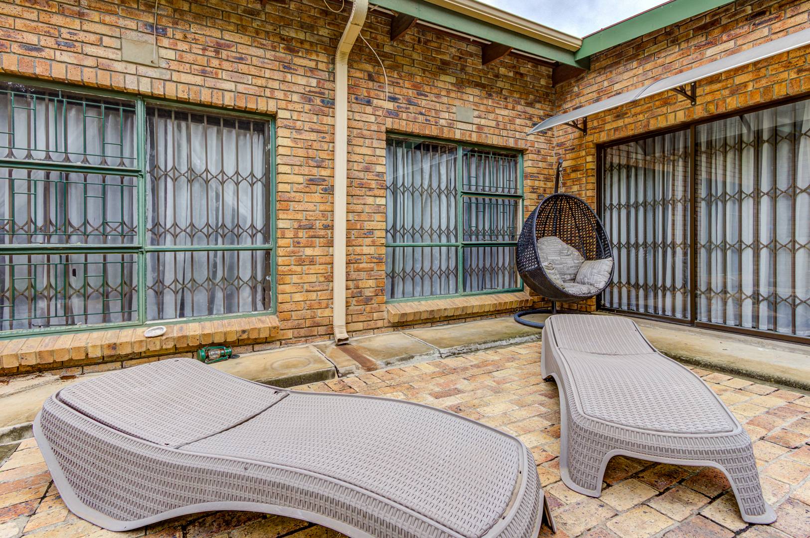 Before entering the property with it's impressive wooden sleeper door, you have to wonder through a landscaped garden and koi pond, this will bring you peace of mind. You will be amazed by the size of it's rooms, high ceilings and natural sun light. A large tiled and carpeted lounge will lead you to a carpeted family room with a fireplace. Both these rooms are interlinked to the tiled entertainment area with a built in sleeper wood bar, shelves and braai. Installed aircon for convenience. A large tiled dining room