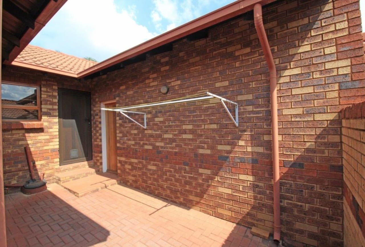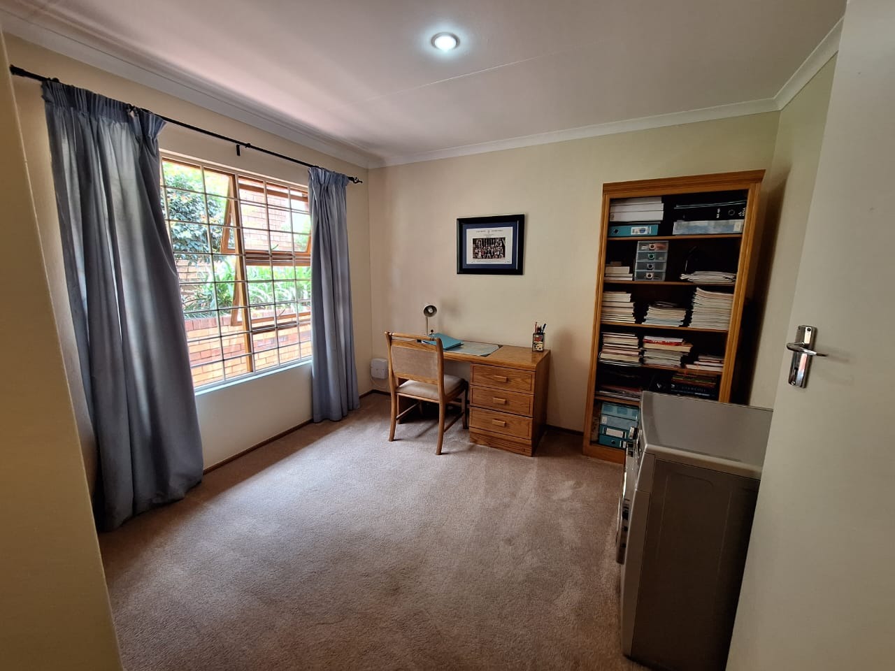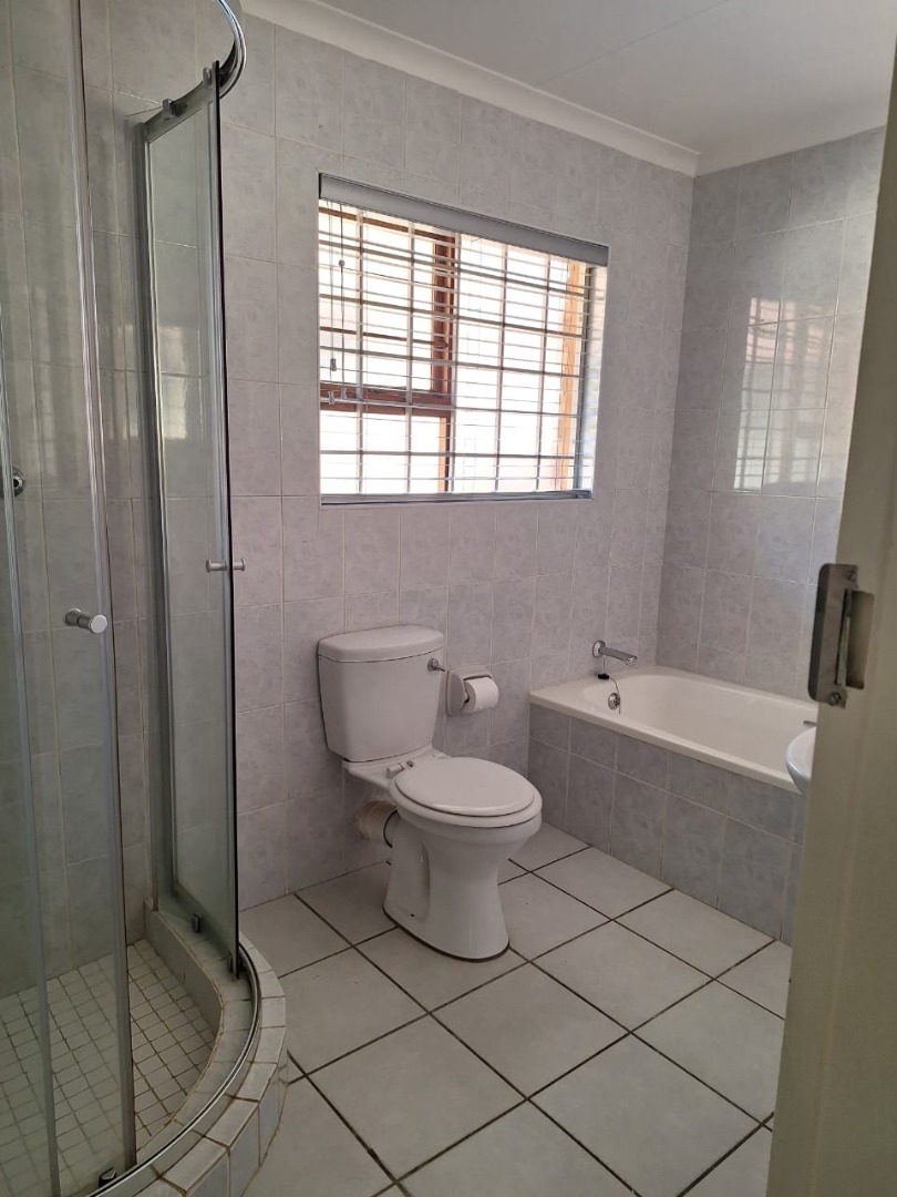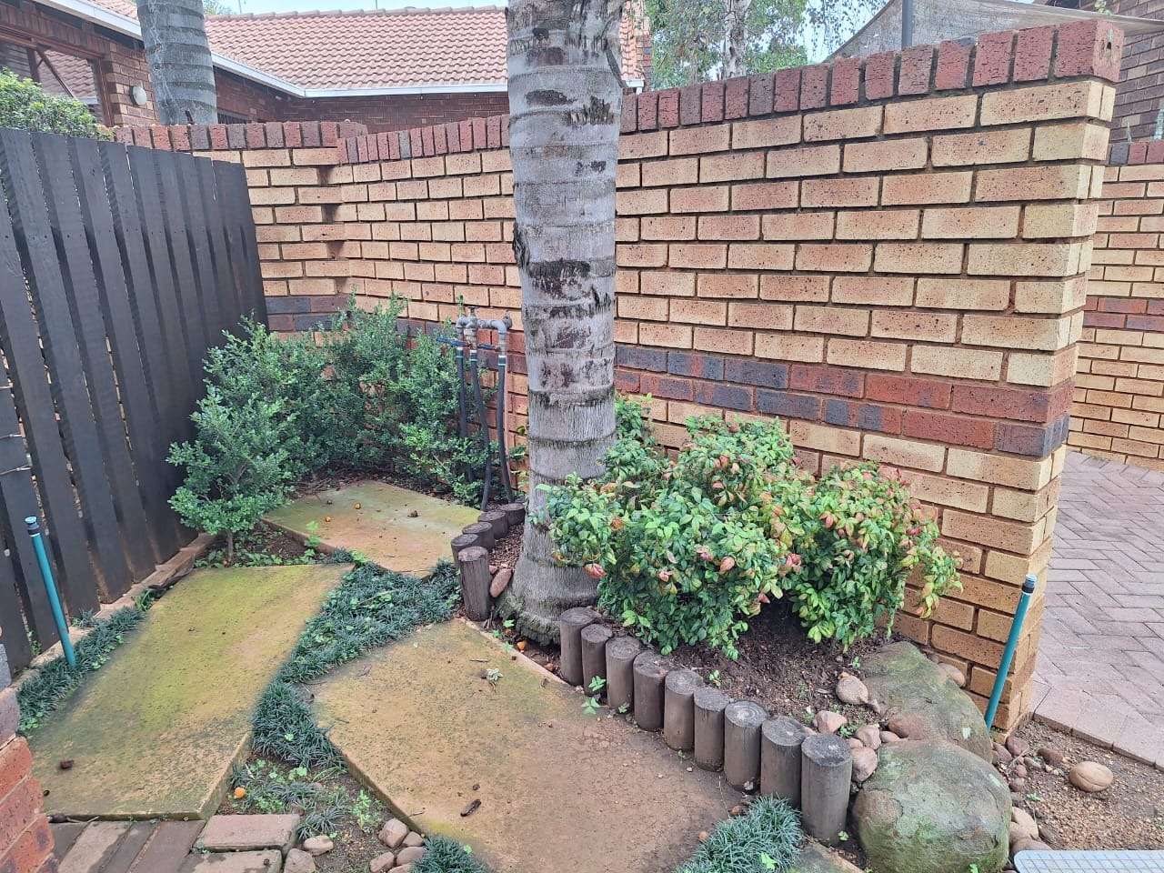This lovely property offers true coziness with a large carpeted lounge and separate dining room, both opens up to a covered louvred roof patio. A large kitchen with hob, under counter oven and space for a dishwasher. Separate laundry and scullery. 3 Bedrooms, all carpeted with a large main bedroom with lots of built-in cupboards. 2 Tiled bathrooms (one en-suite) with bath and shower, the other with bath only. Double garage and small garden with manual sprinkler system. 2 Small dogs allowed.