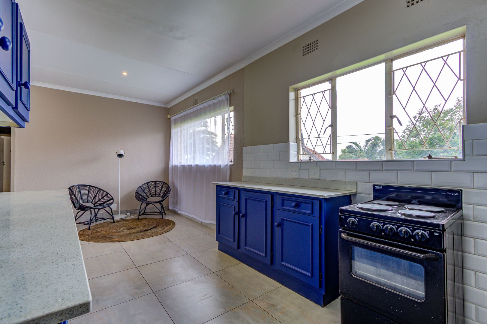 four plate stove, ample cupboard space and granite tops, cupboards are painted