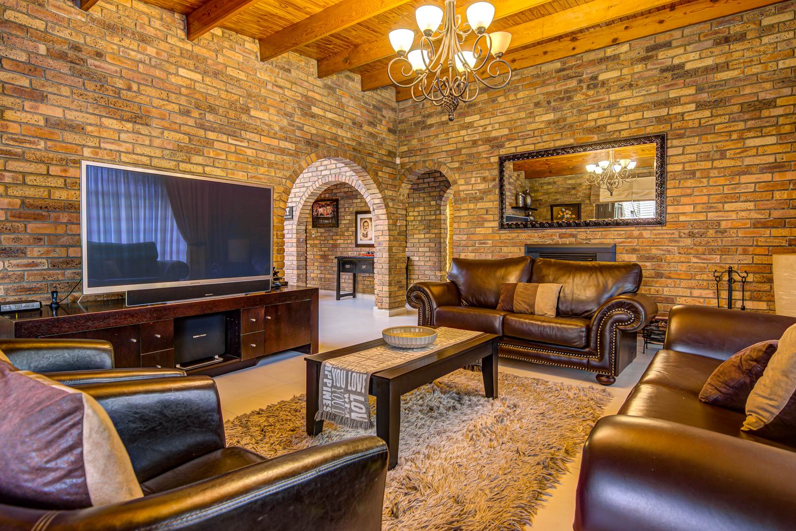 - Large tiled TV room with skylight
