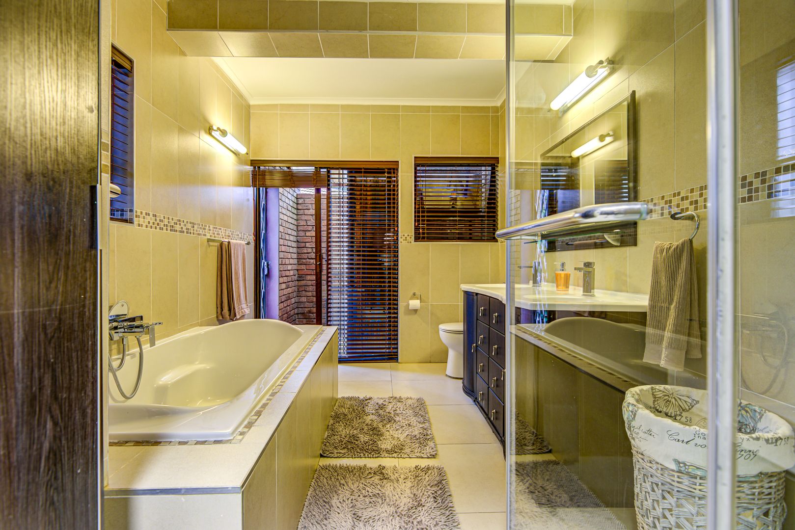 - Full en-suite bathroom with bath, shower, and his-and-her basins