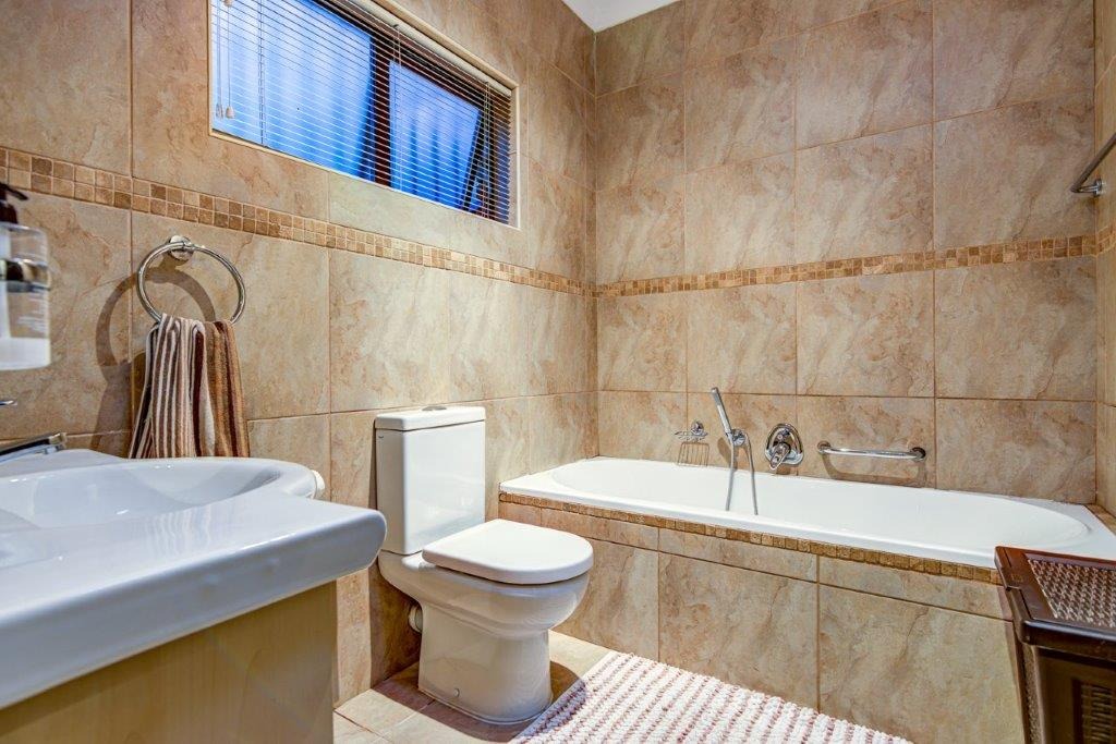 Additional family bathroom fully tiled with bath