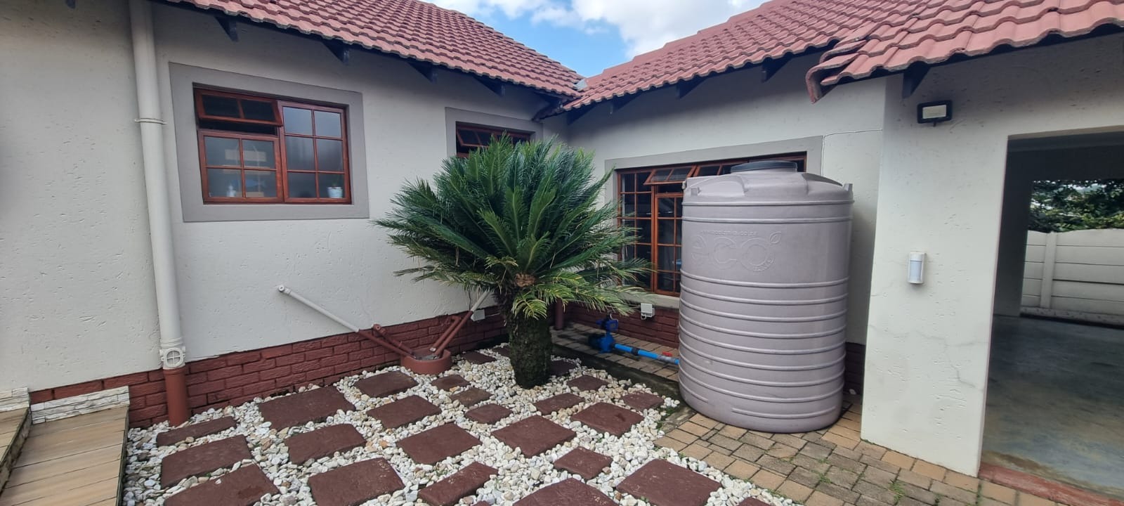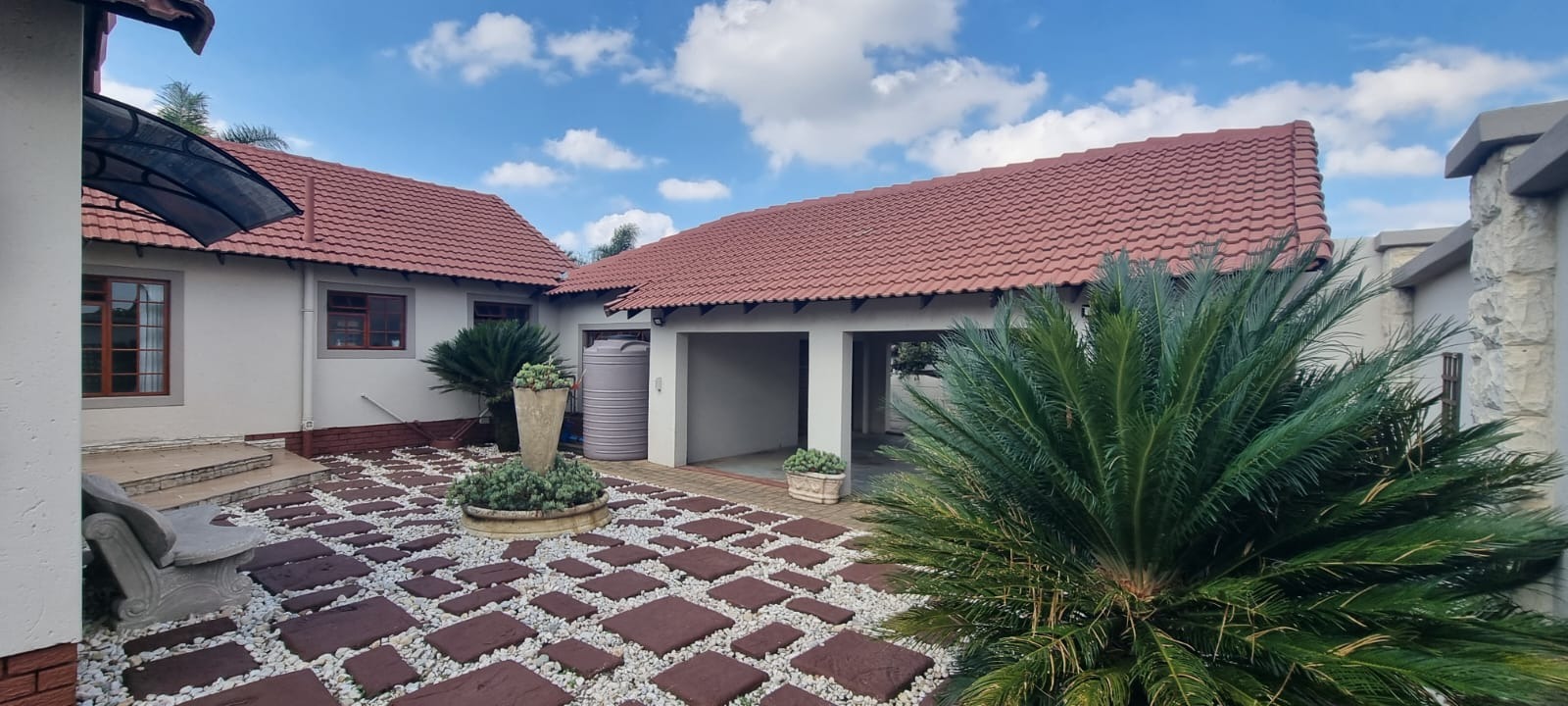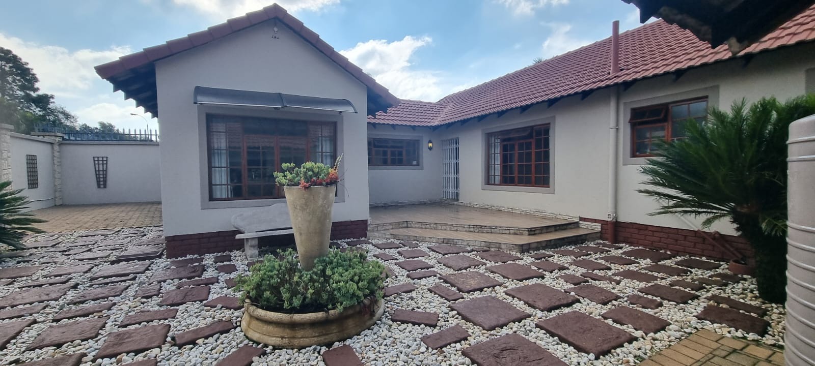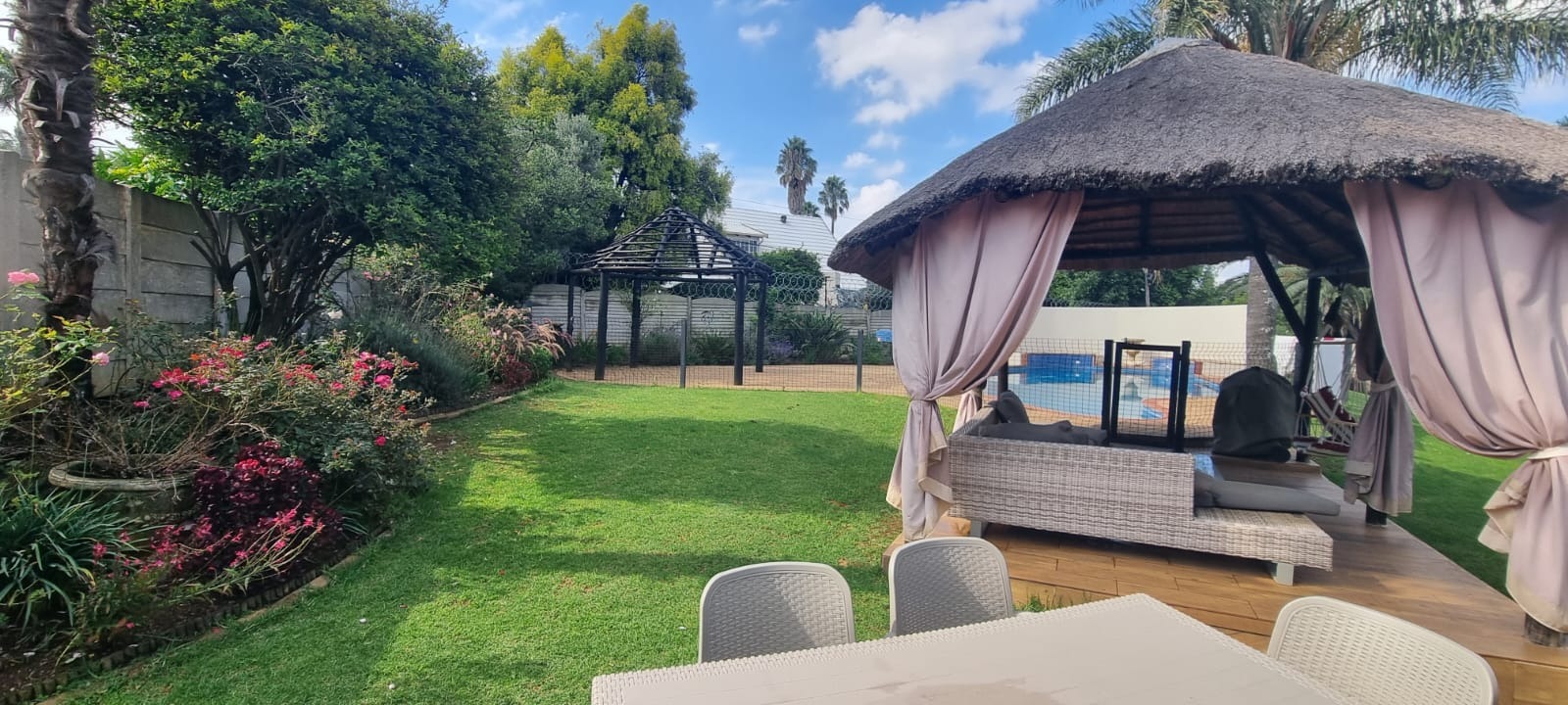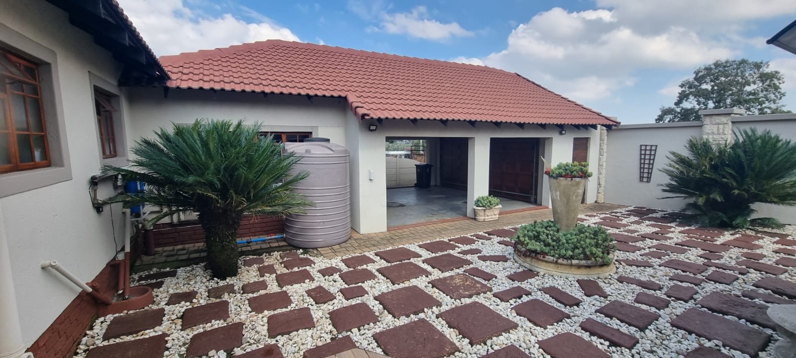 The exterior is designed for enjoyment. Step outside to discover a private swimming pool, perfect for cooling off. A charming lapa and a spacious patio create an excellent environment for outdoor dining or unwinding. The established garden provides a serene backdrop, while paving ensures practical access. Two garages offer secure parking and storage. Burglar bars provide added security, and pets are permitted, making it a truly family-friendly environment.