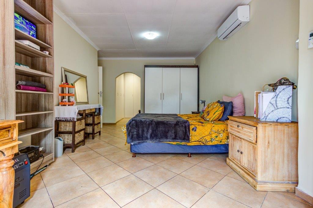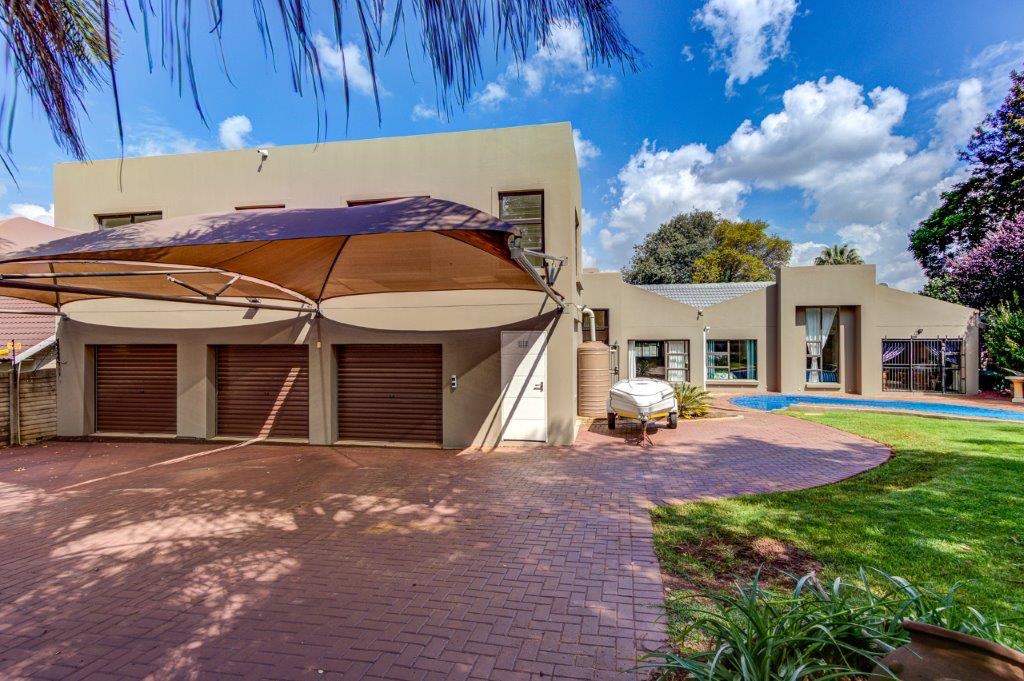 Externally, the residence boasts a charming patio and a lapa, ideal for outdoor gatherings and enjoying the South African climate. The well-maintained garden, complemented by paving and a spacious driveway, enhances the property's kerb appeal. Security is well-addressed with CCTV, burglar bars, and a security gate, ensuring peace of mind. Furthermore, the property includes three garages, providing secure parking and additional storage solutions. The entire property is totally walled, offering privacy and a secure perimeter.