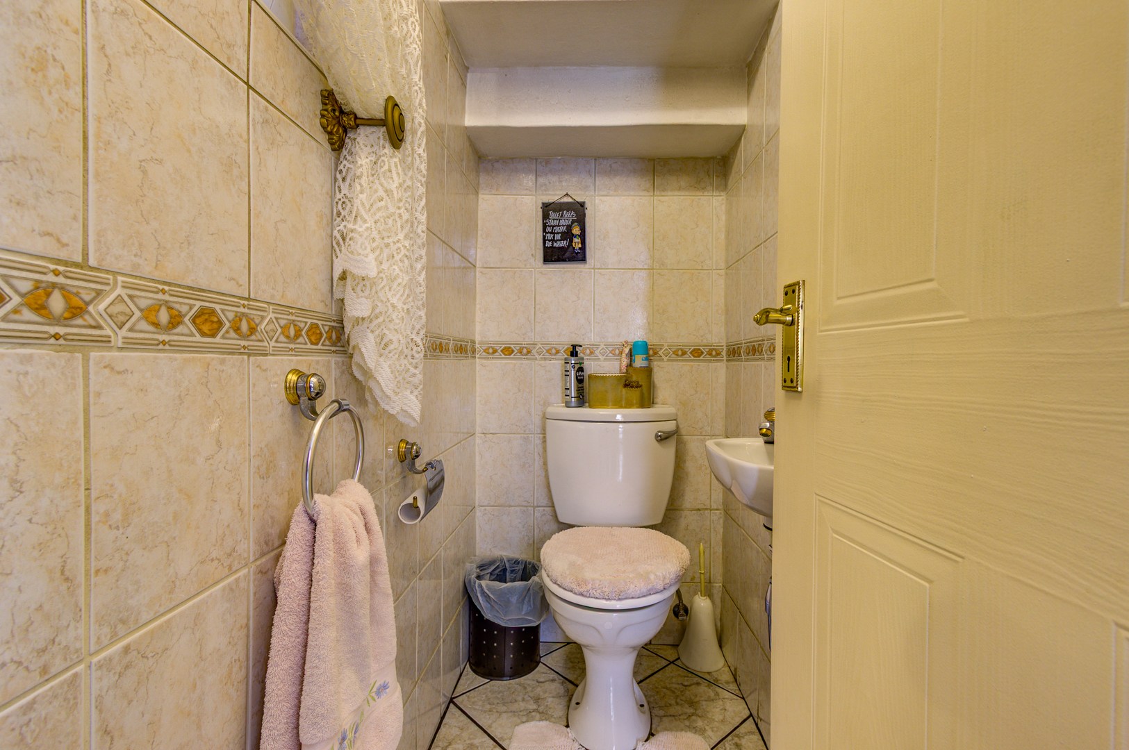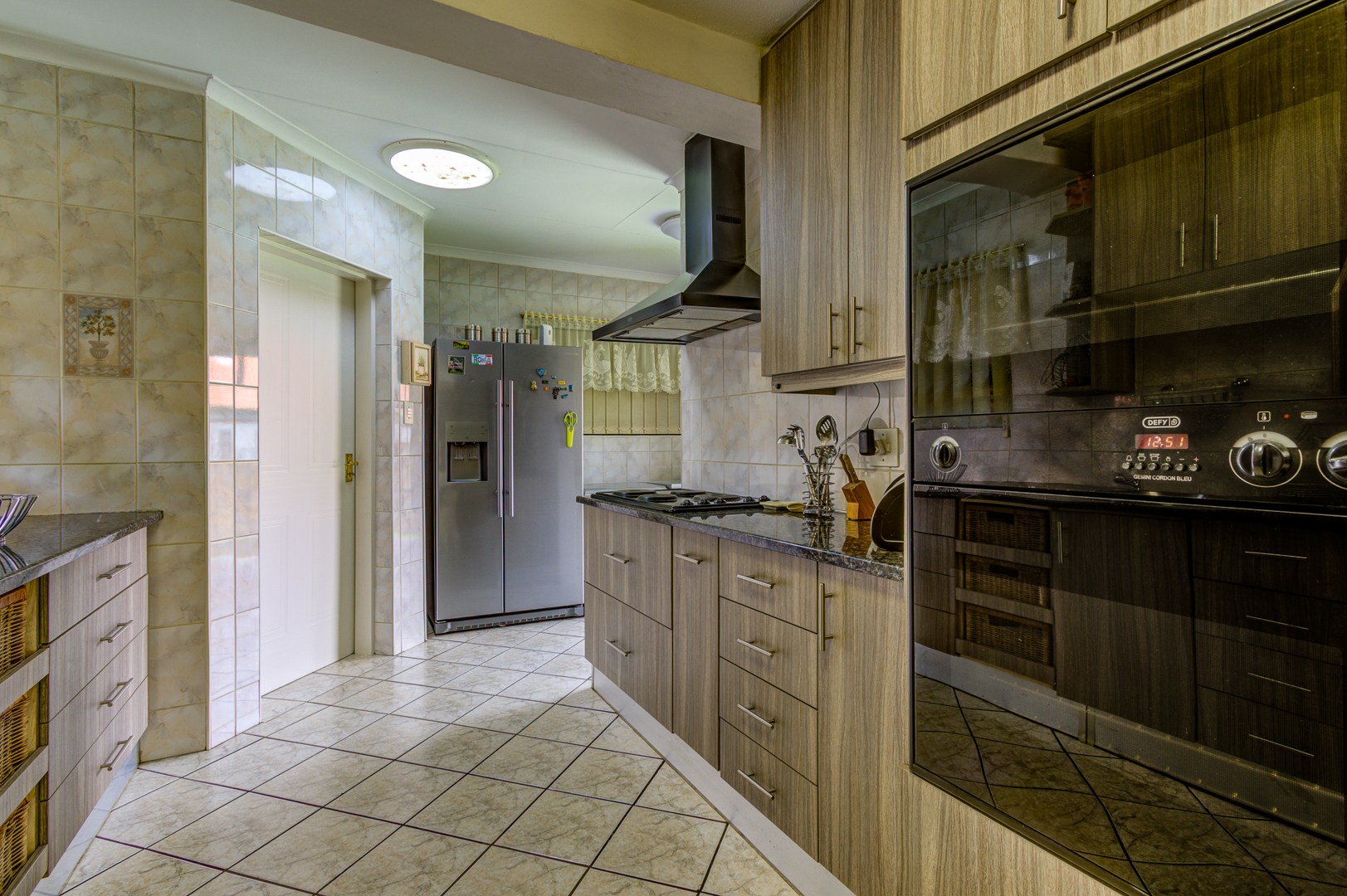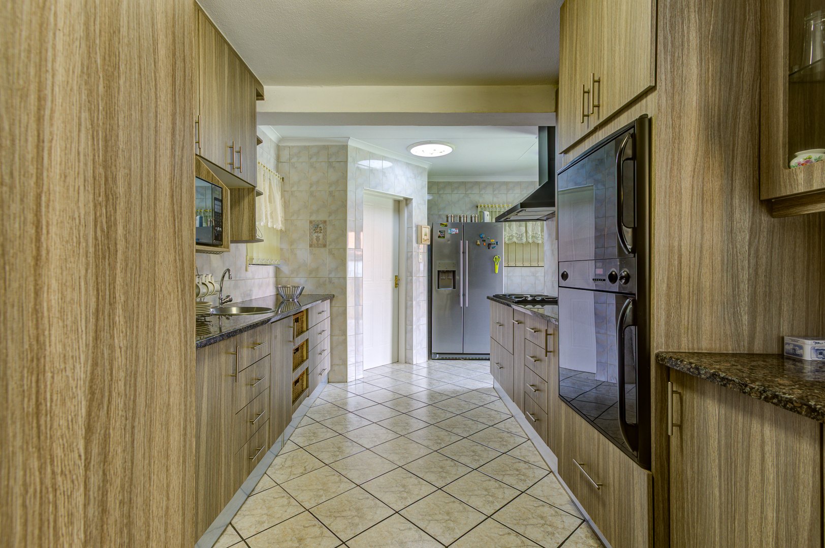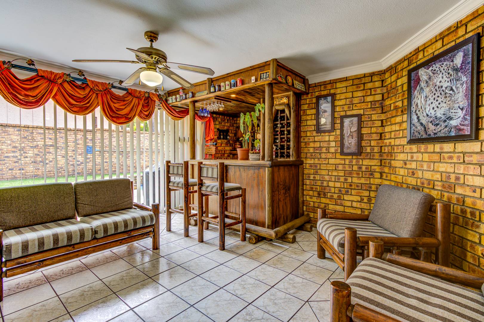 This double storey house consists of the following: as you enter this house, you are overwhelmed with space. Large tiled entrance leading to a carpeted lounge. A guest bathroom to serve your guests. A large tiled family room overlooking the open plan kitchen. Large modern kitchen with Granite tops, lots of built-in cupboards, breakfast counter and a large scullery to fit 3 appliances. Conveniently located in a large entertainment area with a built-in braai and bar counter with shelves. This leads to the sparkling blue pool and garden.