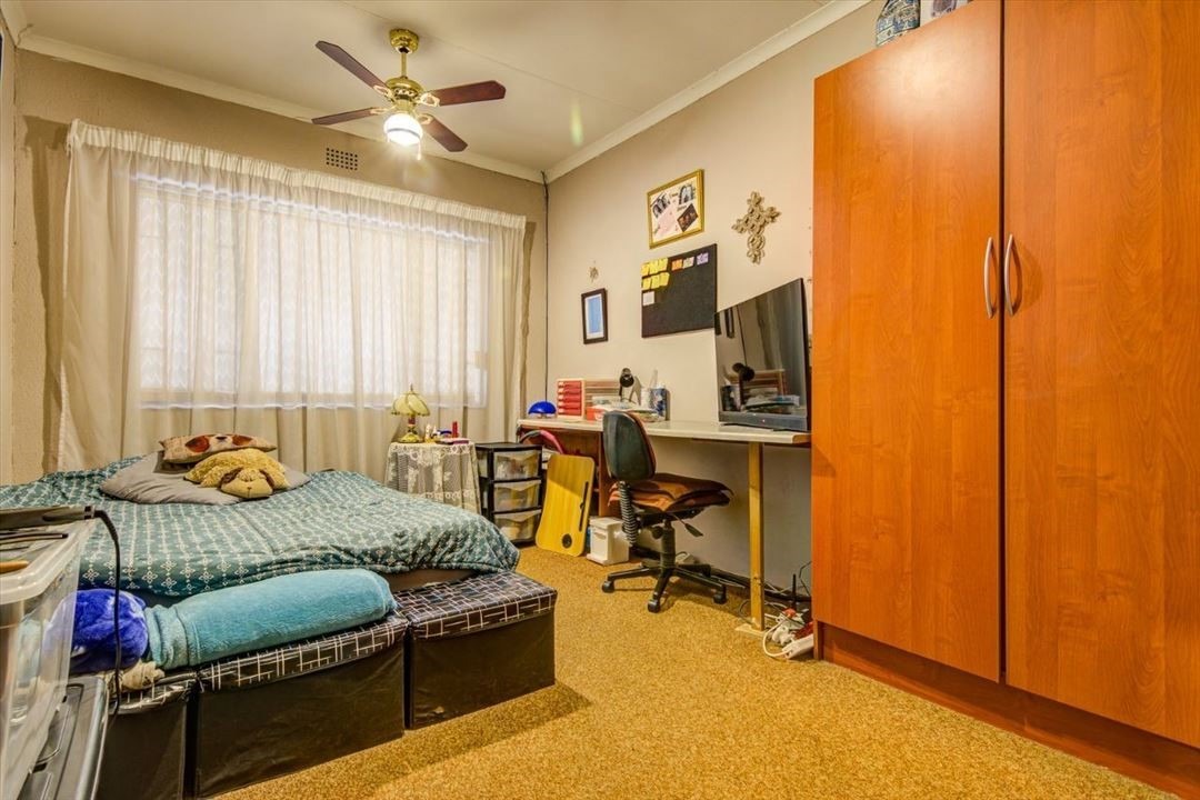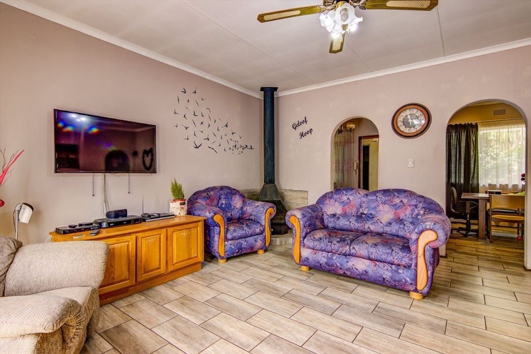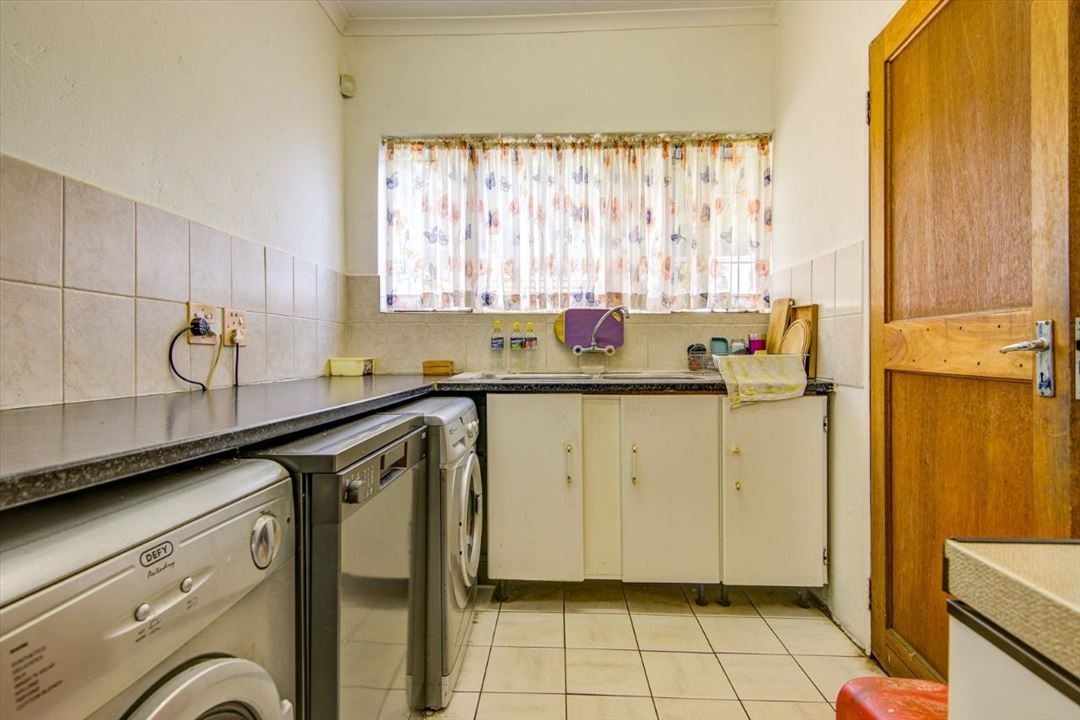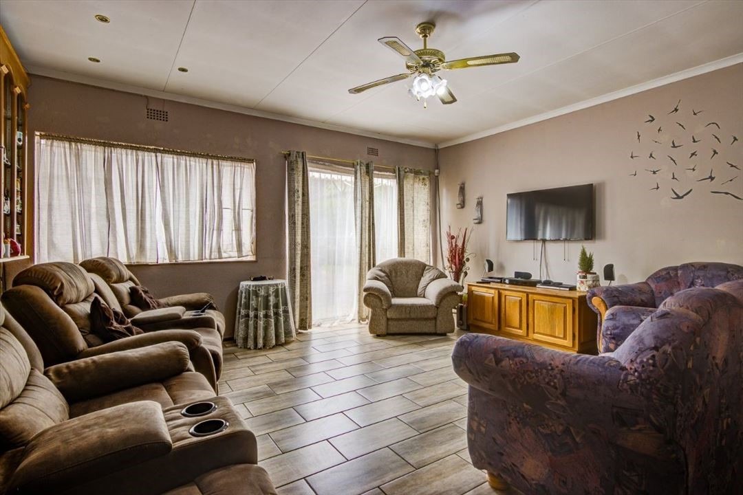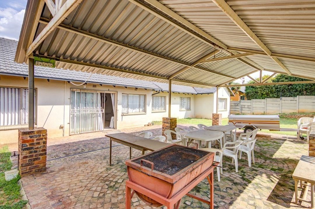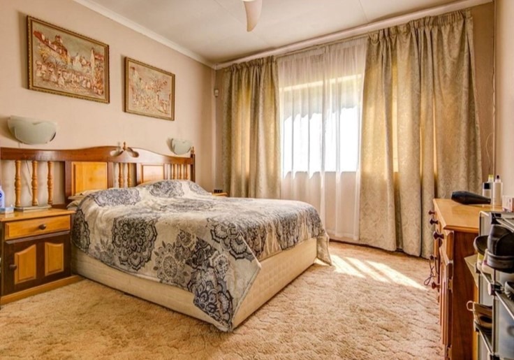 Outside is a potential flatlet with small bedroom, bathroom and small room that can be converted into a kitchenette. A BIG bonus is the 5 garages and 3 carports. Large covered area for entertainment. Neat and established garden. Alarm system, burglar bars, CCTV and electric fence. Close to schools and all amenities.