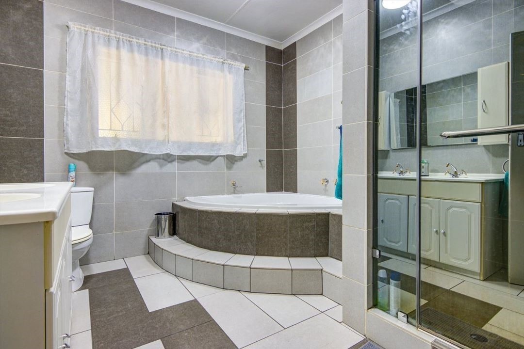 This spacious property offer a lot more that the standard house does. With 4 large carpeted bedrooms, all with built-in cupboards. 2 Bathrooms both fully tiled, one with shower, corner spa bath and double his-and-her basin. Main bedroom with it's own en-suite. A large carpeted lounge and a large tiled TV room with fire place and sliding door leading to the garden. Spacious kitchen with plenty of built-in cupboards, glass hob, extractor fan and eye level oven. Laundry and scullery is separate.