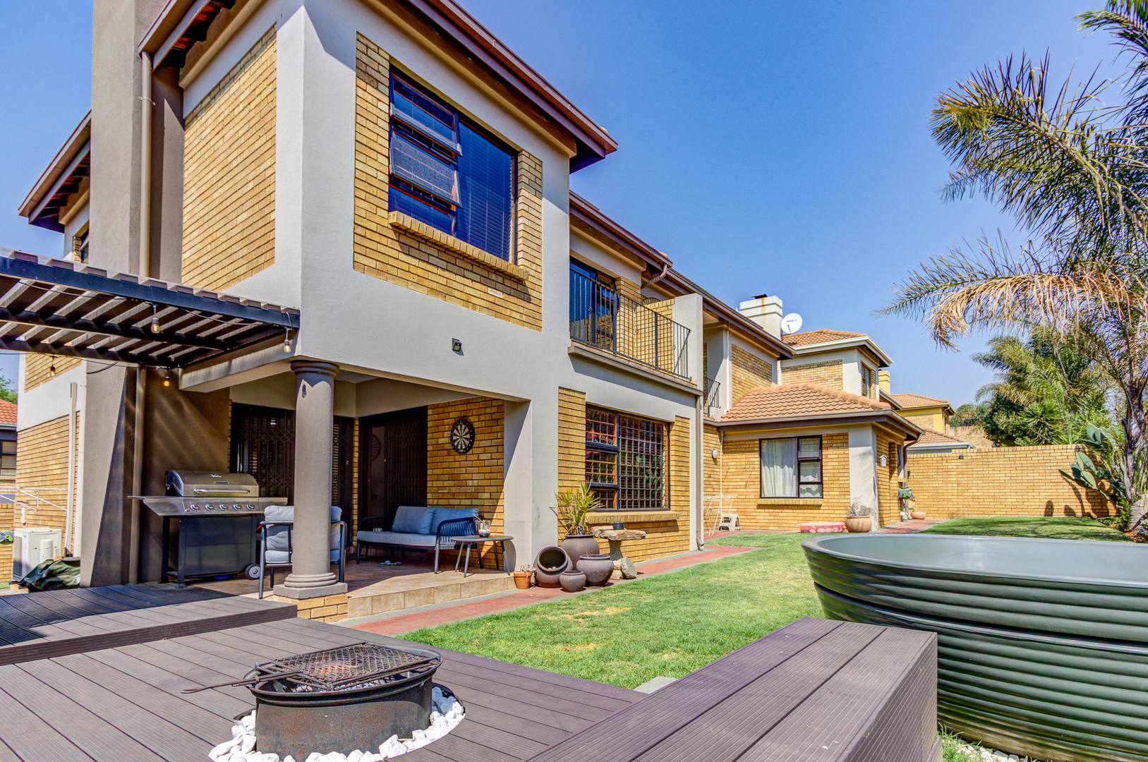 Prioritising safety, the property benefits from 24-hour estate security, an alarm system, electric fencing, burglar bars, and security gates. For enhanced sustainability, the home is equipped with a battery inverter and solar panels, alongside fibre connectivity. Outdoor living is a delight with a private garden, a built-in braai, and a patio and deck area perfect for entertaining. Pets are allowed, making this an ideal family haven.