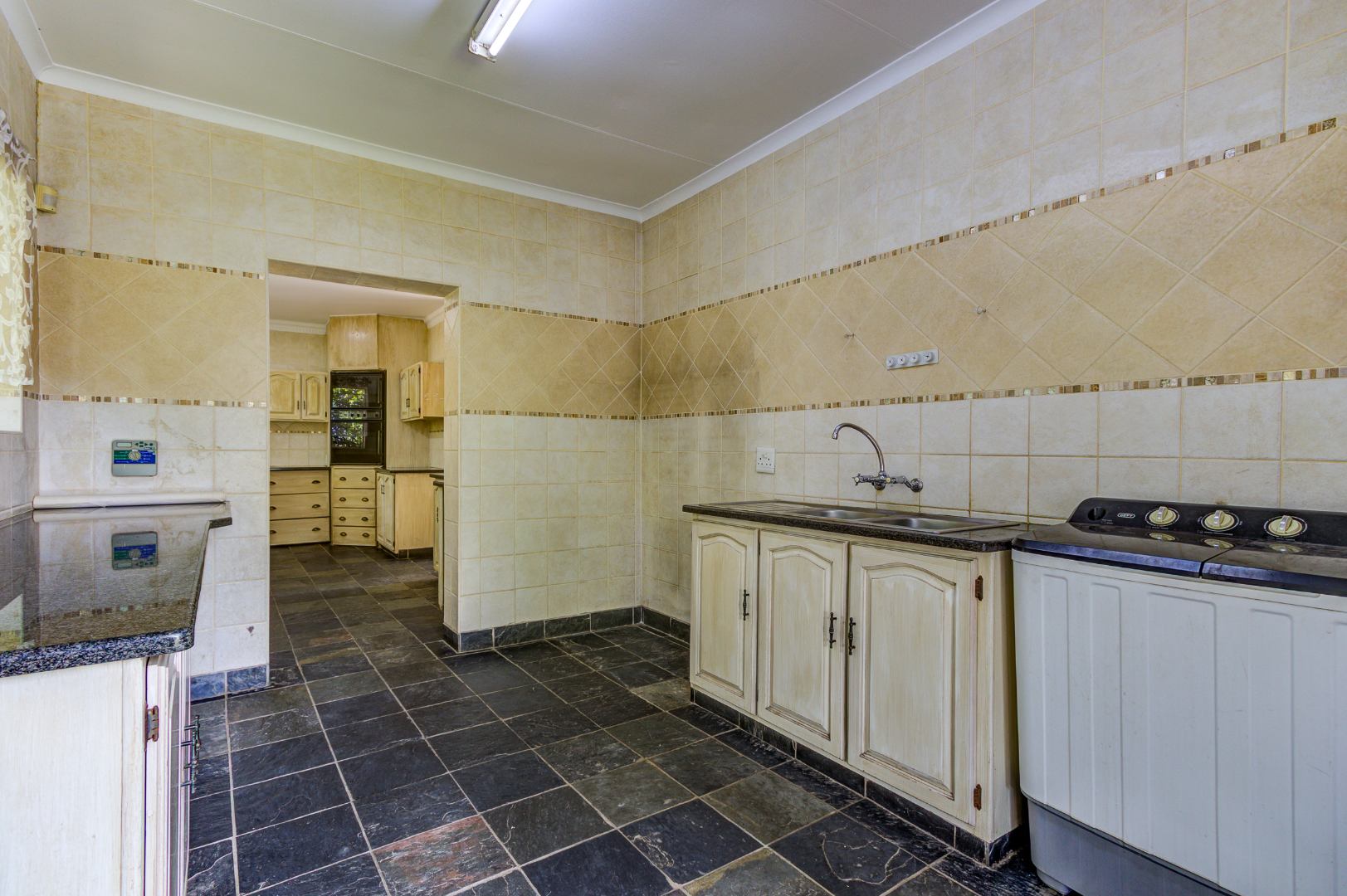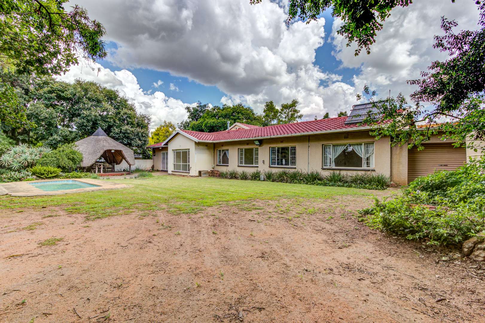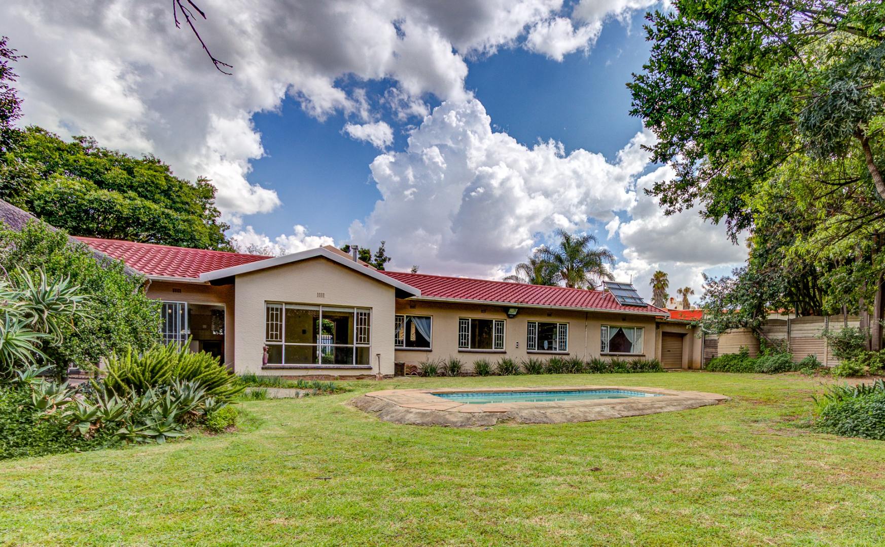 Set on a generous 1476 sqm erf, the outdoor area is designed for entertaining and family enjoyment, featuring a sparkling swimming pool, lapa, outside toilet, and a well-maintained garden with 2x 5 000 Litre rain water harvesting tenks. Pets are welcome