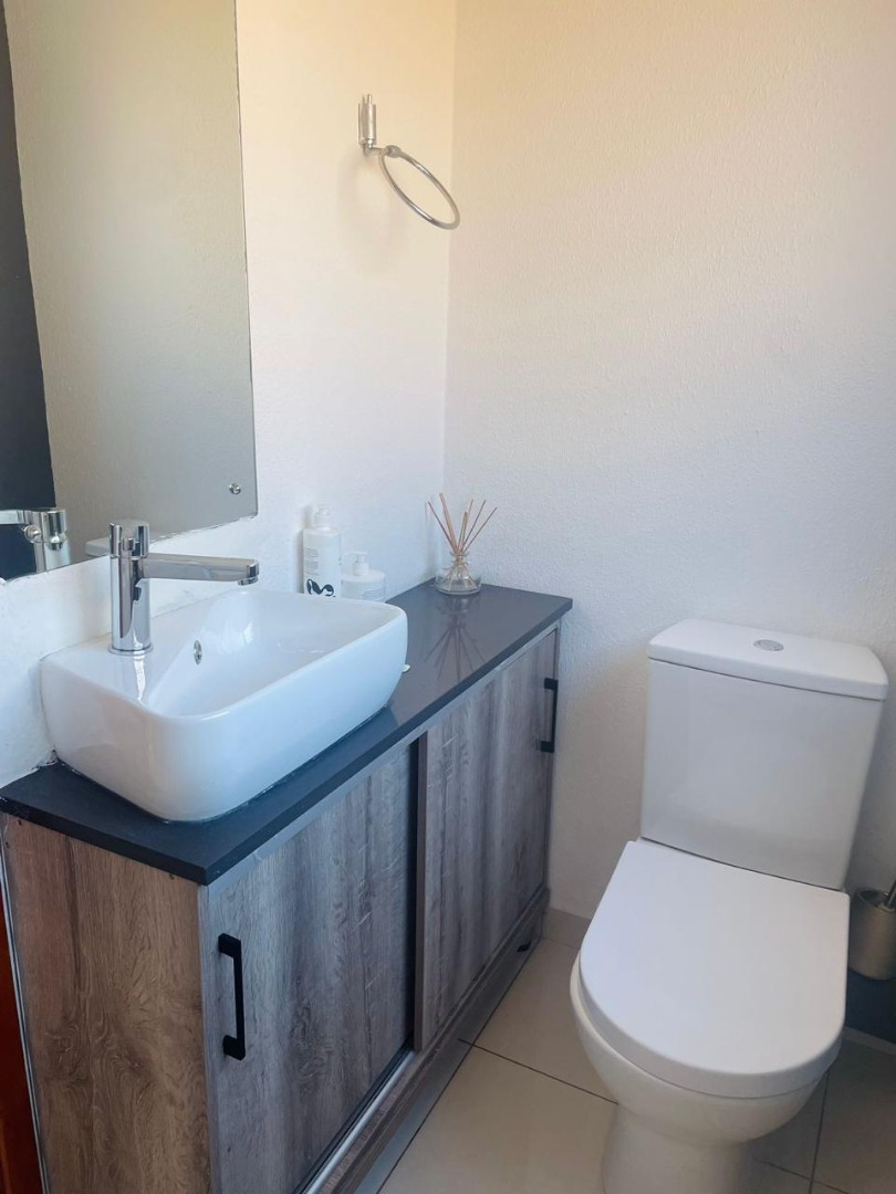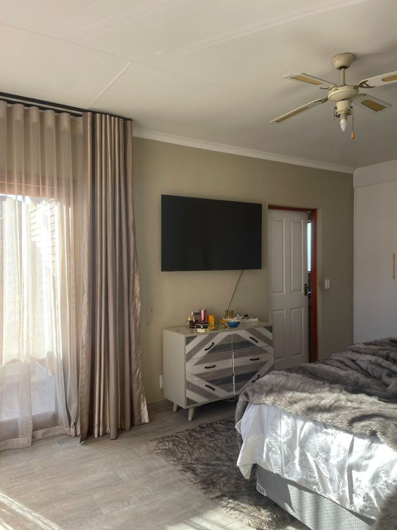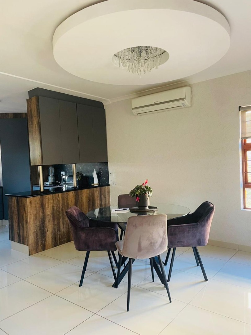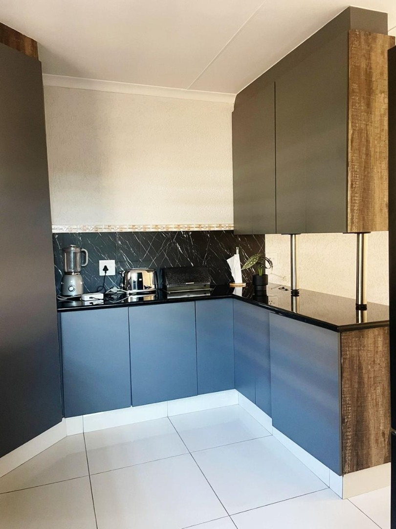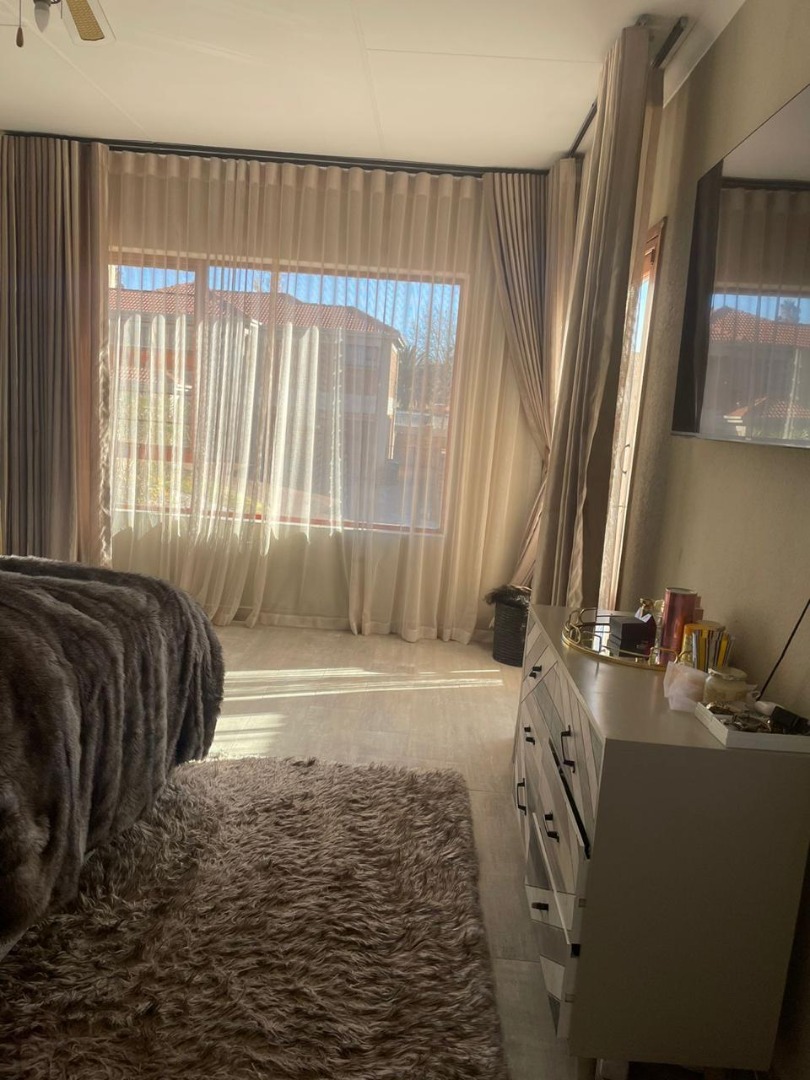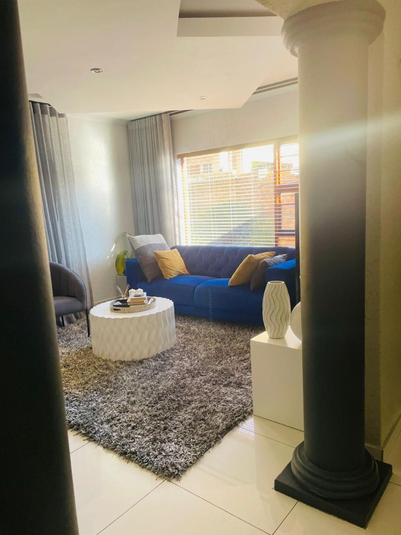 Discover this modern four-bedroom, three-bathroom residence located in the desirable Van Riebeeck Park, Kempton Park. The property immediately impresses with its striking kerb appeal, featuring a multi-story design, a prominent entrance with decorative columns, and a well-maintained exterior combining brick and painted plaster. Two double garages and a paved driveway offer ample parking and storage, while a balcony provides additional outdoor living space. Step inside to an interior designed for contemporary living. The heart of the home is a sleek, open-plan kitchen boasting dark grey and wood-textured cabinetry, black countertops, and a stylish marble-effect backsplash. Integrated appliances, including a gas hob and oven, complement the modern aesthetic. An elegant breakfast bar and a dining area with a glass table and velvet chairs create an inviting space for meals and entertaining. The bright living area features high ceilings, large windows, and a combination of tiled and carpeted flooring, ensuring comfort and style. Accommodation includes four spacious bedrooms and three bathrooms, with one en-suite, providing ample comfort for the entire family. Outdoors, a covered patio extends to a private, well-maintained grassy backyard with a paved pathway, perfect for relaxation or small gatherings. The property benefits from established landscaping and visible security features such as burglar bars and electric fencing, enhancing peace of mind. With an erf size of 2392 sqm, this home offers a blend of modern design and practical living. Key Features: * Modern multi-story residence * Four bedrooms, three bathrooms (one en-suite) * Sleek, open-plan kitchen with integrated appliances * Two double garages and paved driveway * Covered outdoor patio and private backyard * Balcony for additional outdoor enjoyment * Visible security features including electric fencing * Contemporary finishes throughout