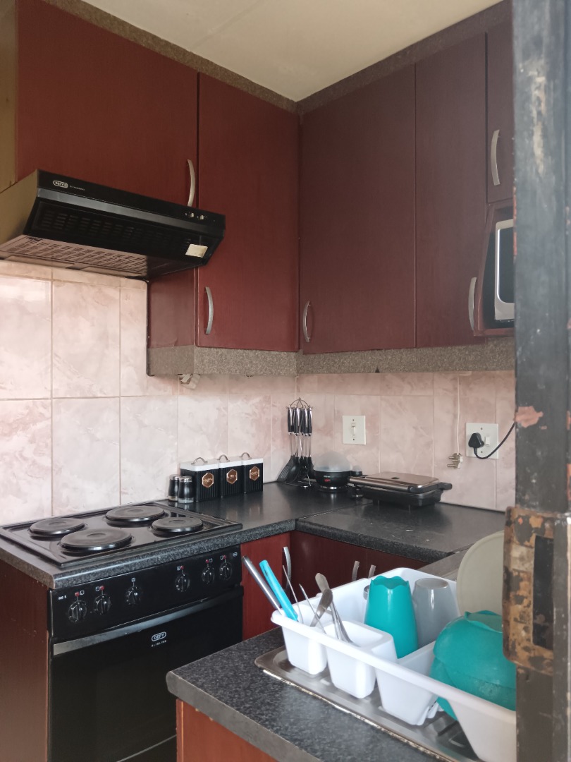 Discover this inviting 2-bedroom, 1-bathroom home located in Kaalfontein, Midrand. The property features a compact, single-story design with an earth-toned exterior and a paved entrance, offering practical kerb appeal. Inside, the living areas boast tiled flooring and benefit from ample natural light, creating a comfortable environment. The functional kitchen provides essential amenities including an electric stove, extractor fan, and sufficient cabinet storage. Both bedrooms are equipped with built-in wardrobes for convenience. Security is enhanced with burglar bars on windows. Kaalfontein offers a suburban lifestyle within the vibrant Midrand area, providing accessibility to local amenities.