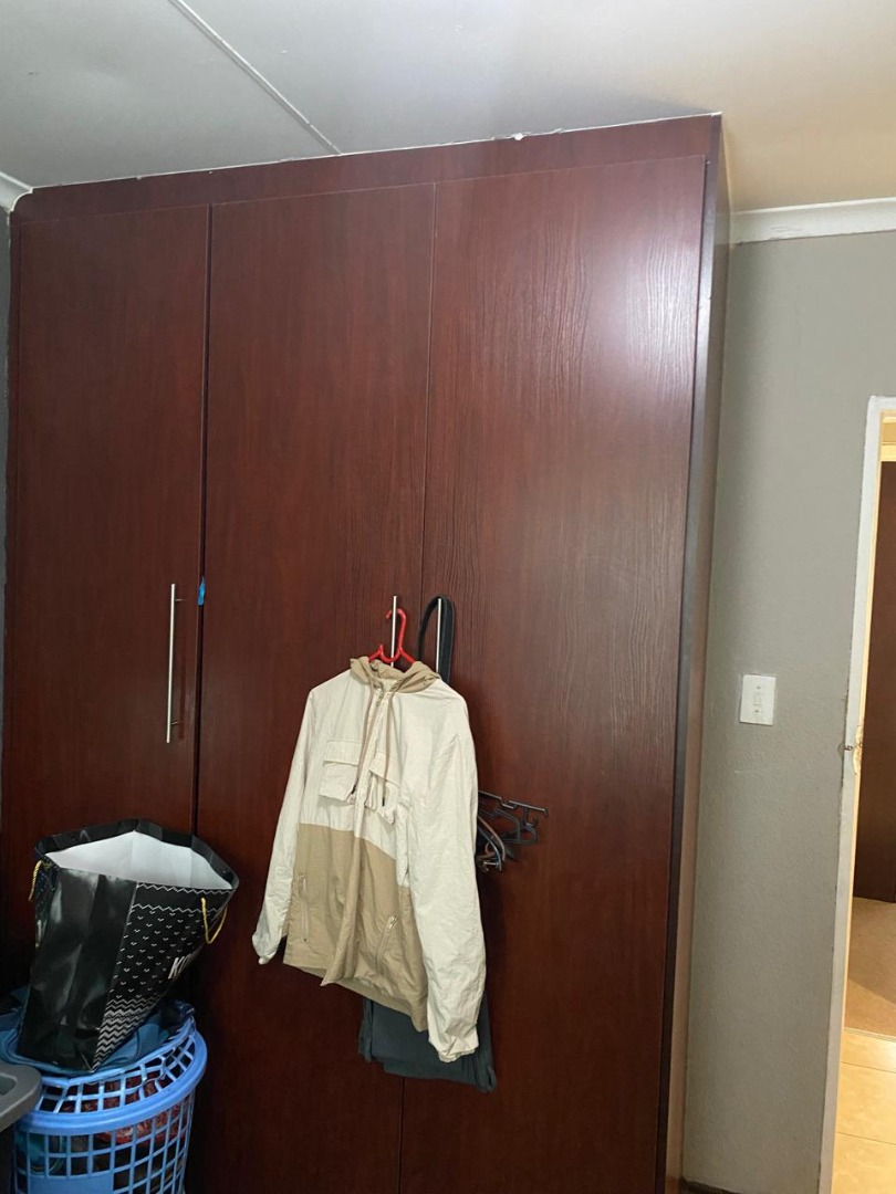 Discover this inviting residential property located in the established suburb of Klipfontein View, Midrand. The home presents a welcoming exterior with a neatly paved driveway, offering convenient access and ample parking. A dedicated carport provides covered parking for two vehicles, complementing the property's total of four available parking spaces. Inside, the residence features two distinct kitchen areas designed for practicality. One kitchen boasts a functional corner layout with built-in appliances, ample cabinet storage, and natural light from a window. The second kitchen offers extensive dark-toned cabinetry, contrasting white countertops, and a built-in microwave, providing additional culinary space and storage solutions. The cozy living area is a focal point, featuring classic red leather Chesterfield sofas, an ornate oval coffee table, and an entertainment unit, creating a comfortable space for relaxation. This home comprises three bedrooms and two bathrooms. One bedroom stands out with a stylish geometric accent wall and a dark wood sleigh bed, flanked by matching nightstands. Another bedroom offers a dedicated desk/workspace area, ideal for study or home office needs. The bathrooms are functional, with one including a bathtub and a window for natural light and ventilation, while a separate, compact toilet room enhances convenience. Klipfontein View, situated in the bustling city of Midrand, South Africa, offers residents a suburban lifestyle with access to essential amenities and connectivity. This property provides a solid foundation for comfortable living in a well-located area. Key Features: * 3 Bedrooms, 2 Bathrooms * Paved Driveway & Carport * Two Functional Kitchen Areas * Cozy Living Room * Built-in Wardrobe Storage * Dedicated Workspace in Bedroom * 4 Parking Spaces * Erf Size: 700 sqm