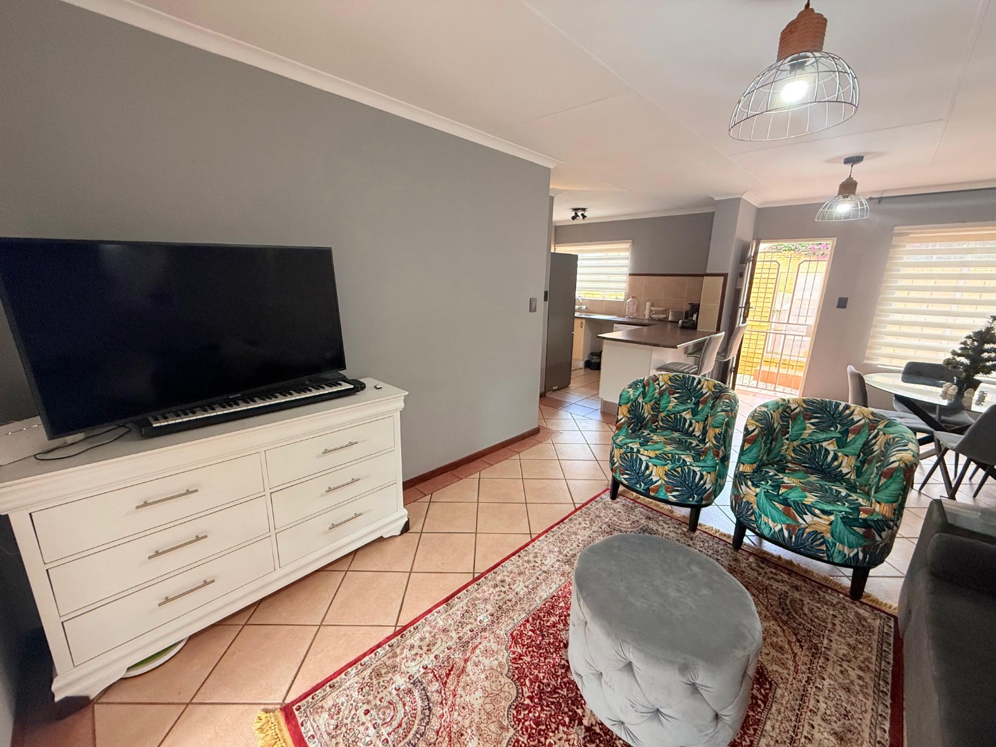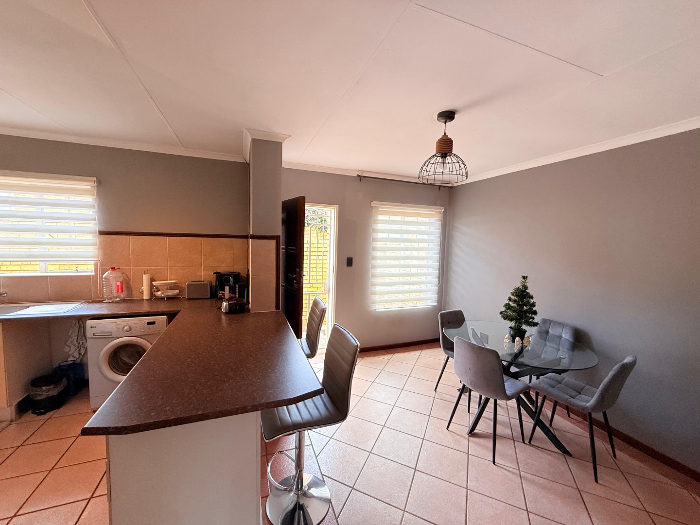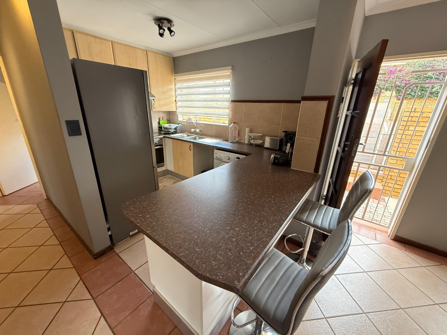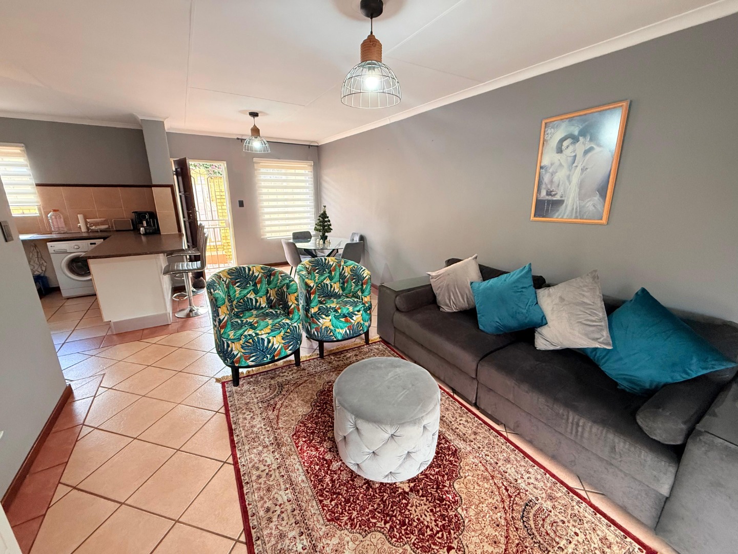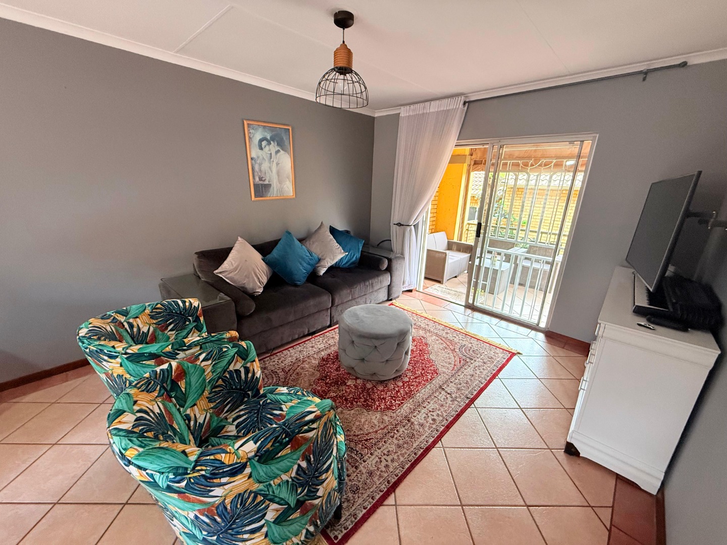 Discover this extremely neat 2-bedroom, 2-bathroom townhome in the sought-after Mooikloof Ridge Estate. The home offers an inviting open-plan layout that includes a modern kitchen with a breakfast counter, flowing seamlessly into the dining area and lounge. The living space opens onto a patio fitted with sails, allowing you to close it up during rainy or colder days, making it perfect for year-round use.