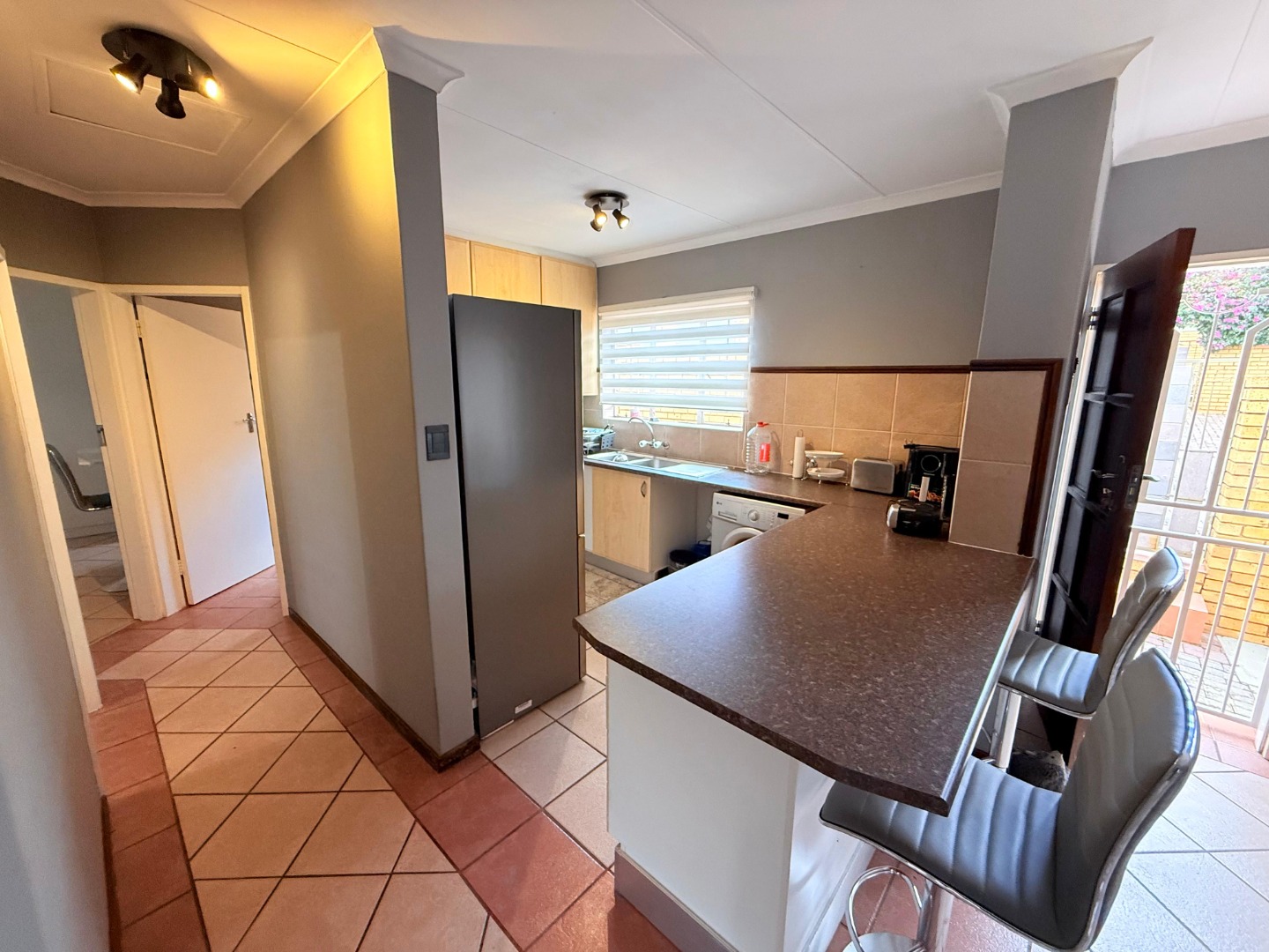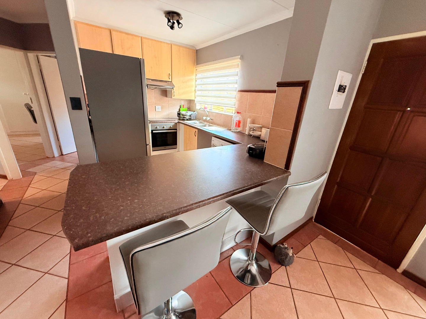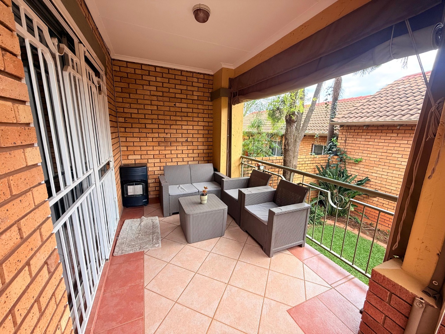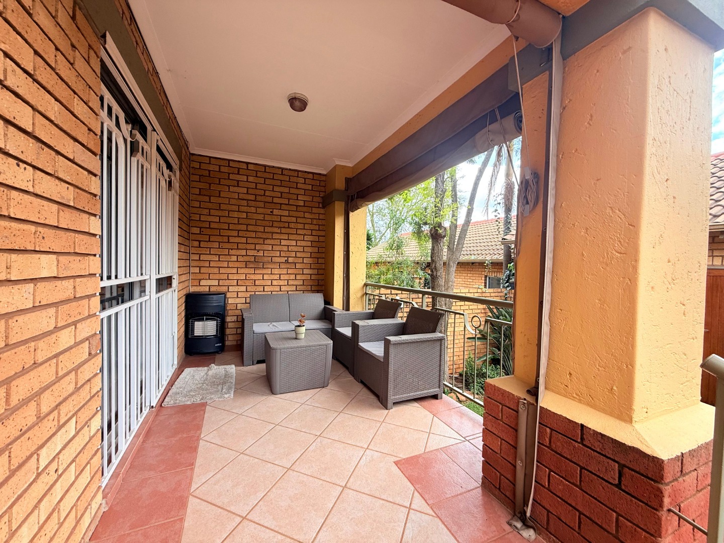 Discover this extremely neat 2-bedroom, 2-bathroom townhome in the sought-after Mooikloof Ridge Estate. The home offers an inviting open-plan layout that includes a modern kitchen with a breakfast counter, flowing seamlessly into the dining area and lounge. The living space opens onto a patio fitted with sails, allowing you to close it up during rainy or colder days, making it perfect for year-round use.