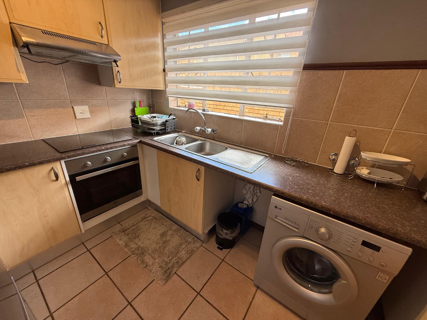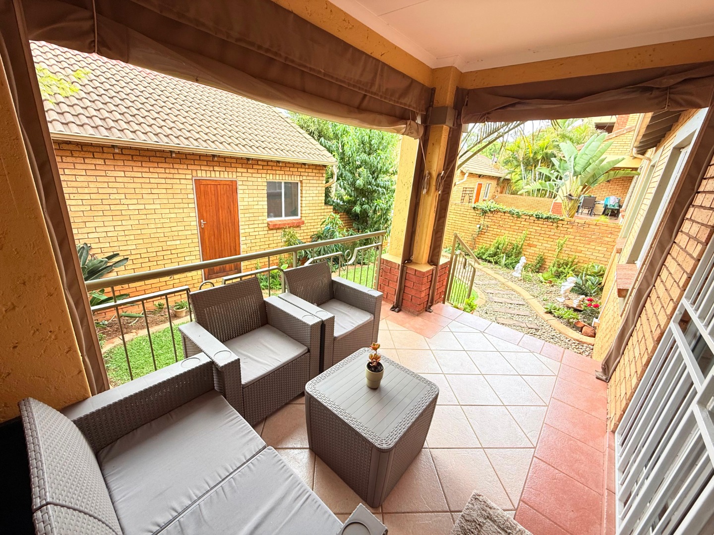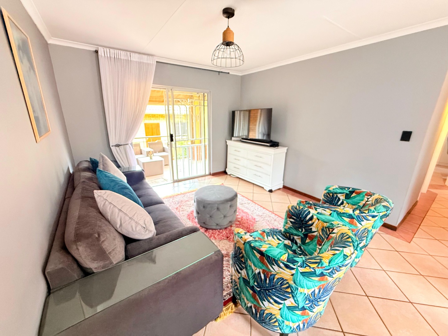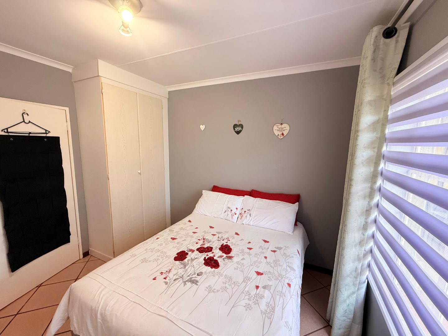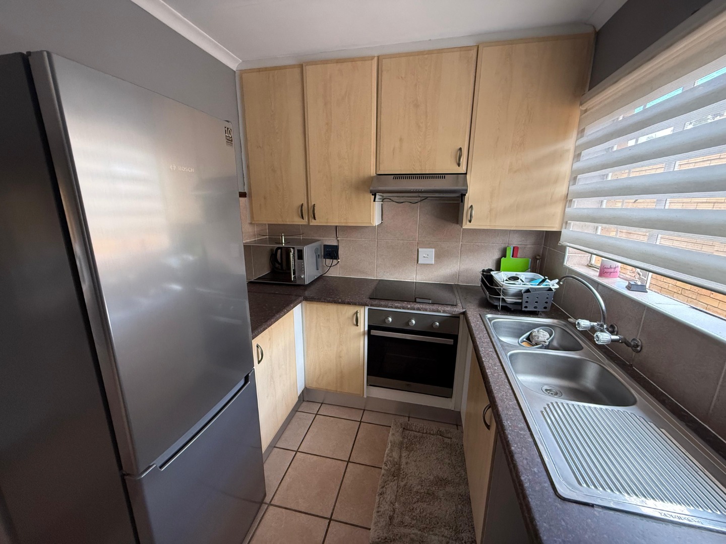 Discover this extremely neat 2-bedroom, 2-bathroom townhome in the sought-after Mooikloof Ridge Estate. The home offers an inviting open-plan layout that includes a modern kitchen with a breakfast counter, flowing seamlessly into the dining area and lounge. The living space opens onto a patio fitted with sails, allowing you to close it up during rainy or colder days, making it perfect for year-round use.