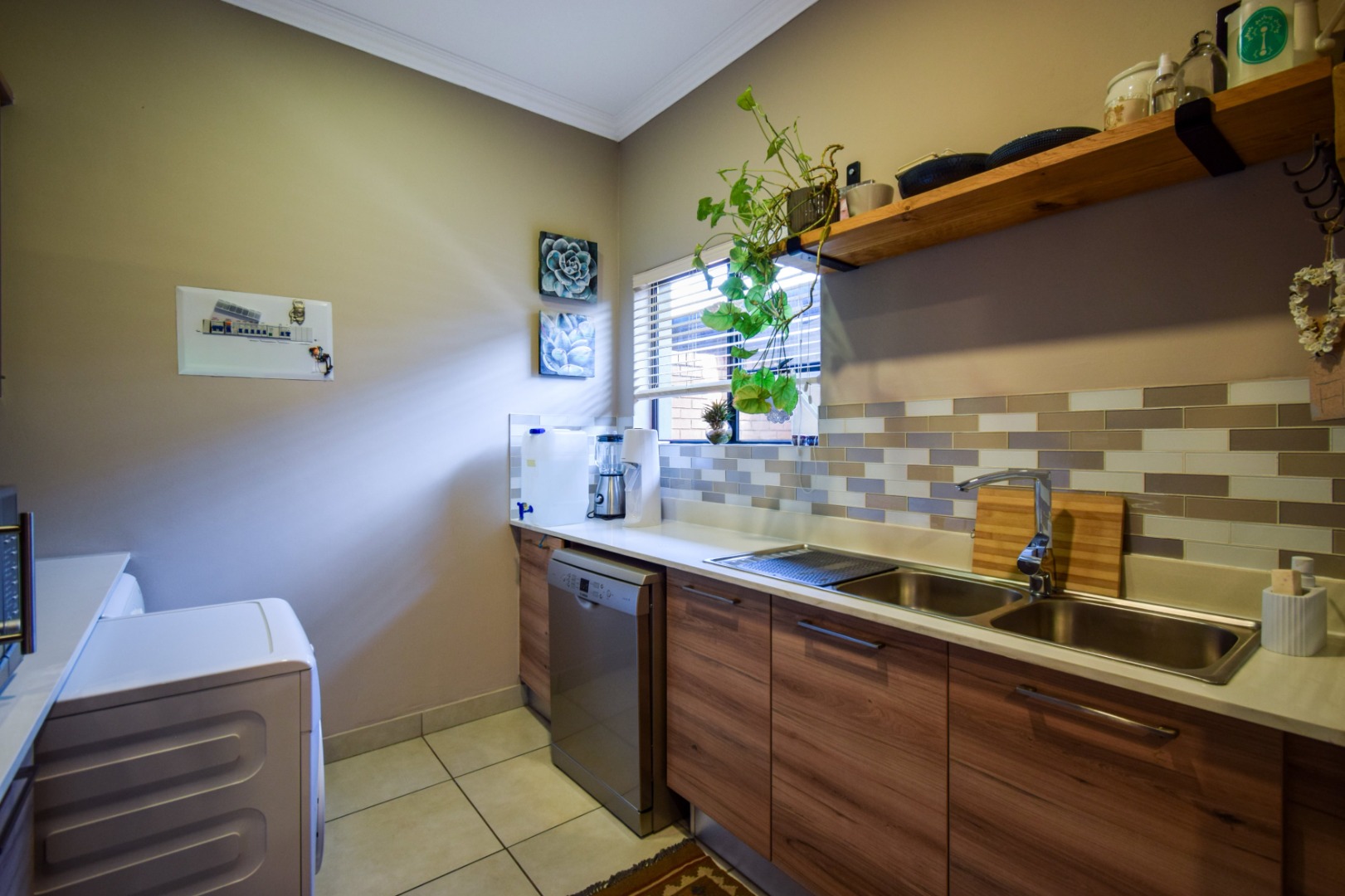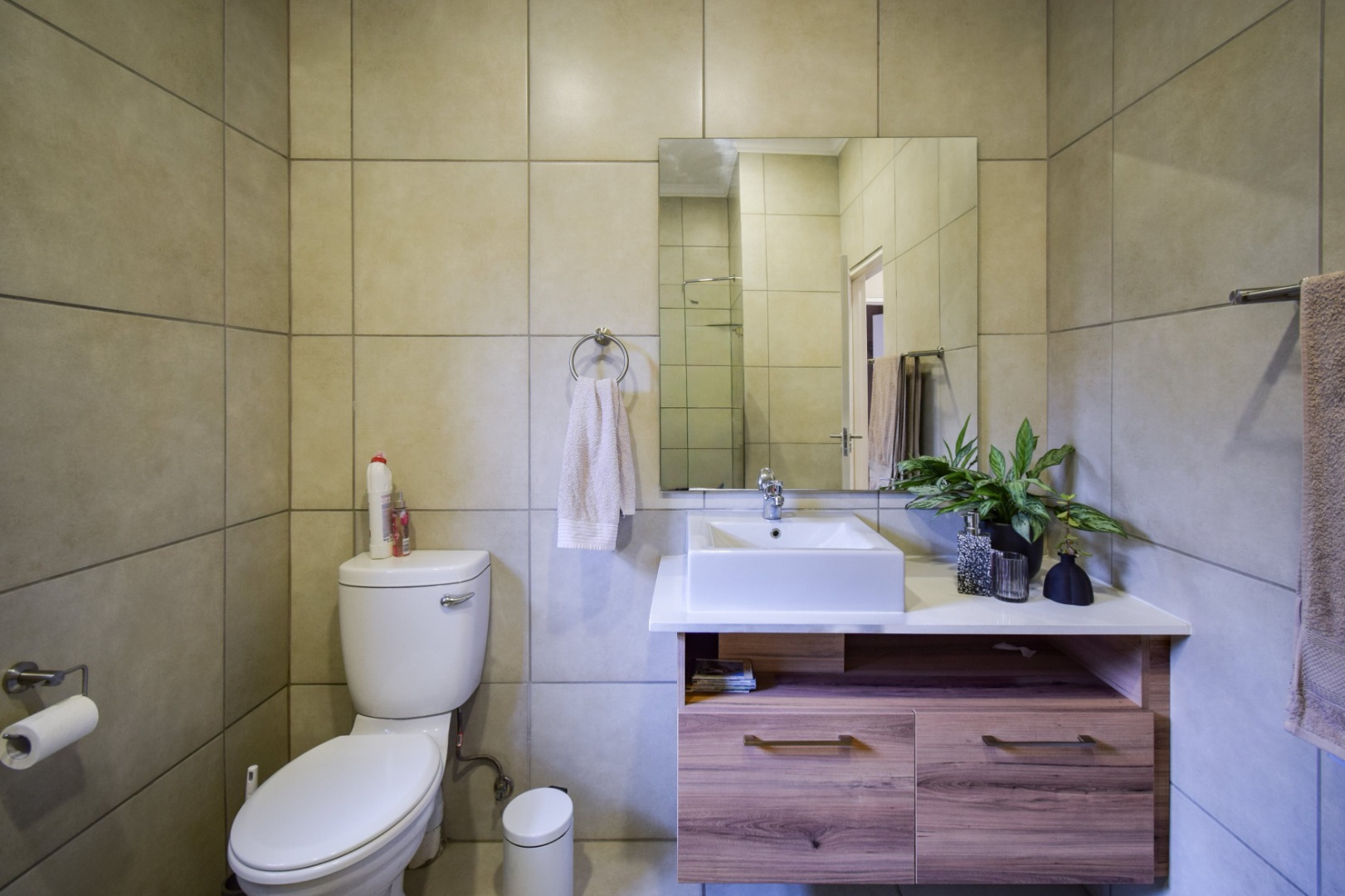 Enjoy outdoor living on your covered patio with a built-in braai, overlooking a neat, low-maintenance garden with sprinklers. There’s even an outside bathroom with toilet and basin – an added bonus for convenience.