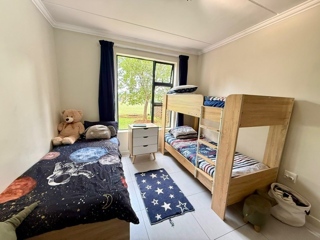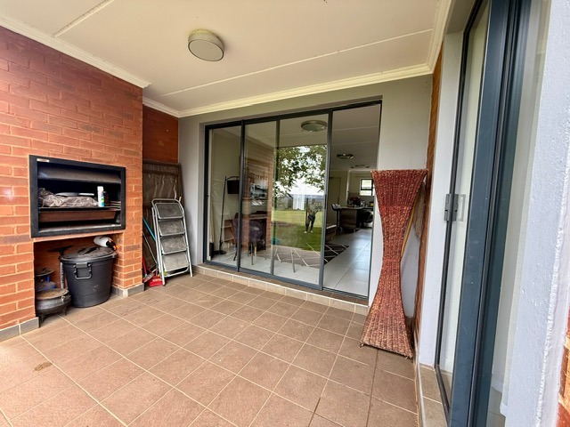 onto a covered patio with a built-in braai, overlooking the estate’s sporting