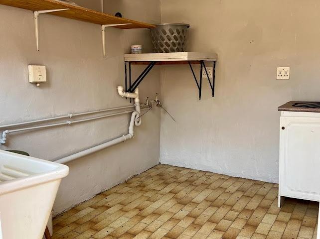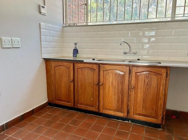 Living areas include 2 lounges – one with a cozy fireplace opening out to the garden – and a generous dining area. The kitchen is fitted with granite countertops, a gas hob, double eye-level oven, and a scullery with room for all appliances. A separate laundry and staff quarters add convenience to everyday living.